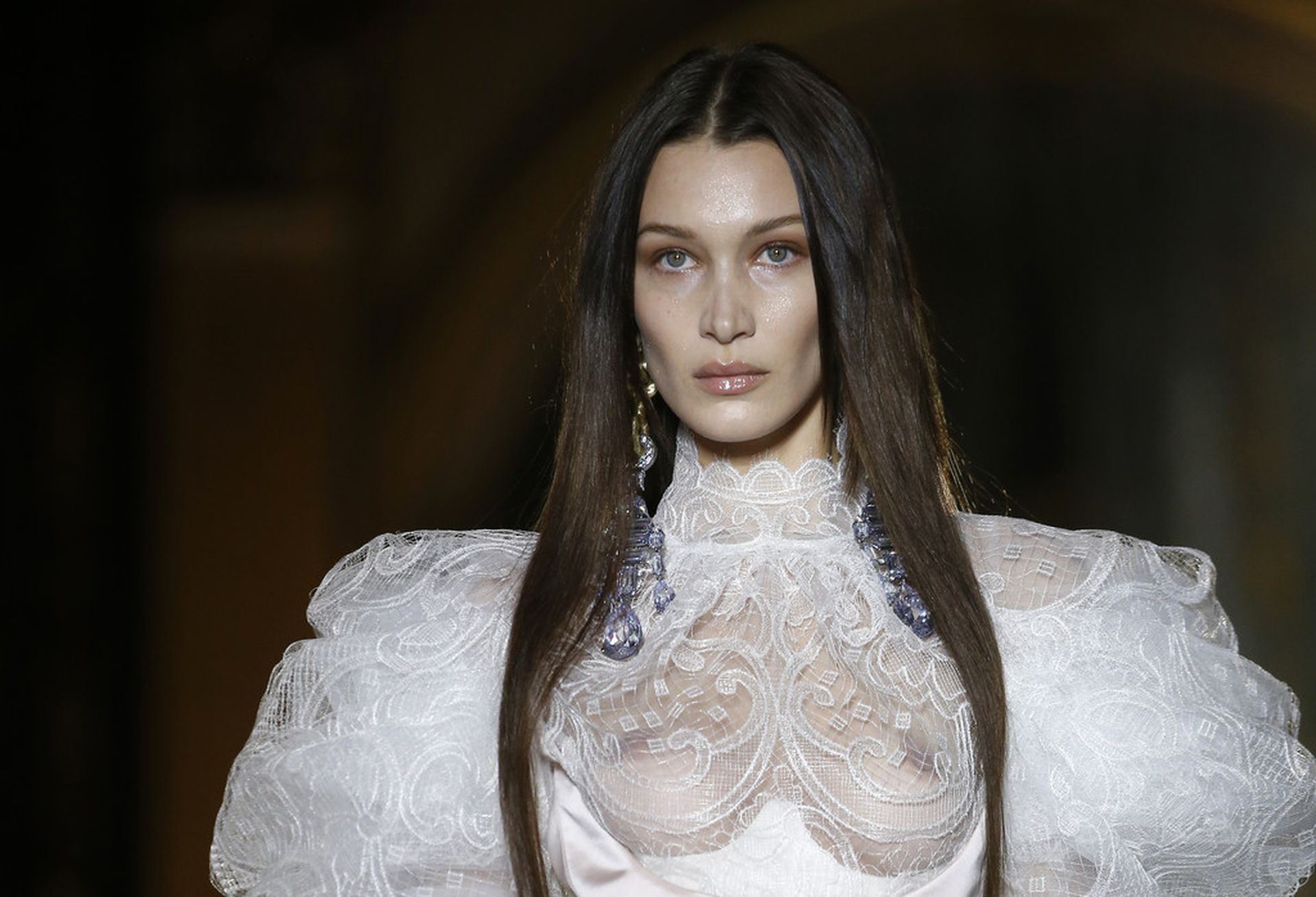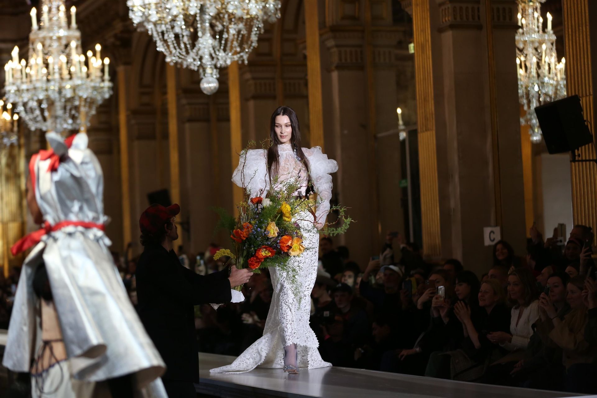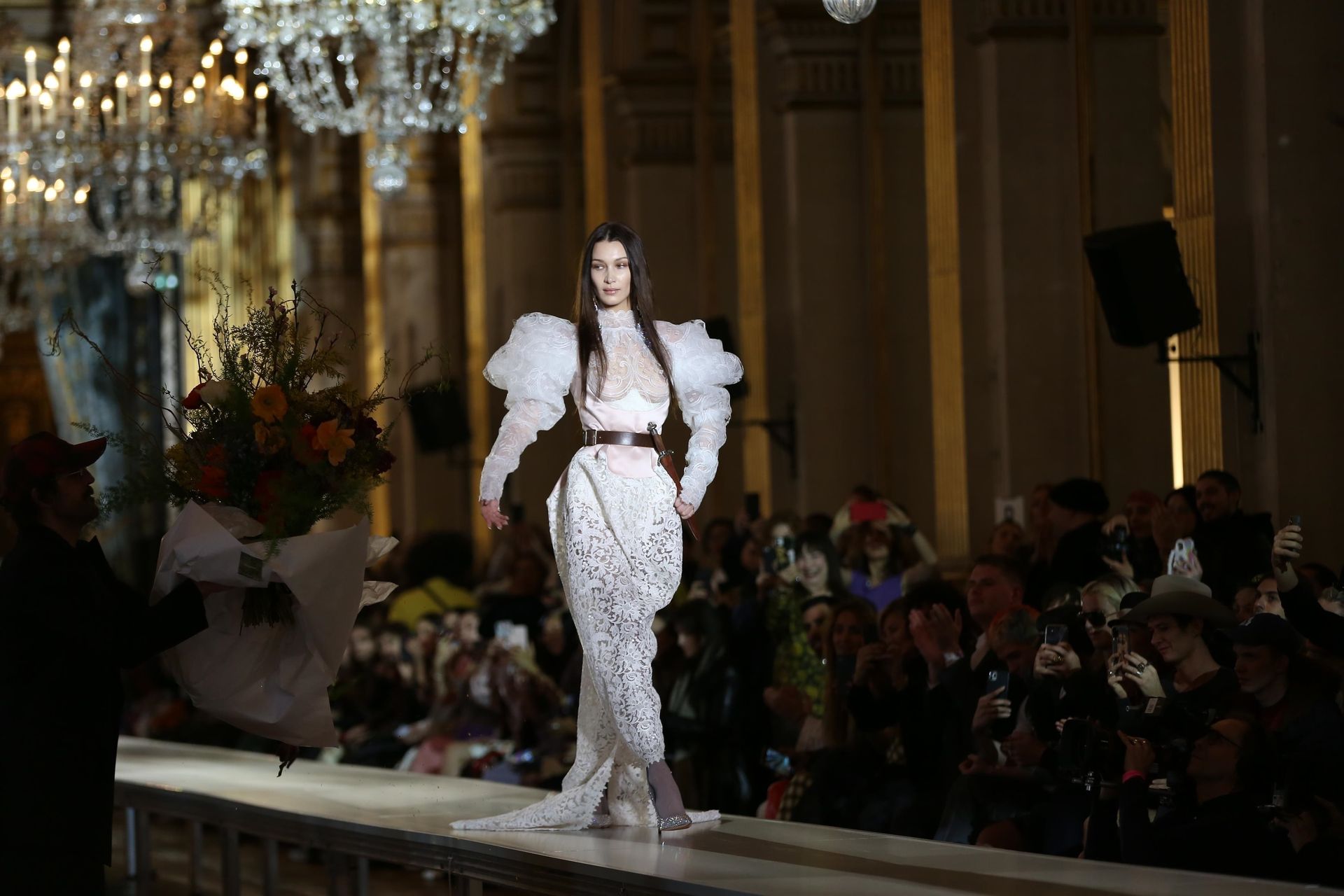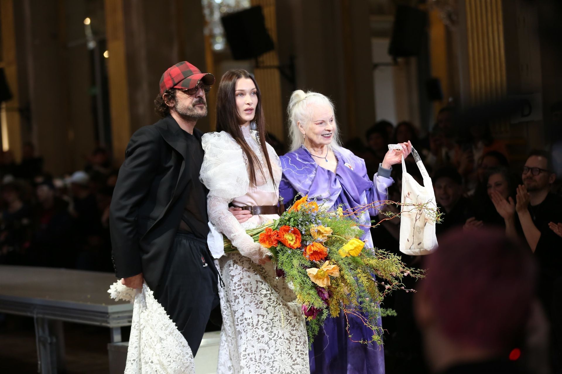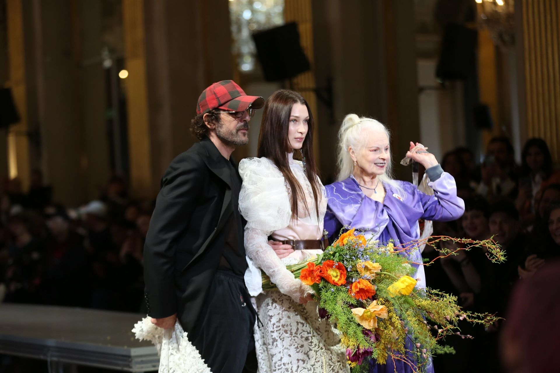 La modella Bella Hadid è stata fotografata senza reggiseno mentre sfilava alla sfilata di moda di Vivienne Westwood durante la Paris Fashion Week, 29/02/2020. Bella ti taglierà i gioielli se guardi i suoi seni!