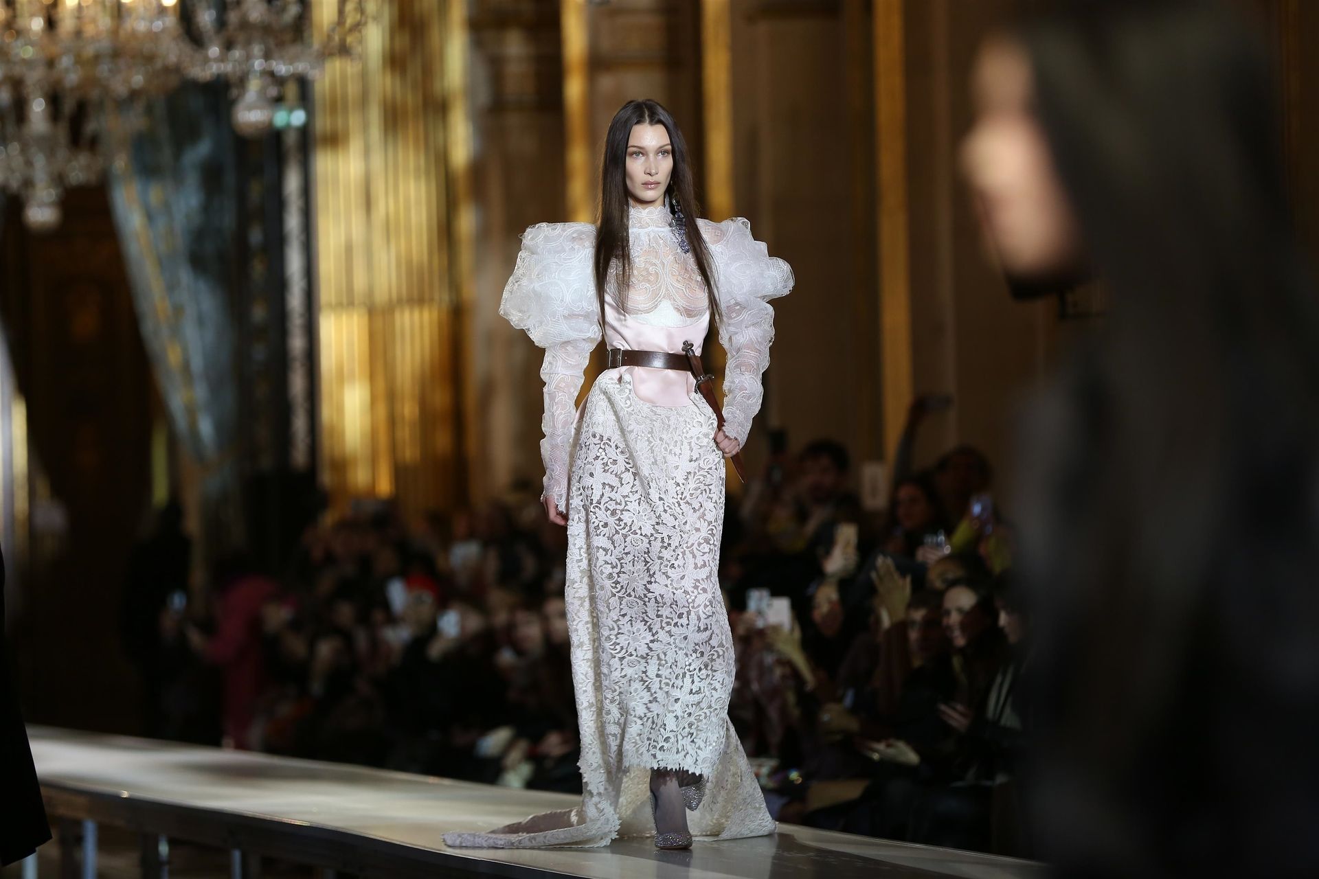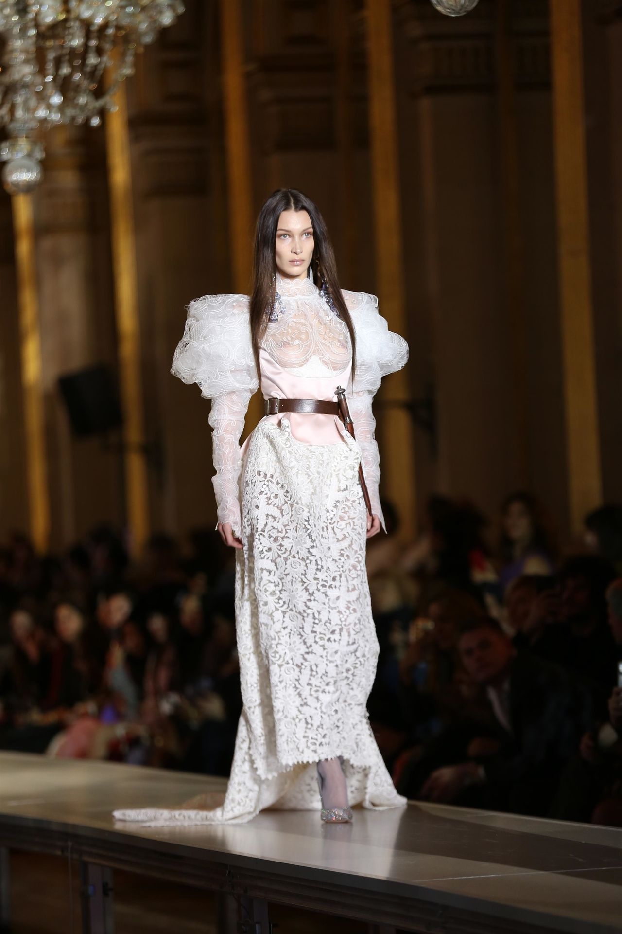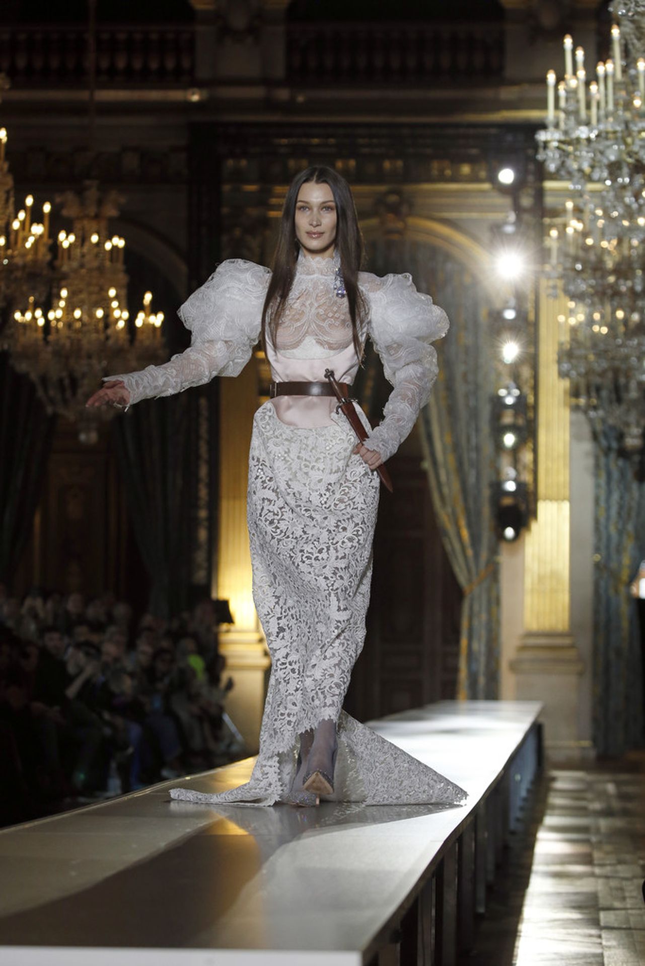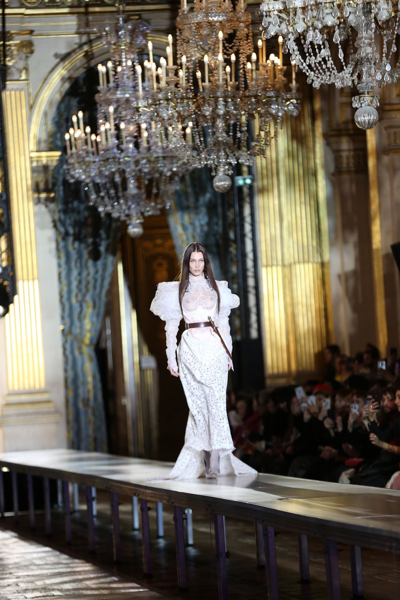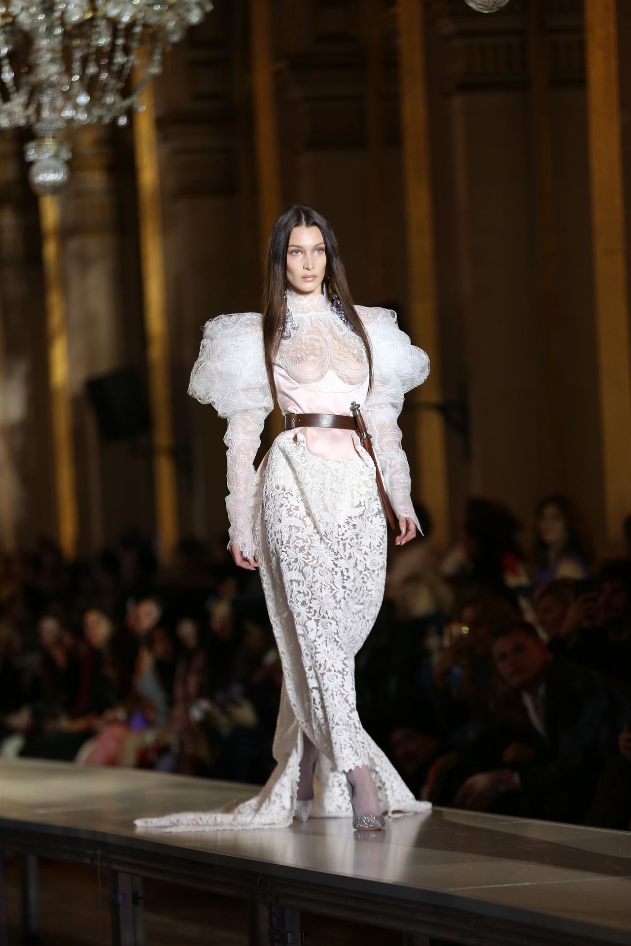La modella Bella Hadid è stata fotografata senza reggiseno mentre sfilava alla sfilata di moda di Vivienne Westwood durante la Paris Fashion Week, 29/02/2020. Bella ti taglierà i gioielli se guardi i suoi seni!