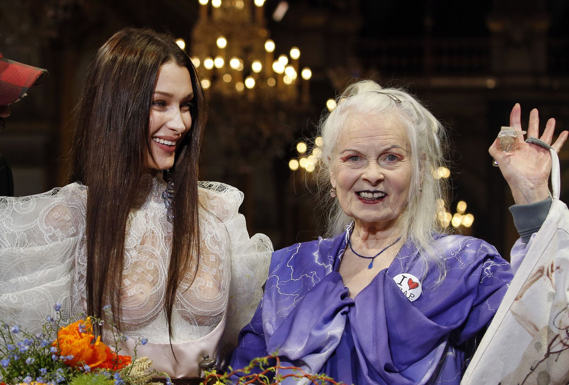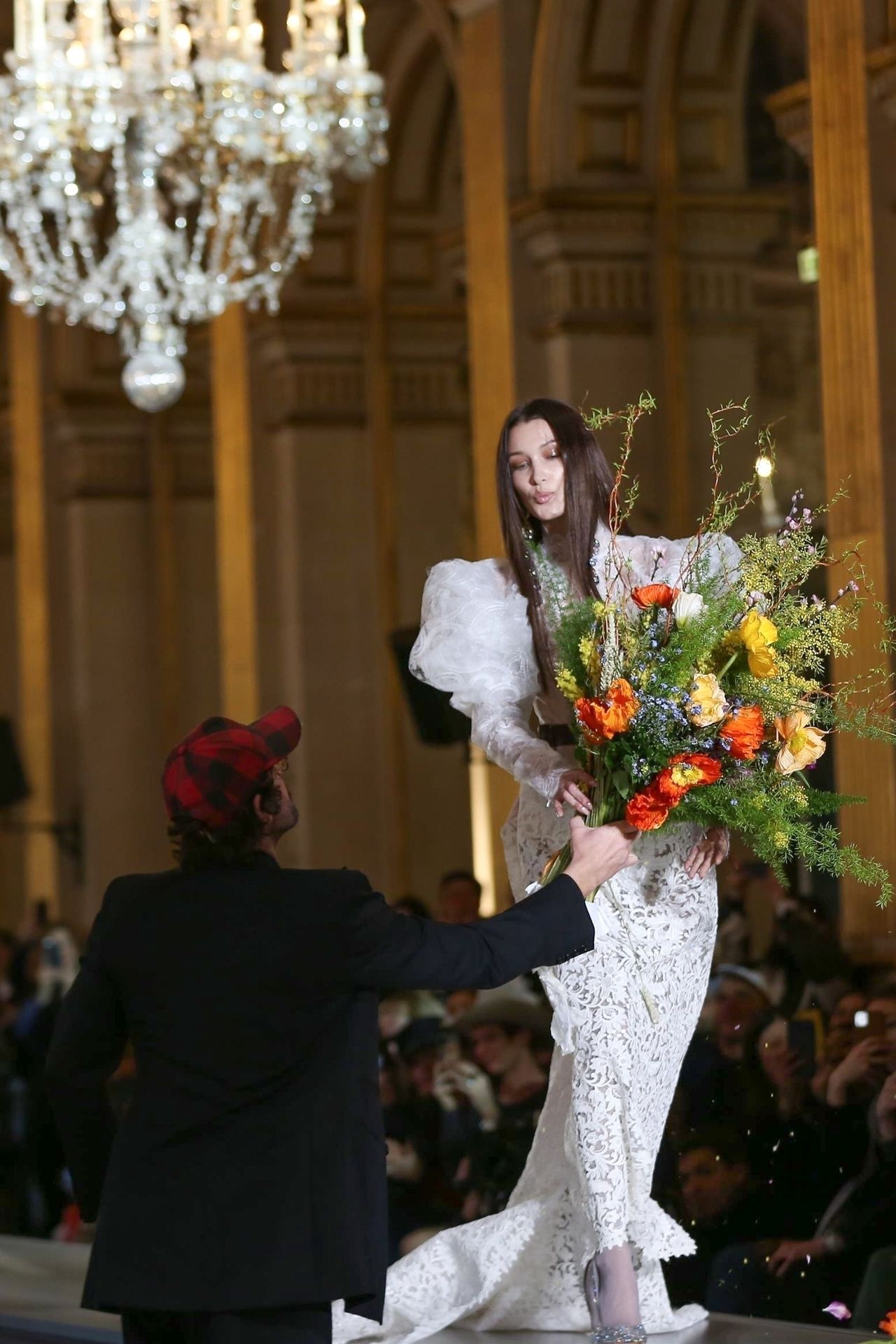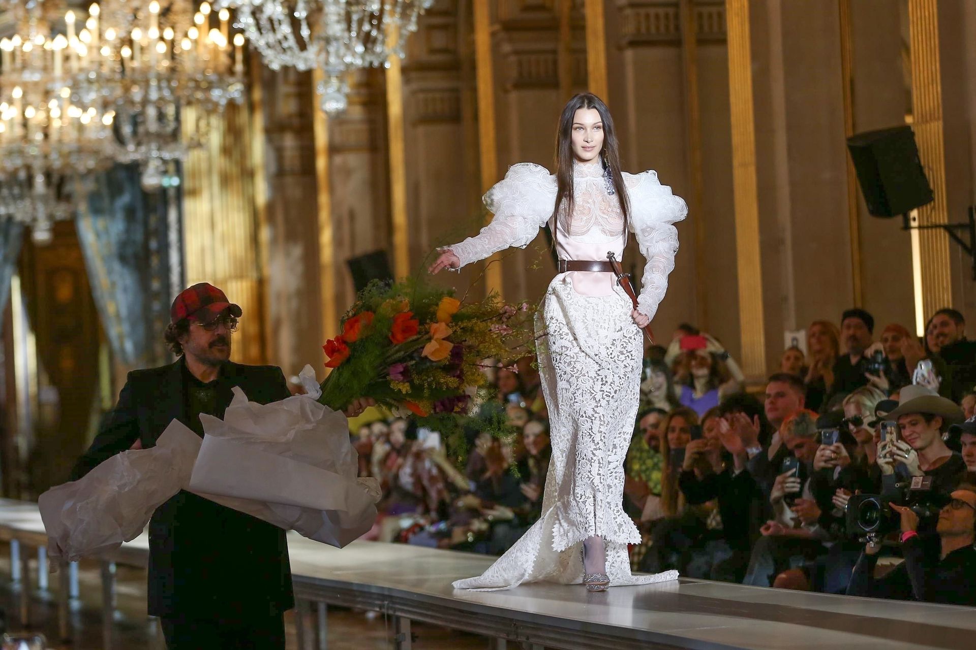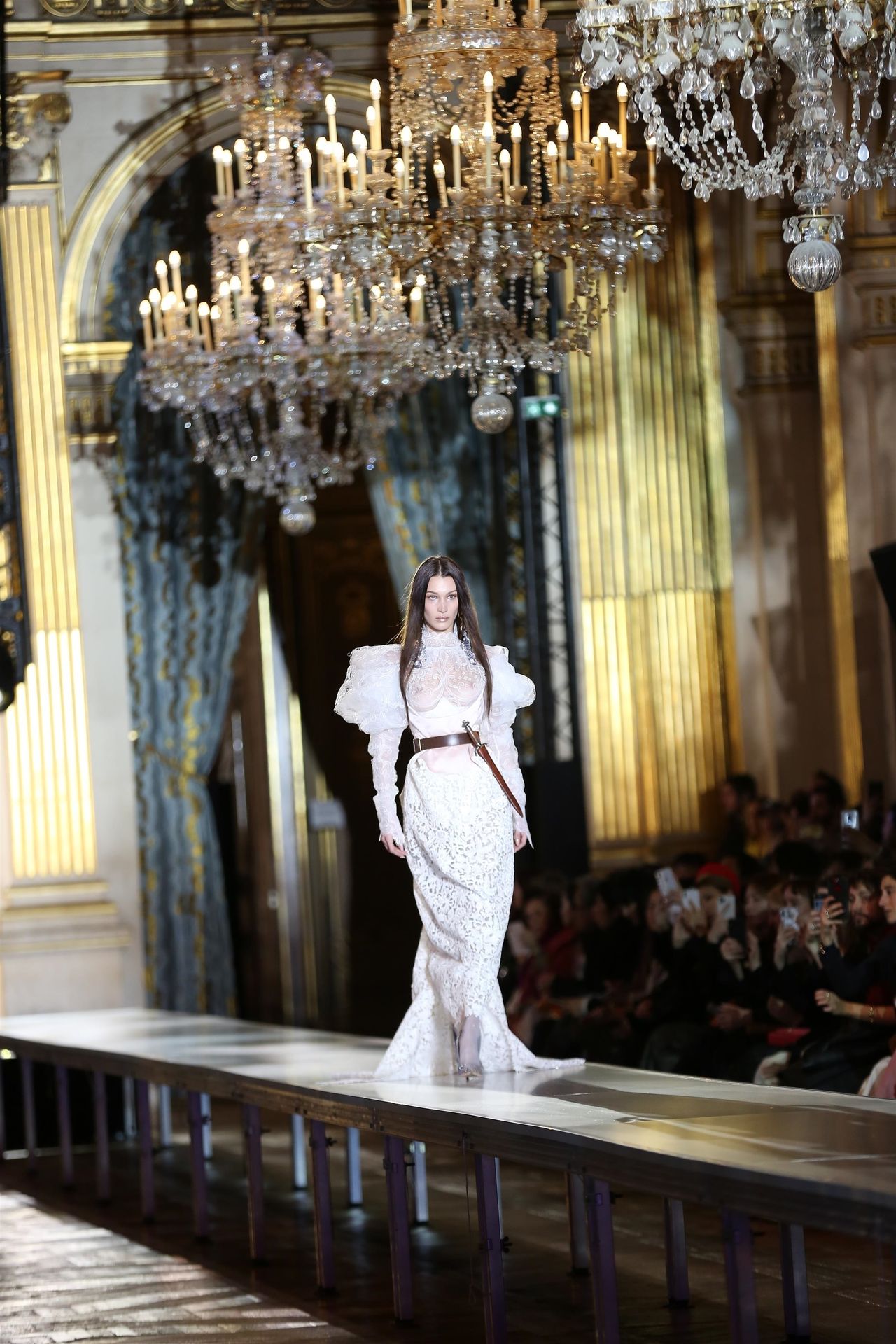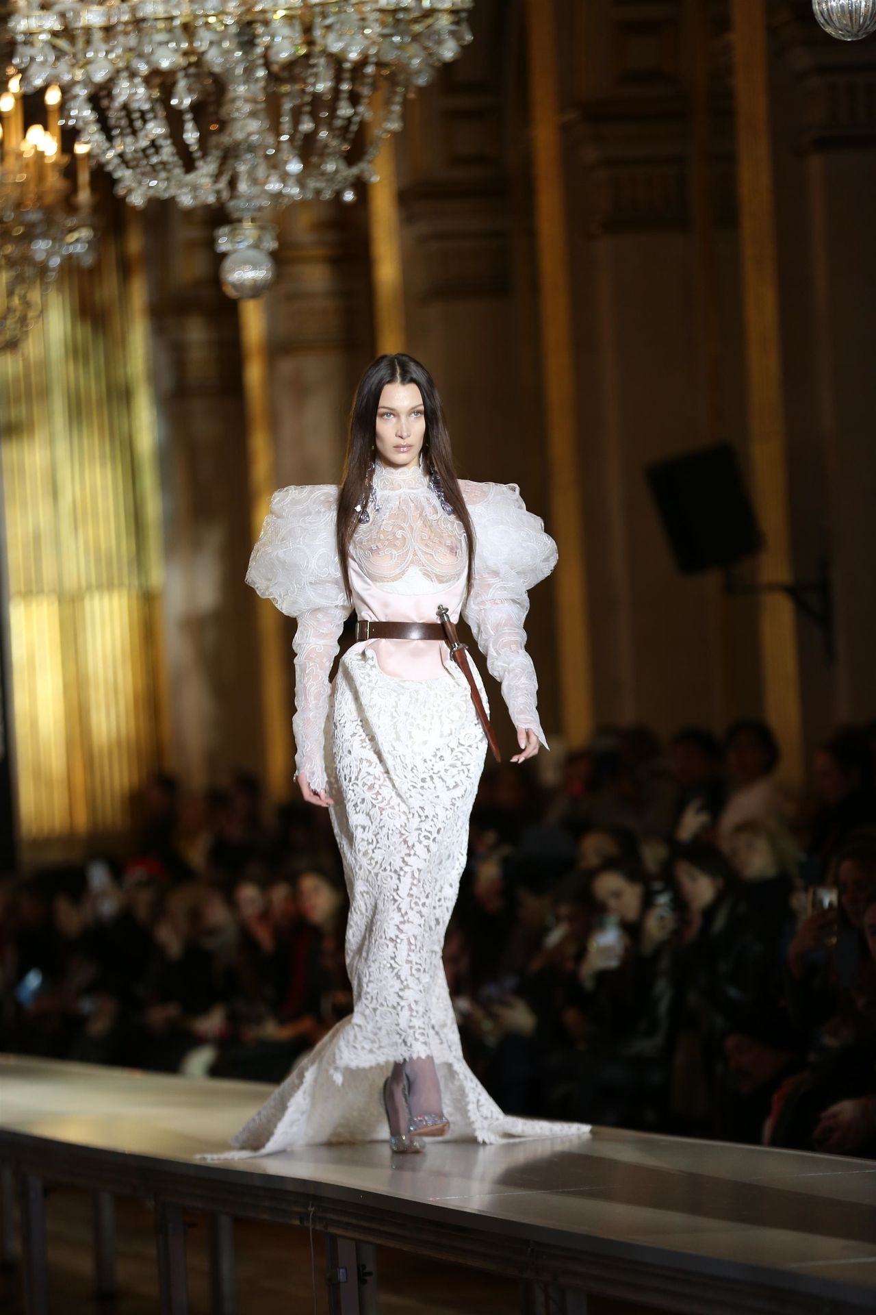 La modella Bella Hadid è stata fotografata senza reggiseno mentre sfilava alla sfilata di moda di Vivienne Westwood durante la Paris Fashion Week, 29/02/2020. Bella ti taglierà i gioielli se guardi i suoi seni!