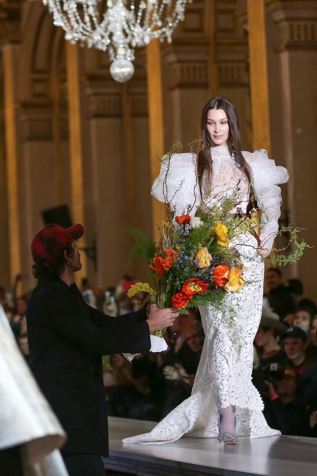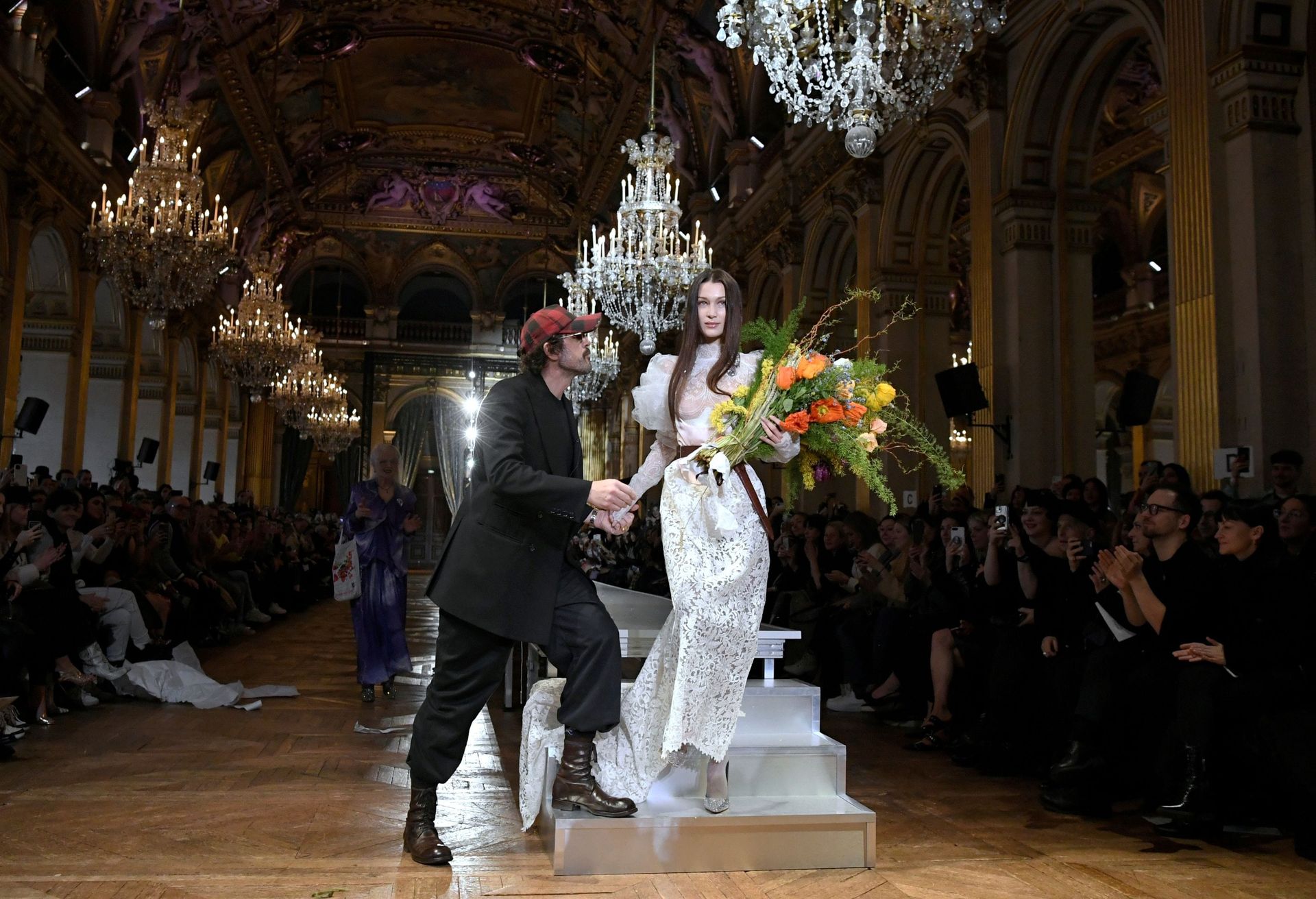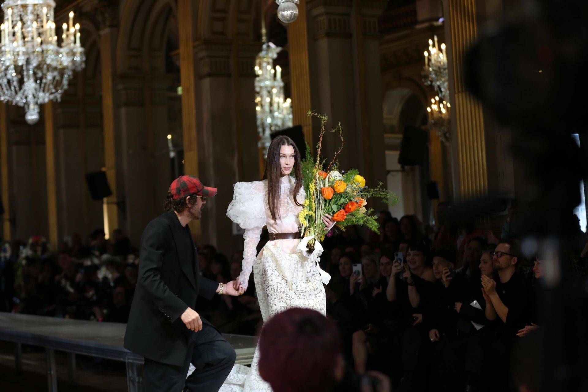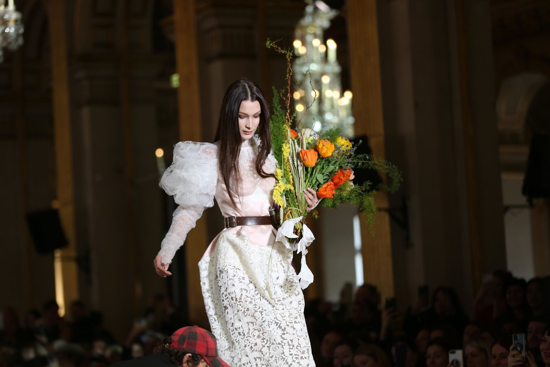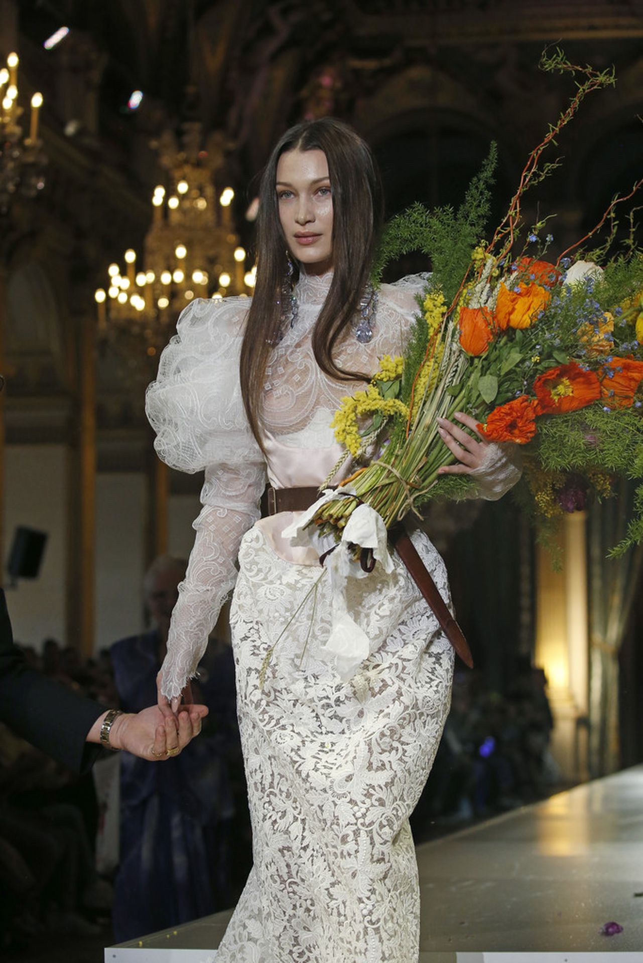 La modella Bella Hadid è stata fotografata senza reggiseno mentre sfilava alla sfilata di moda di Vivienne Westwood durante la Paris Fashion Week, 29/02/2020. Bella ti taglierà i gioielli se guardi i suoi seni!