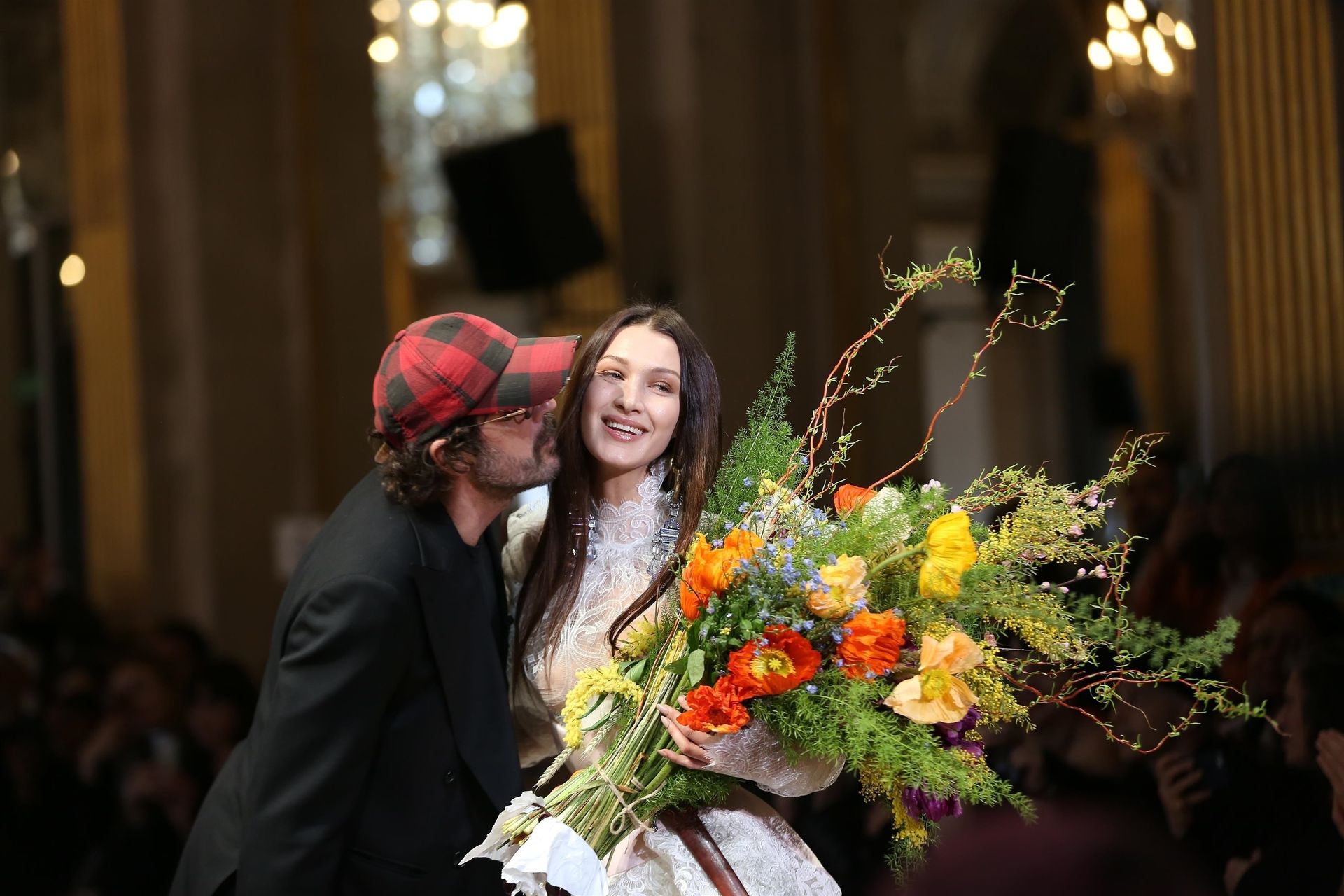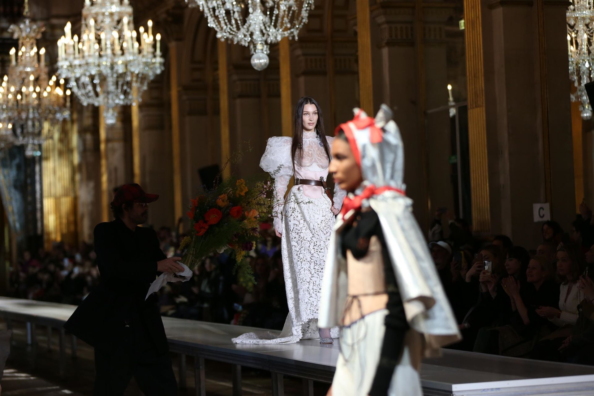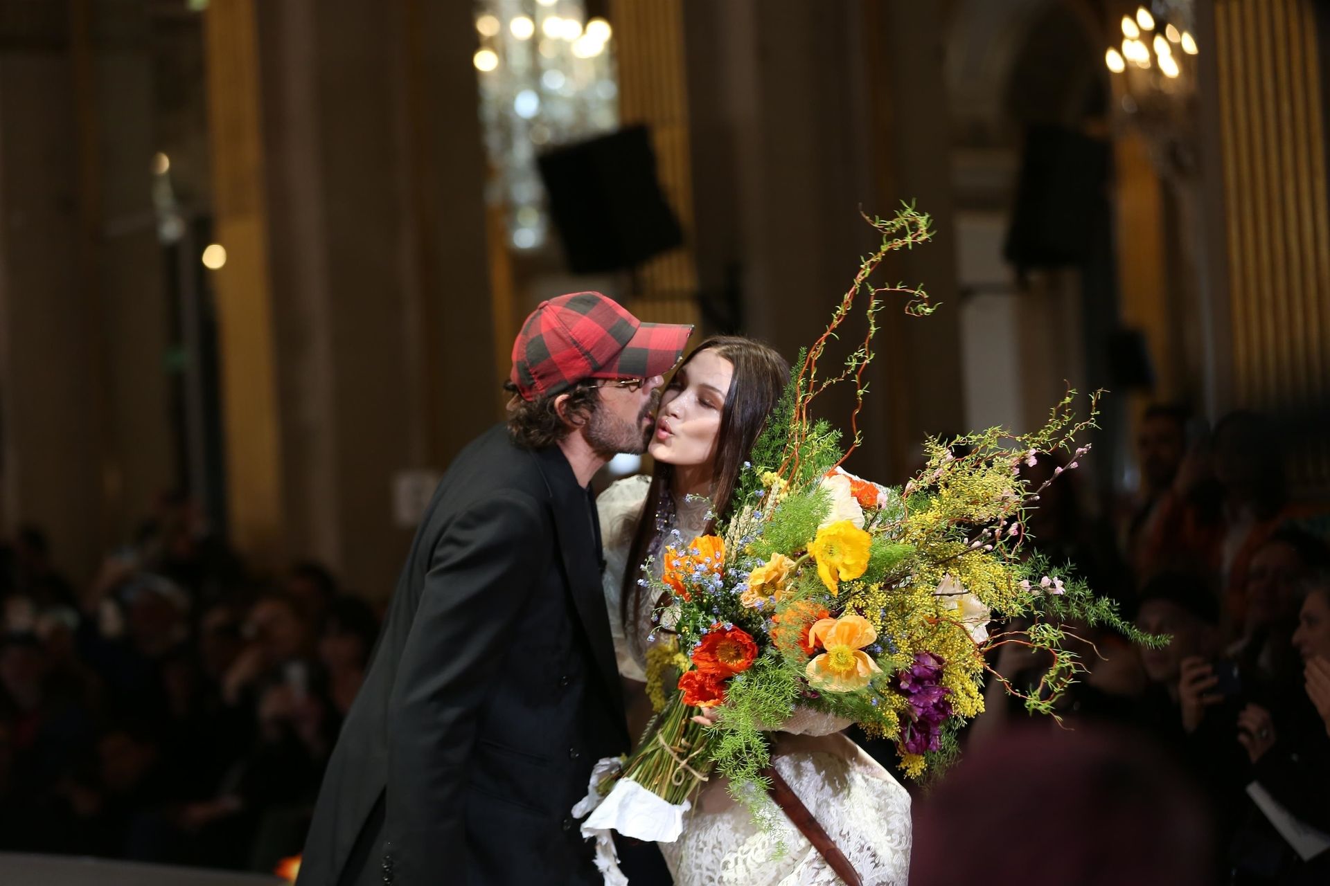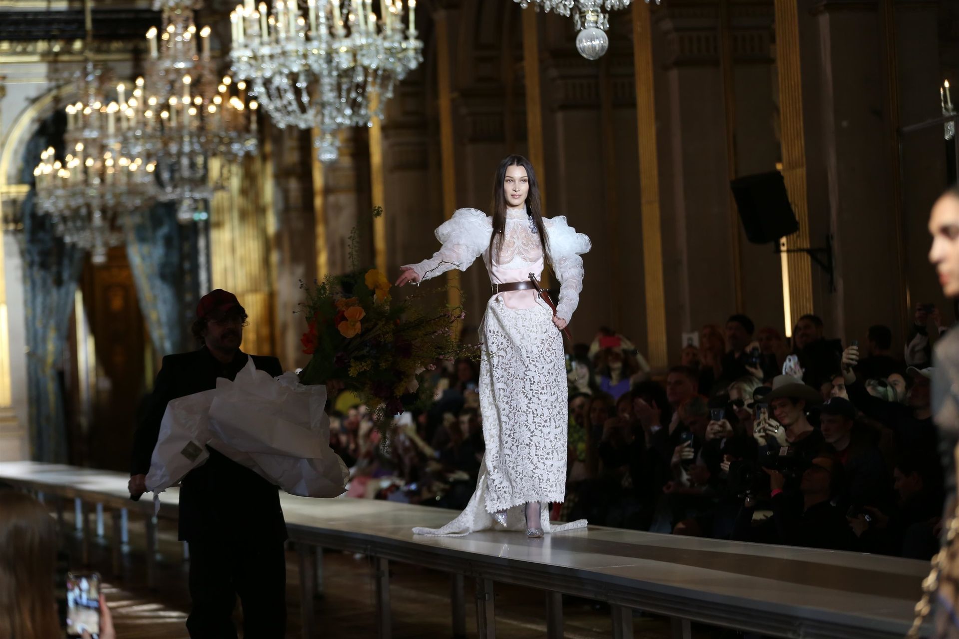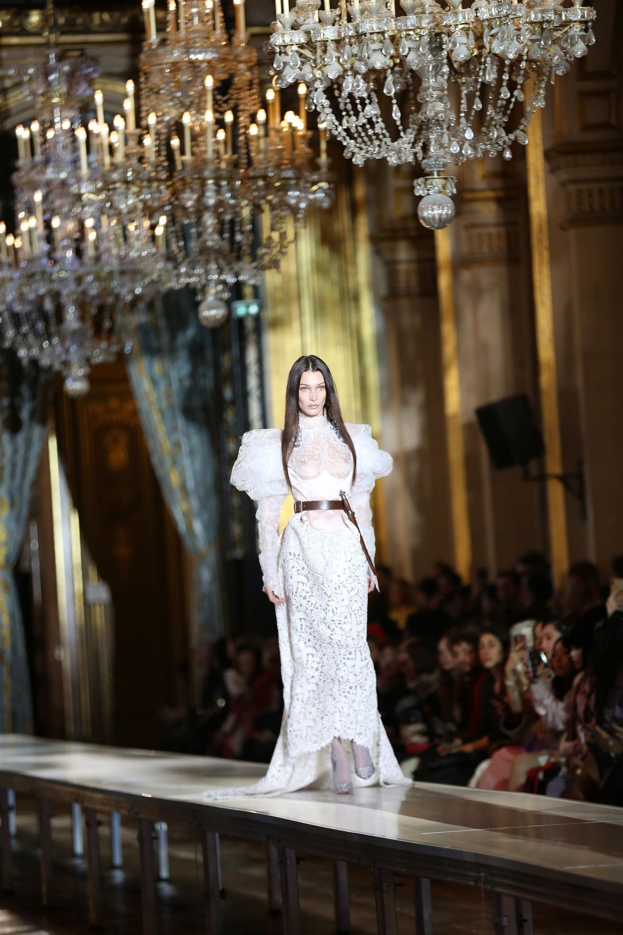 La modella Bella Hadid è stata fotografata senza reggiseno mentre sfilava alla sfilata di moda di Vivienne Westwood durante la Paris Fashion Week, 29/02/2020. Bella ti taglierà i gioielli se guardi i suoi seni!