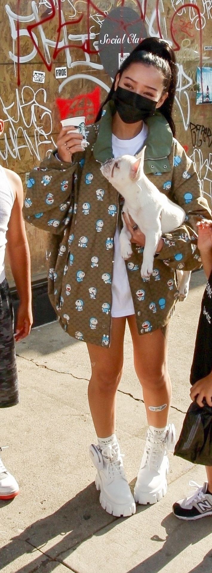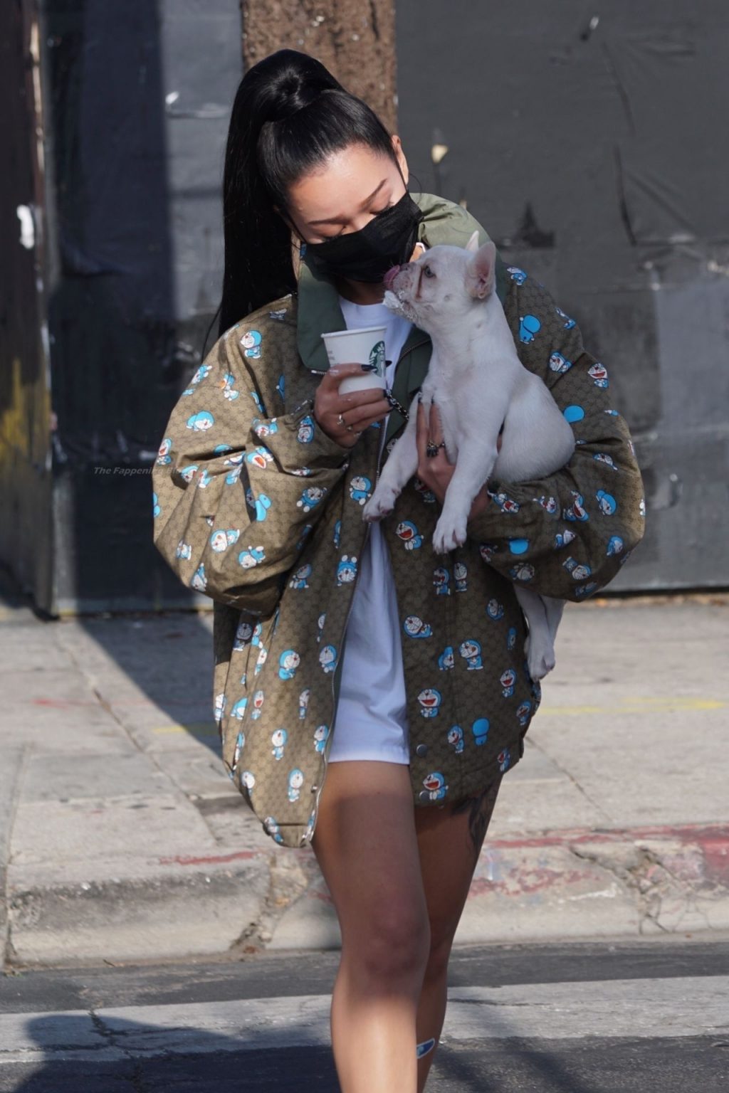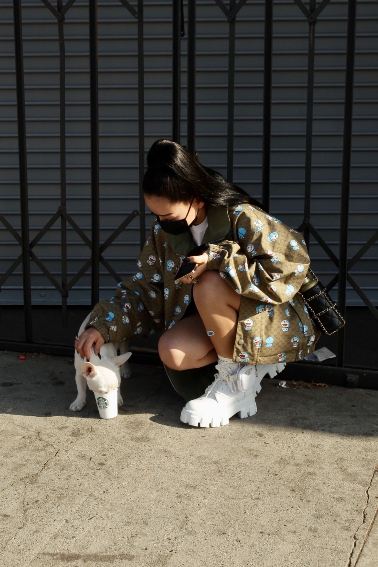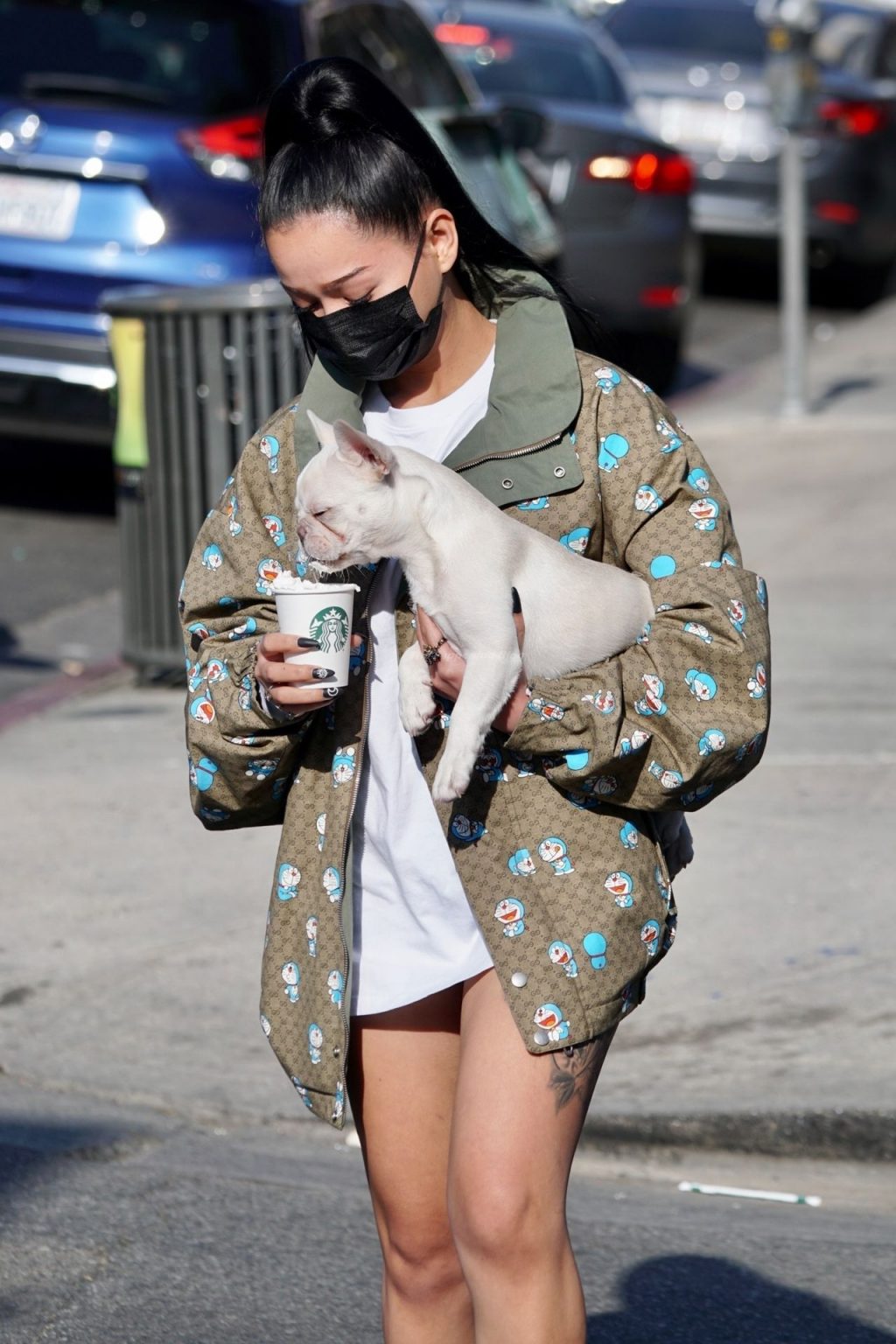 Youtuber e star di TikTok Bella Poarch è stata vista mentre dava al suo cane un po’ di panna montata da Starbucks mentre mostrava il suo senso della moda su Melrose Ave a West Hollywood, 02/05/2021.