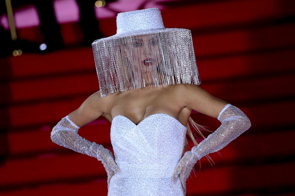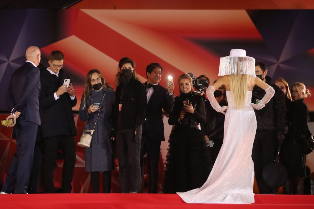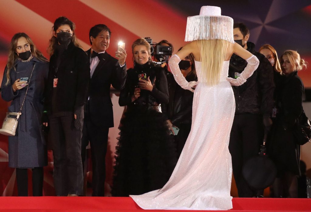 Bella Potemkina partecipa alla cerimonia di chiusura della 42ª edizione del Festival Internazionale del Cinema di Mosca a Mosca, Russia, 08/10/2020. L’influencer russa della moda di 36 anni ha presentato un costoso abito in stile Gaga dal design insolito.