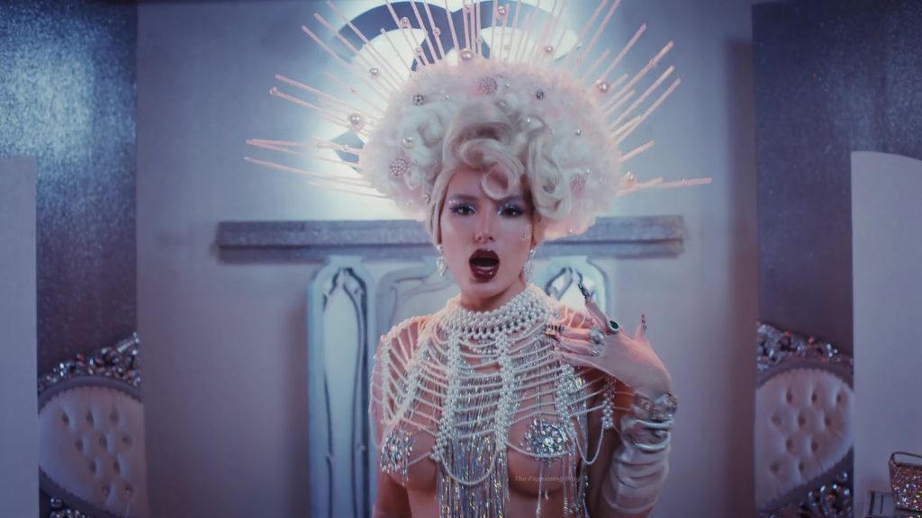 La star del Fappening Bella Thorne mostra i suoi finti seni nudi e lascia intravedere i capezzoli nel nuovo video musicale “Phantom” (2021).