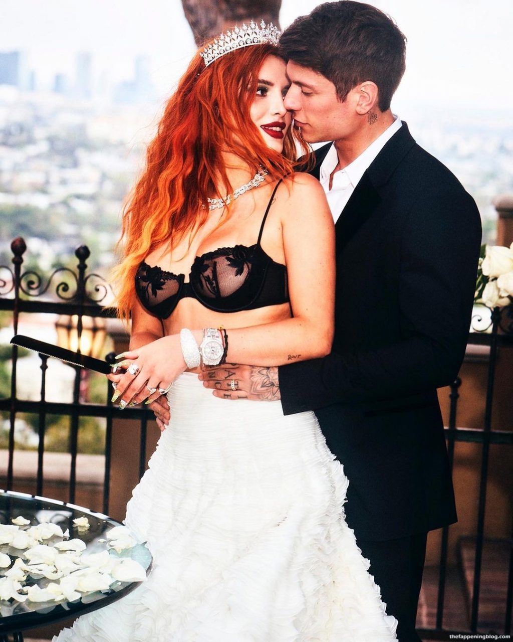 Bella Thorne condivide le foto di fidanzamento più volgari di sempre mentre la star di The Fappening si toglie l’abito da sposa per indossare la lingerie, mostrando affetto con il fidanzato Benjamin Mascolo in un servizio fotografico di Ellen von Unwerth (2021).