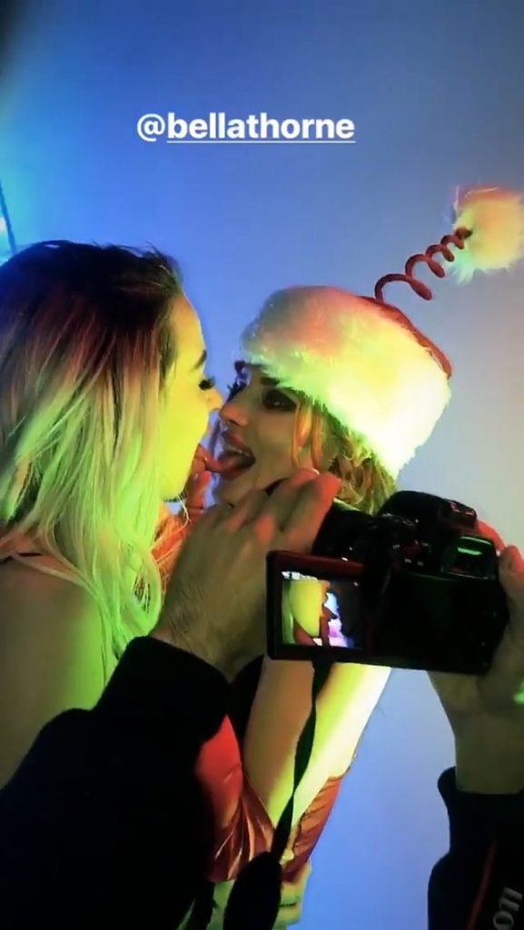 Bella Thorne indossa un sexy costume da Babbo Natale sul set del videoclip natalizio – Instagram, 12/09/2017. Annabella Thorne è un’attrice americana (Assassination Nation), star di Instagram, cantante. Età: 20.