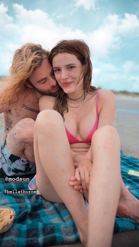 Attrice Bella Thorne si gode una giornata con Mod Sun, Tana Mongeau, Irv “Gotti” Lorenzo e amici sulla spiaggia in South Carolina – Instagram, 16/05/2018.