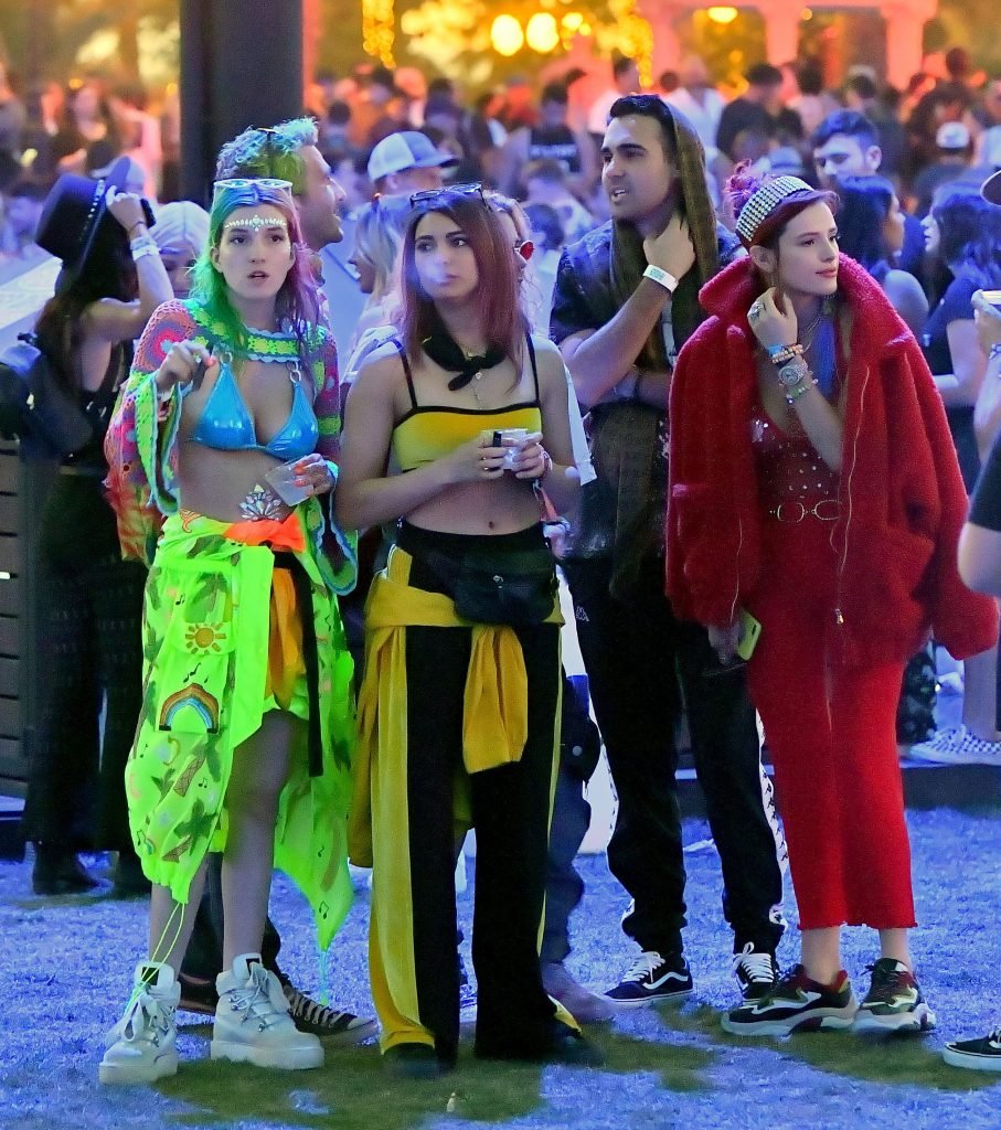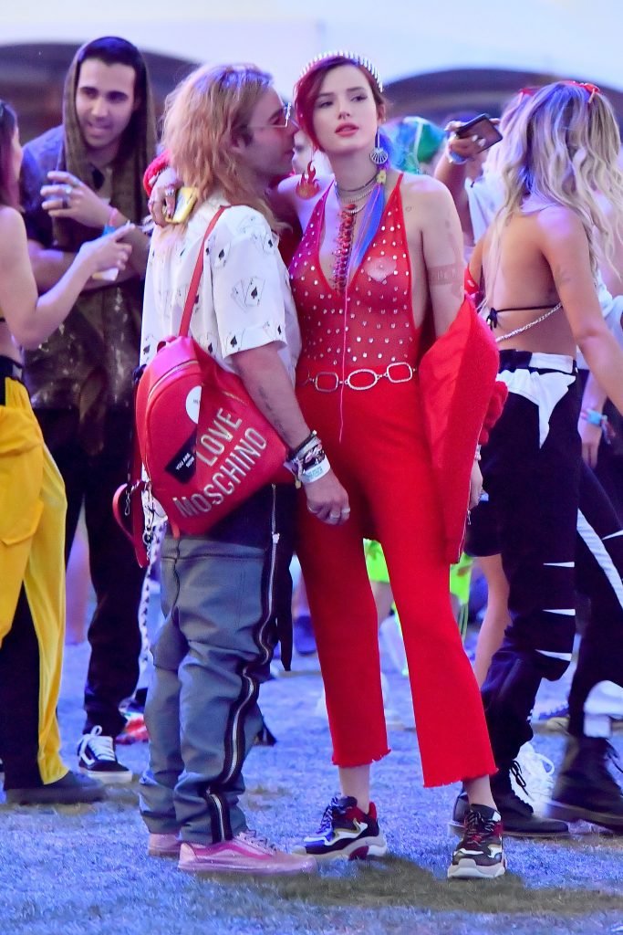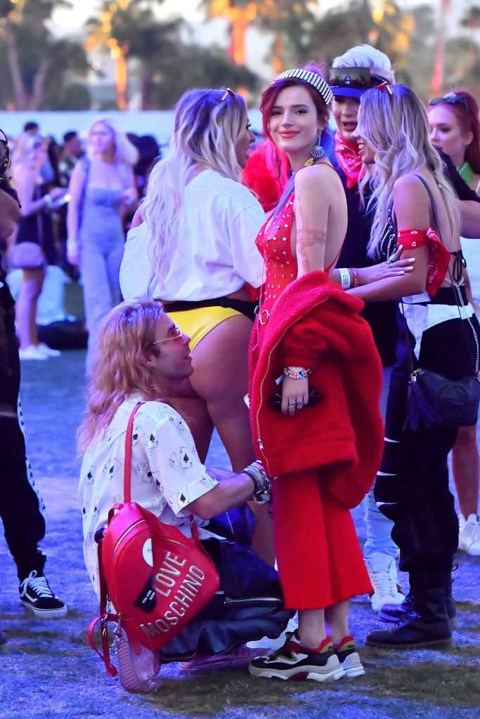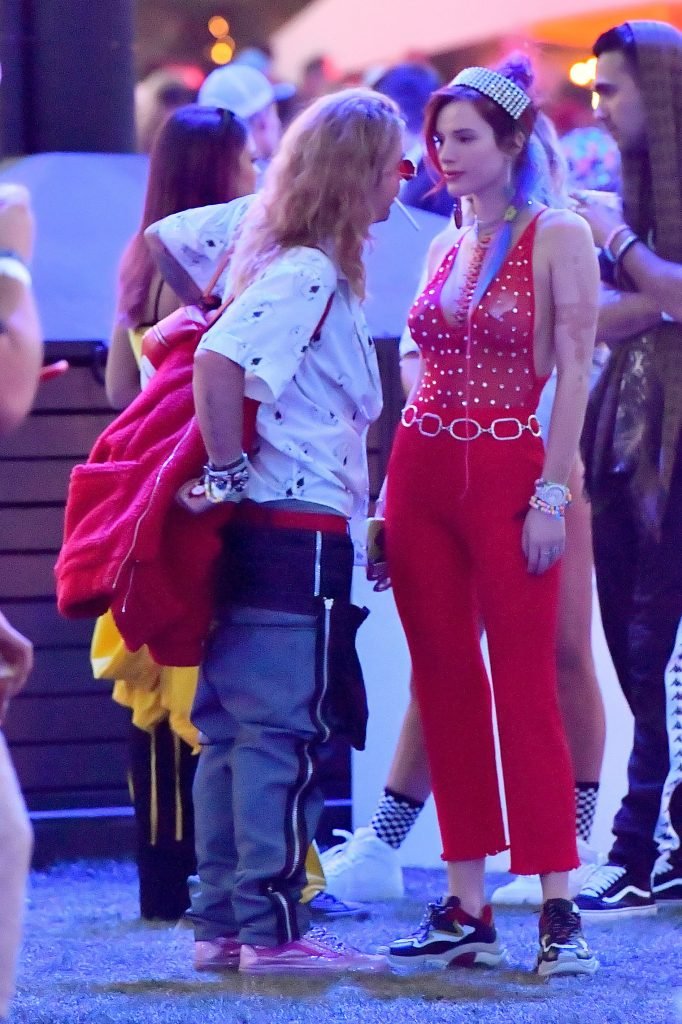 Cantante e attrice Bella Thorne, 20 anni, indossa un abito rosso mentre si diverte con Mod Sun al Coachella, 14/04/2018. La felice coppia, accompagnata dagli amici e dalla sorella di Bella Dani e dall’amica Tana, è stata vista ballare e divertirsi molto nella sezione VIP prima di andare a vedere l’esibizione di Beyonce.