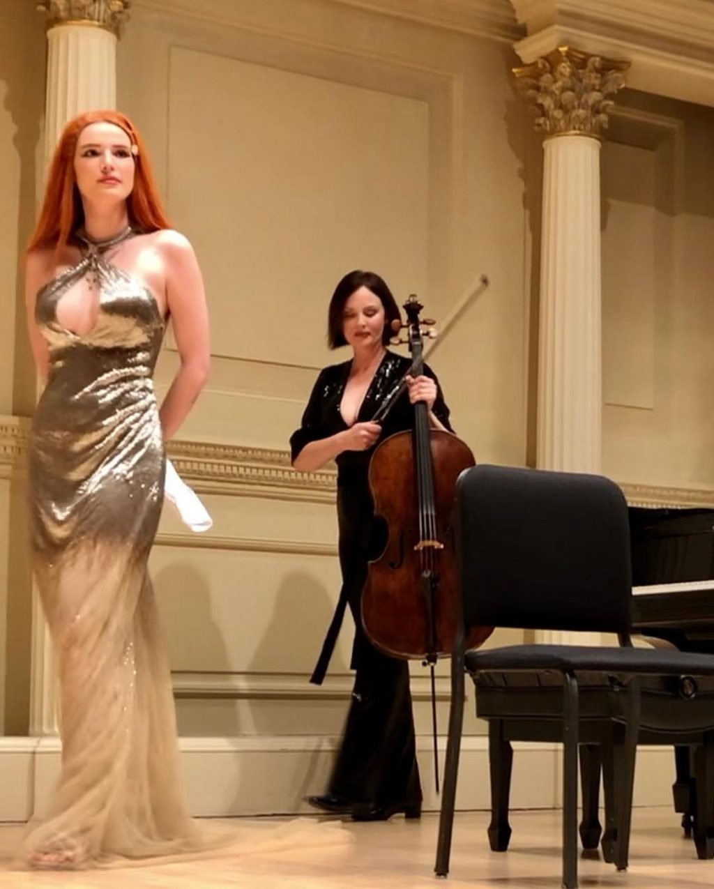 Attrice Bella Thorne è stata vista in un elegante abito dorato al Carnegie Hall di New York City, 25/03/2019.