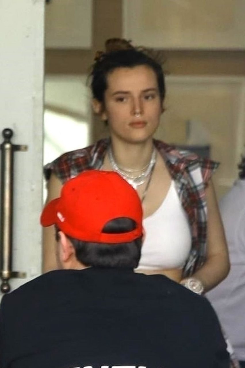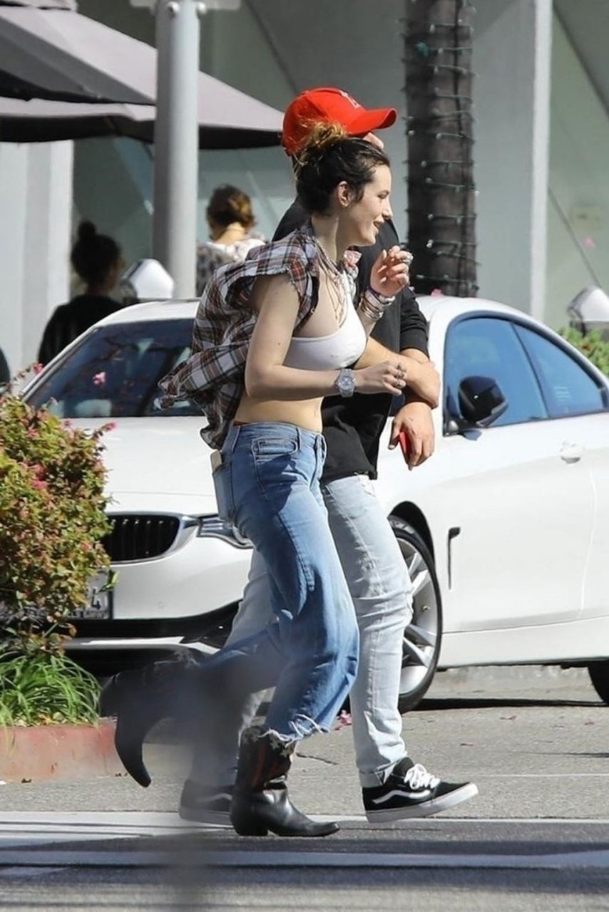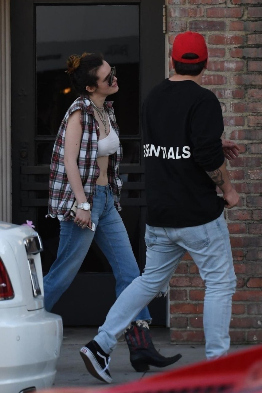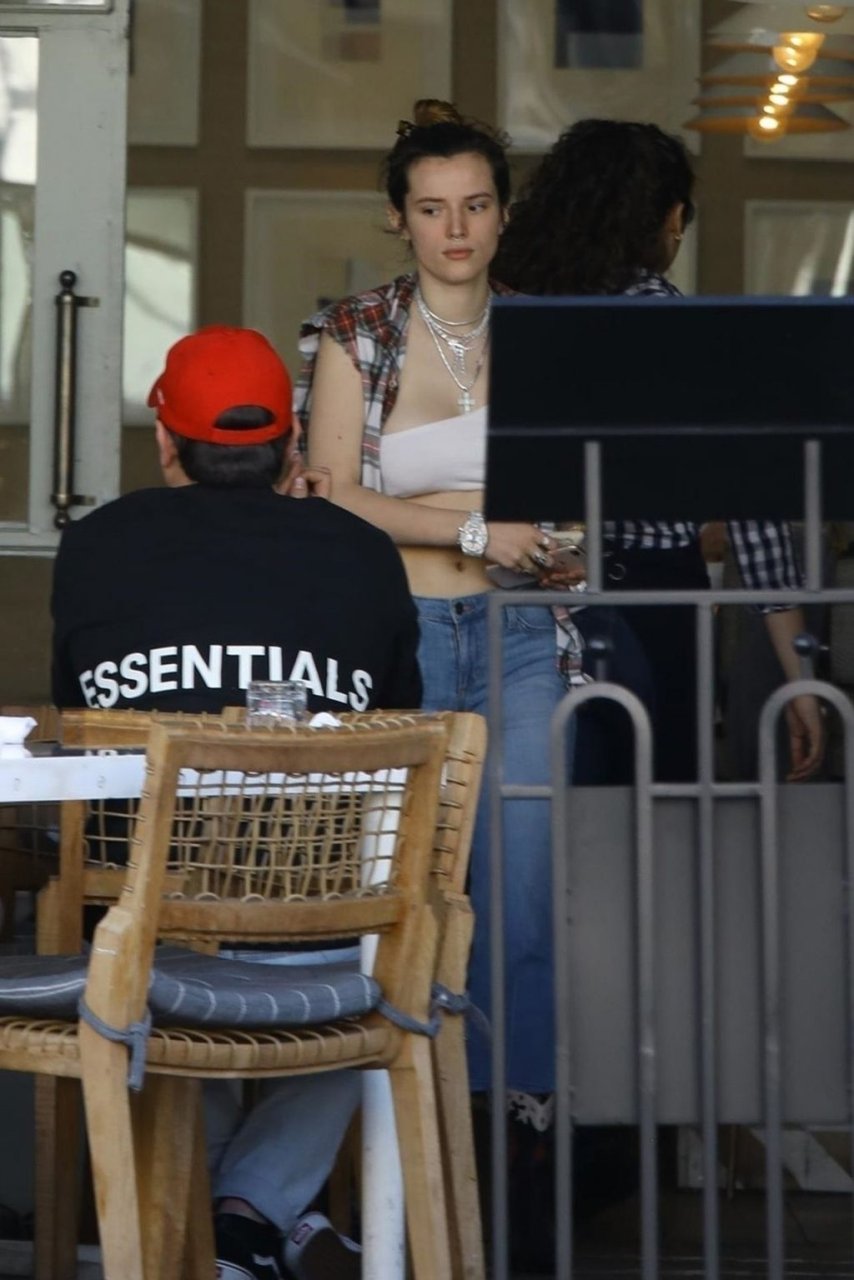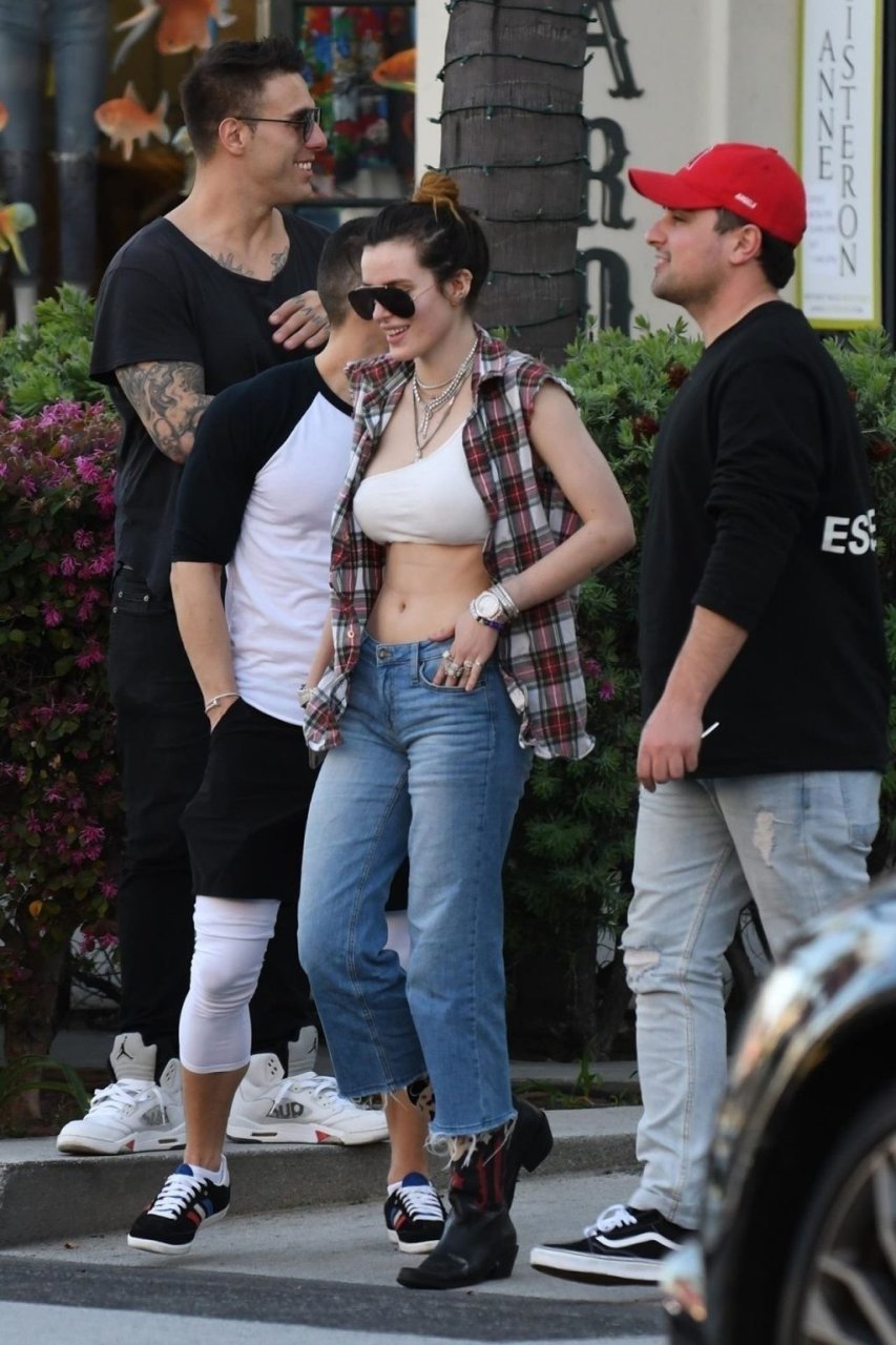 Bella Thorne ha gli occhi pieni di lacrime mentre pranza con amici a Los Angeles, 30/03/2019. Il gruppo è stato visto al Cafe Gratitude parlare e ridere mentre gli occhi di Bella si riempivano di lacrime. Non è chiaro se stesse piangendo per tristezza o per ilarità durante il pasto.