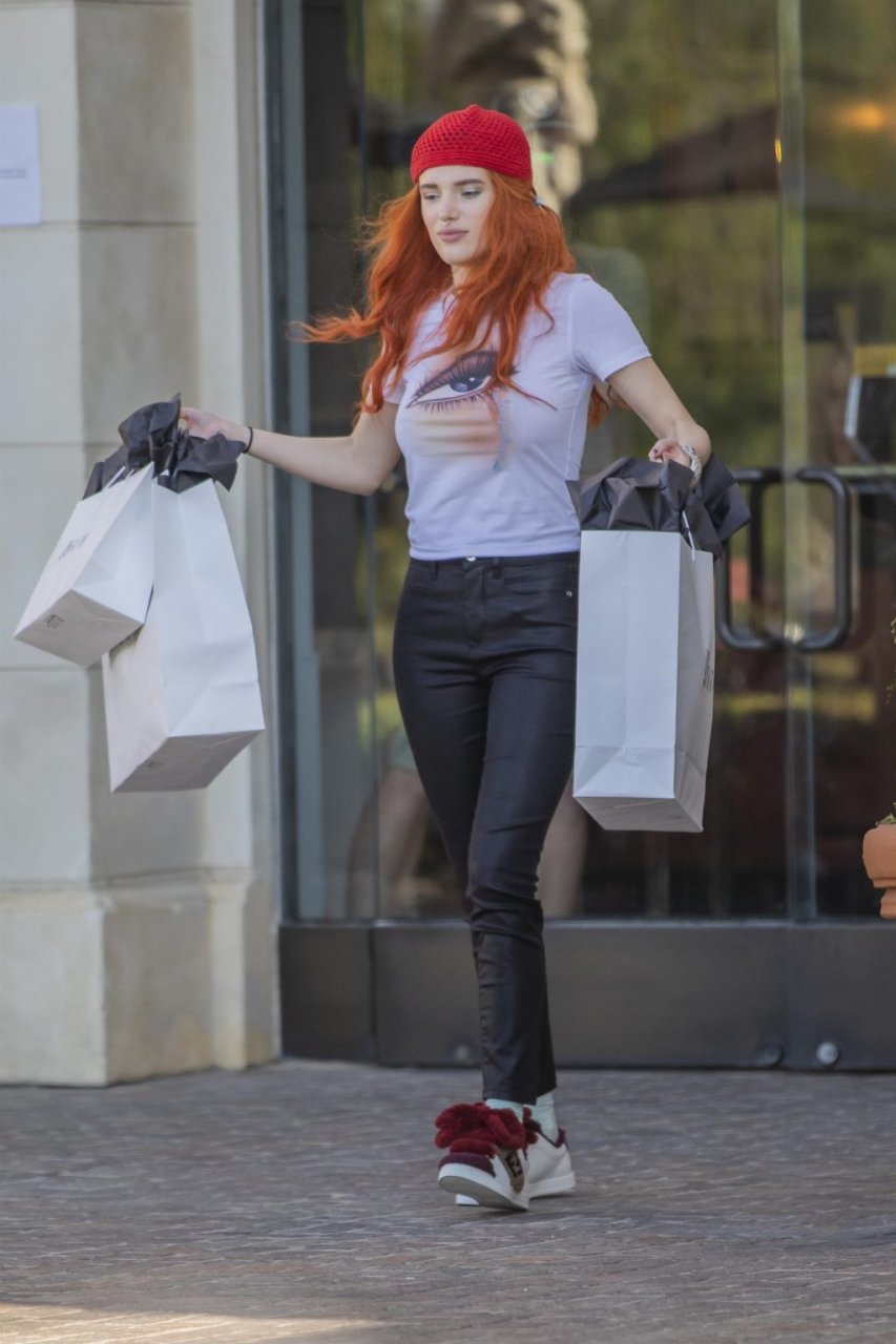 L’attrice Bella Thorne è stata vista indossare una maglietta bianca senza reggiseno e pantaloni neri aderenti sul set di “Droppin’ Cash” a Calabasas, California, 06/09/2018.