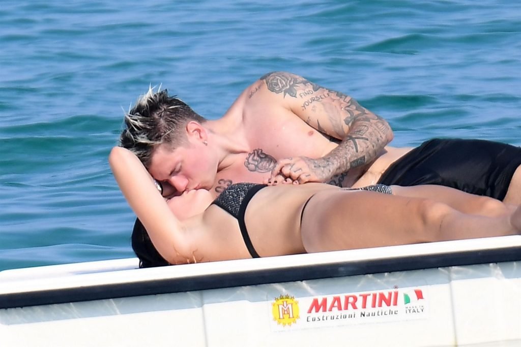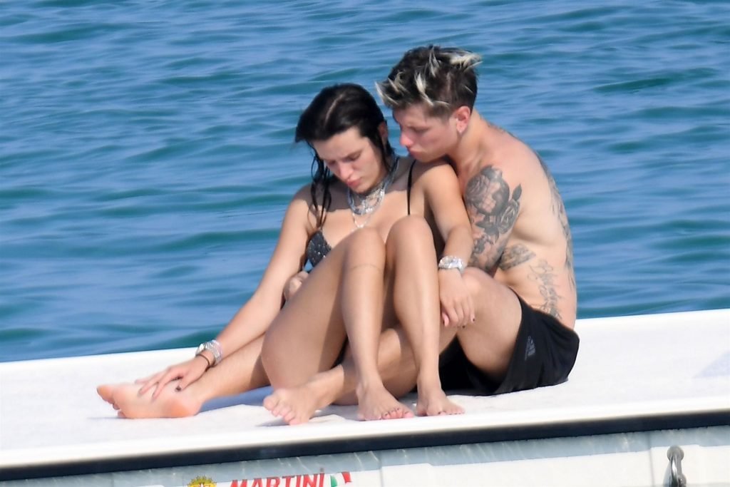 Bella Thorne e Benjamin Mascolo continuano la loro romantica vacanza piena d’amore in Sardegna, Italia, 25/08/2019. La coppia ha mostrato un’intensa dimostrazione pubblica di affetto e si è potuta vedere mentre si coccolavano e si baciavano seduti vicino all’acqua.