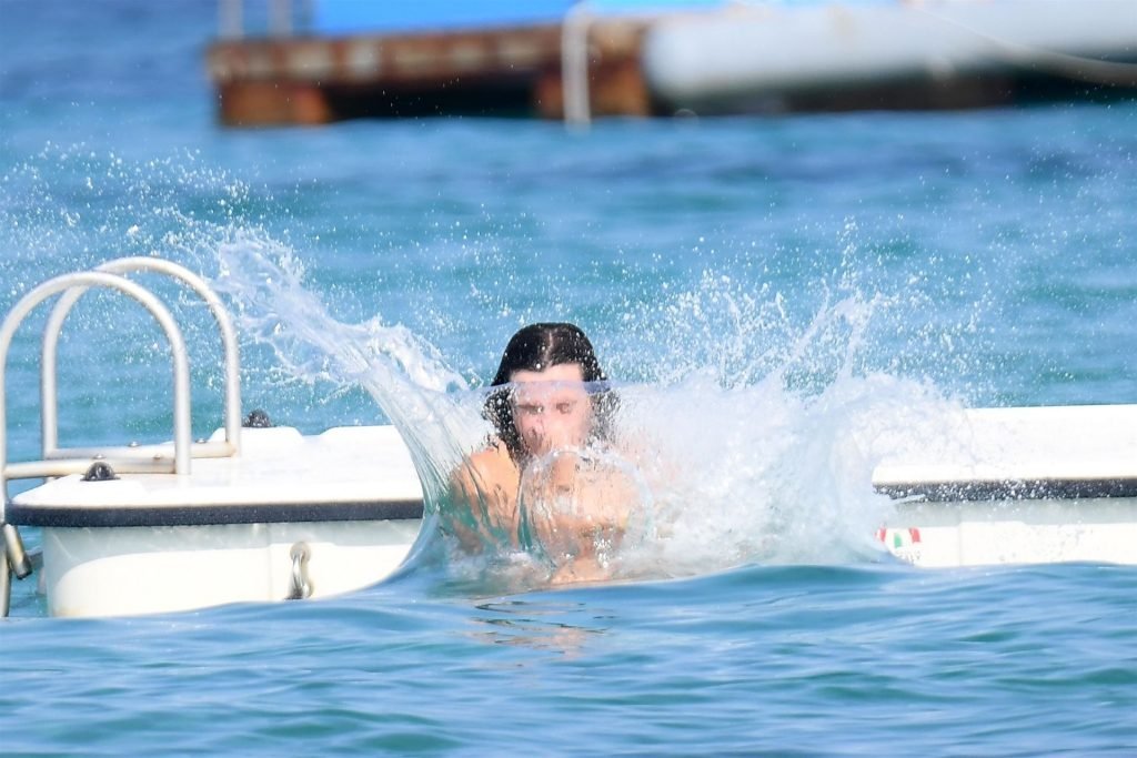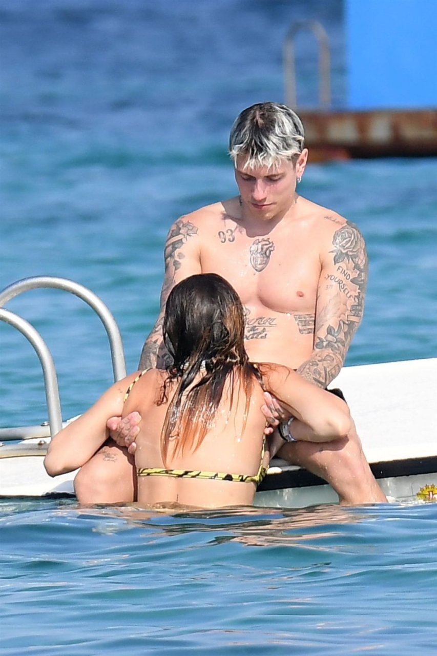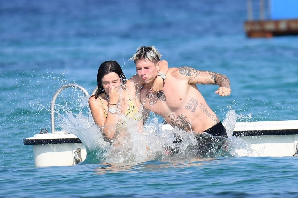 Bella Thorne e Benjamin Mascolo si tuffano insieme mentre continuano la loro vacanza romantica in Sardegna, Italia, 24/08/2019. La coppia ha mostrato un’intensa dimostrazione di affetto in pubblico e si è potuta vedere mentre si tuffavano insieme e si baciavano in acqua.