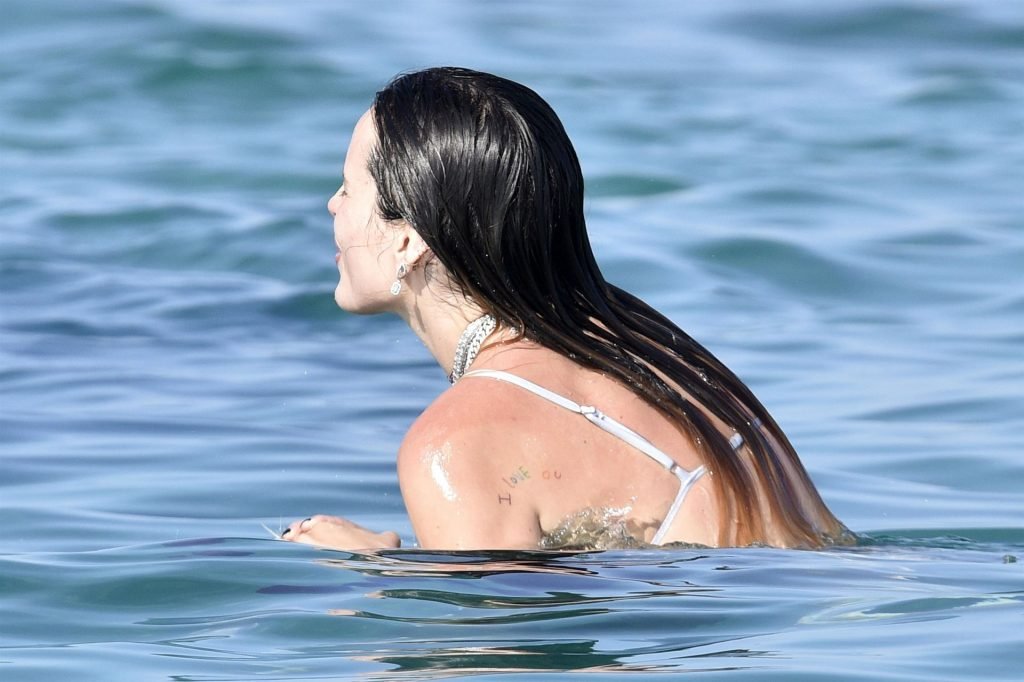 La coppia innamorata è vista nuotare, baciarsi nell’acqua e Bella trova anche il tempo per bere una birra mentre è in mare! Nel frattempo la felice coppia appare fantastica in costume da bagno, Bella indossa un bikini argento.