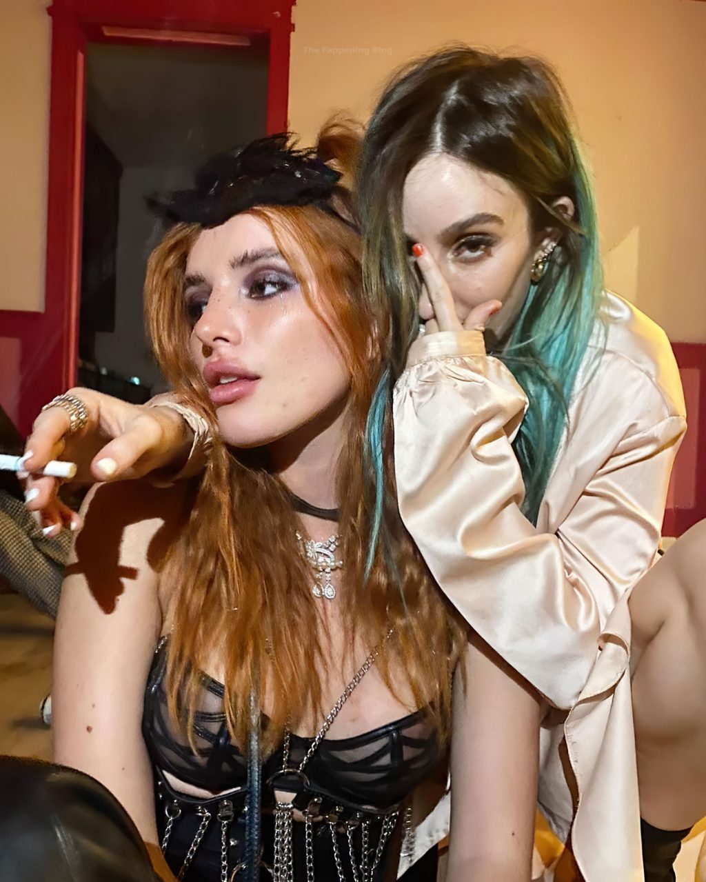 La Star del Fappening Bella Thorne si gode una serata con un costume di Halloween trasparente insieme a sua sorella Dani, Francesca Farago e altri – Instagram, 26/10/2020.