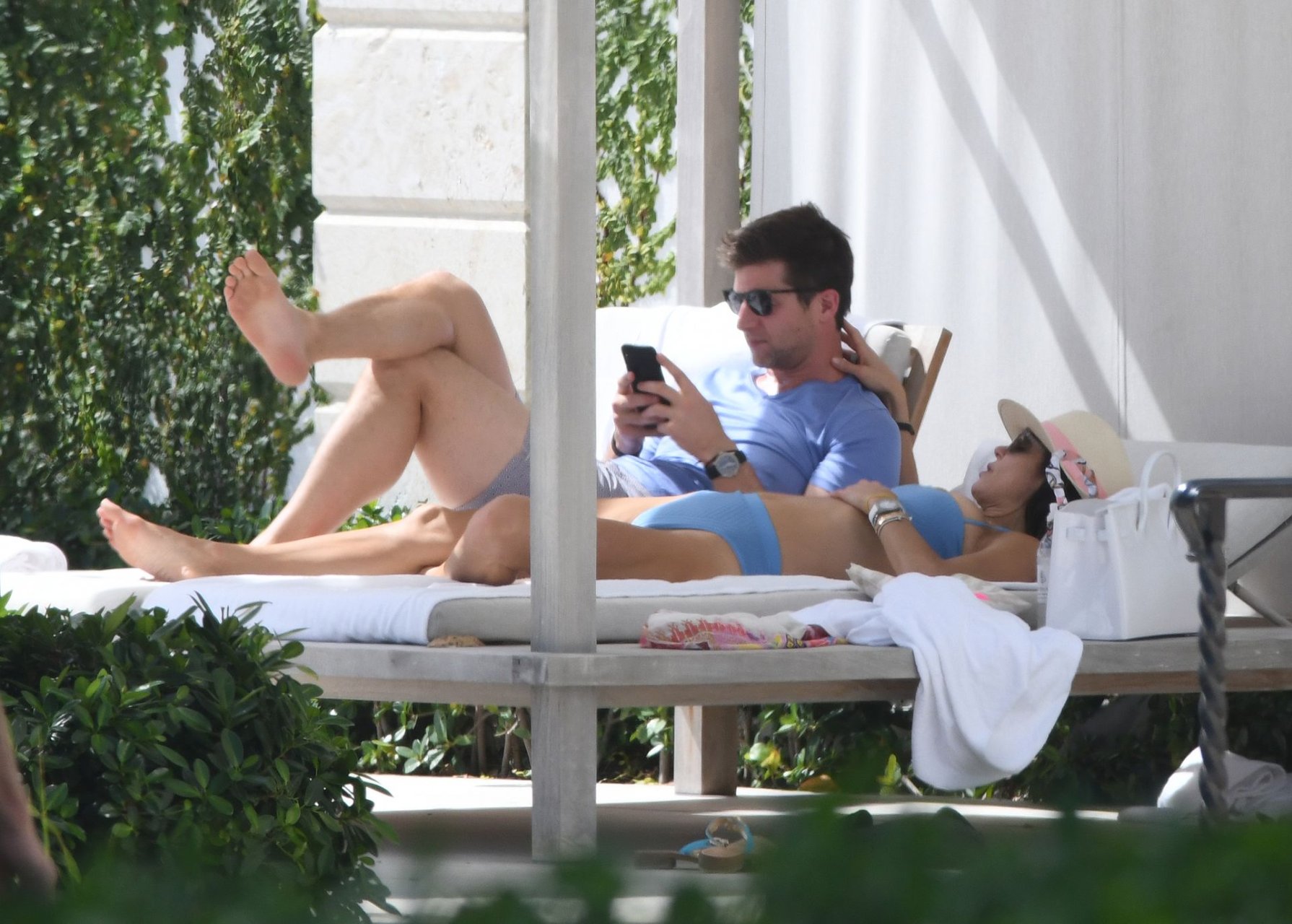 Bethenny Frankel (48) indossa un bikini blu mentre si rilassa a bordo piscina con il fidanzato Paul Bernon a Miami, 23/02/2019. La star di Real Housewives of New York ha mostrato anche un po’ di PDA con il suo nuovo amore mentre si sdraiavano sulle sdraio.