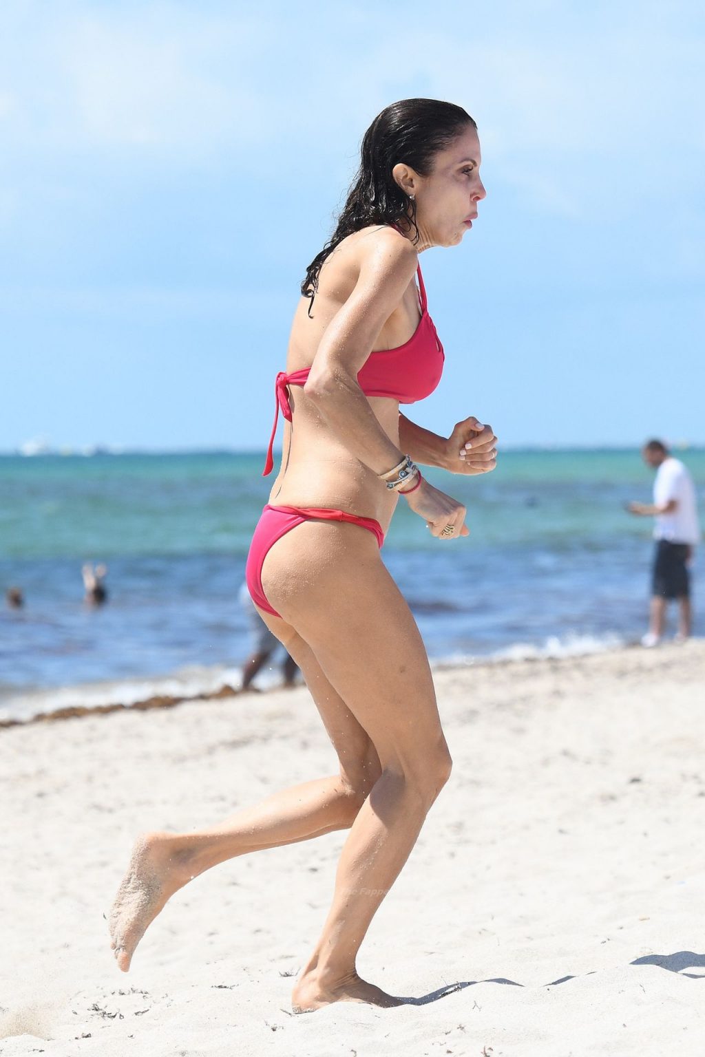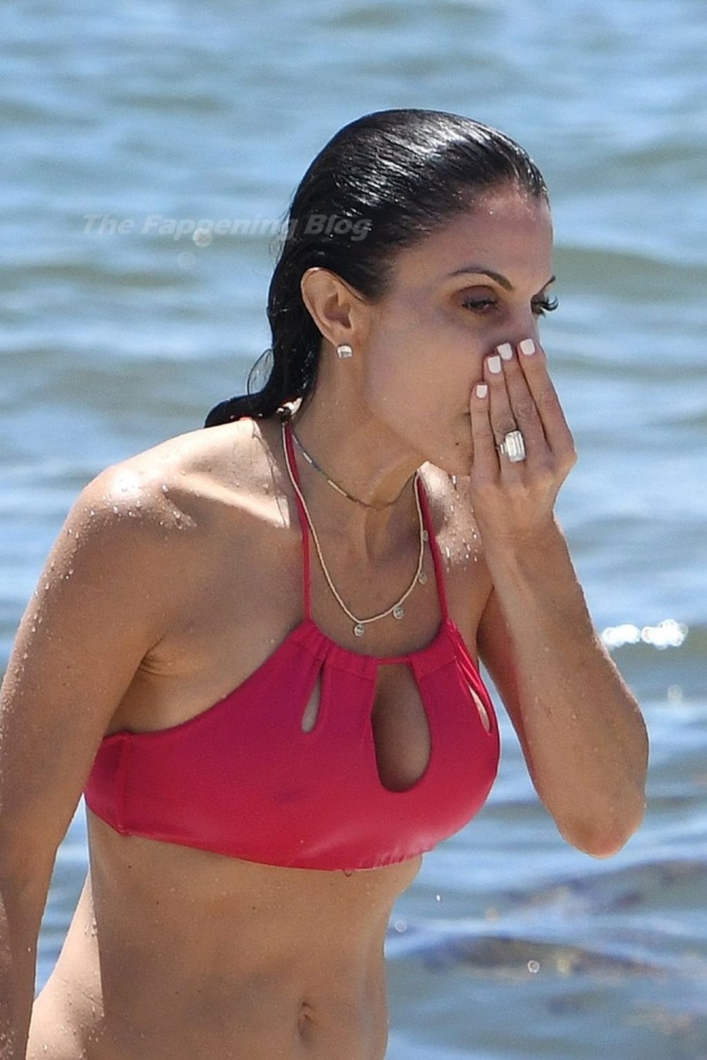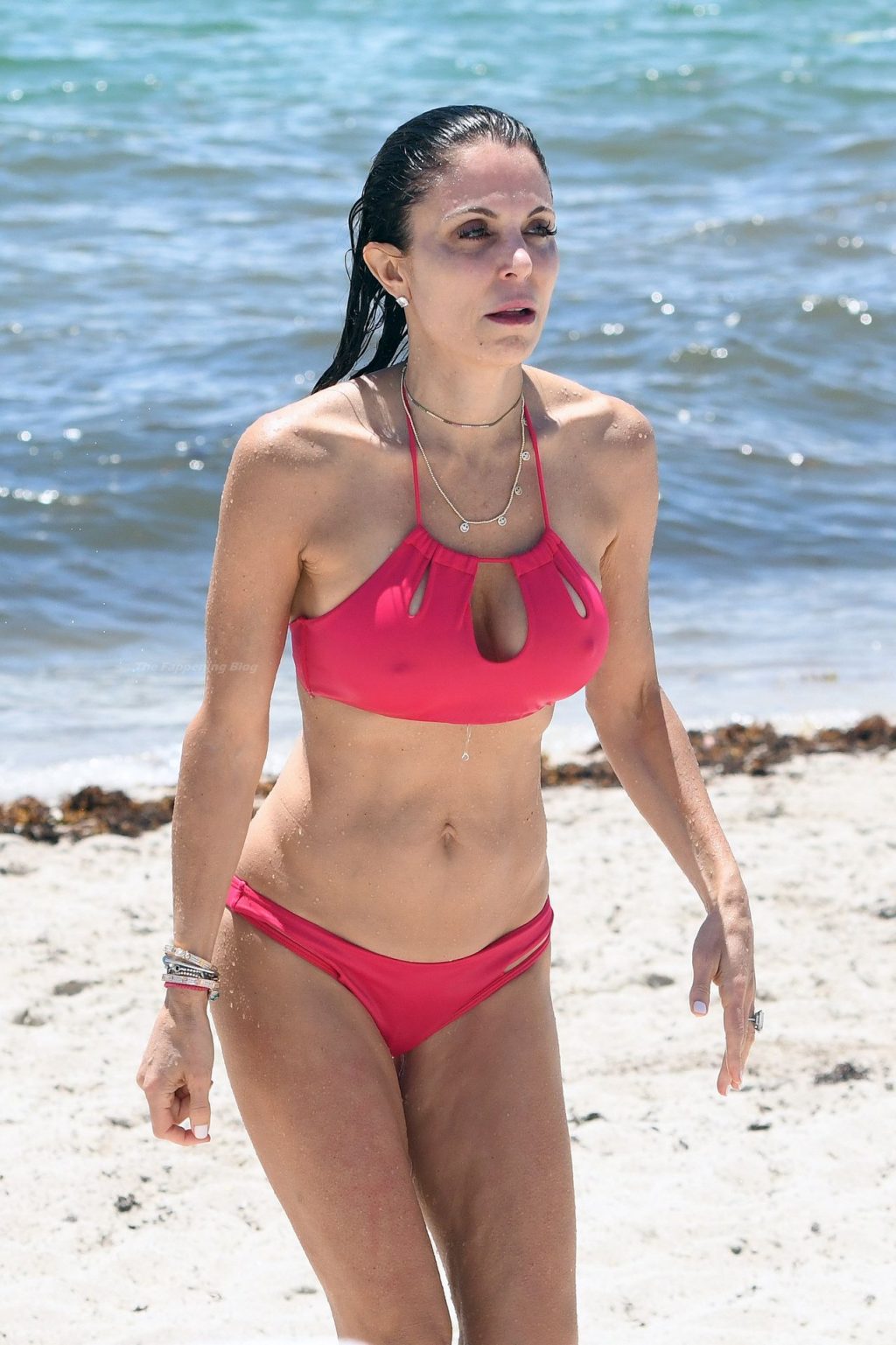 Imprenditrice, scrittrice e star della TV reality Bethenny Frankel indossa un bikini rosa acceso e il suo enorme anello di fidanzamento mentre si gode la spiaggia a Miami, 29/05/2021.