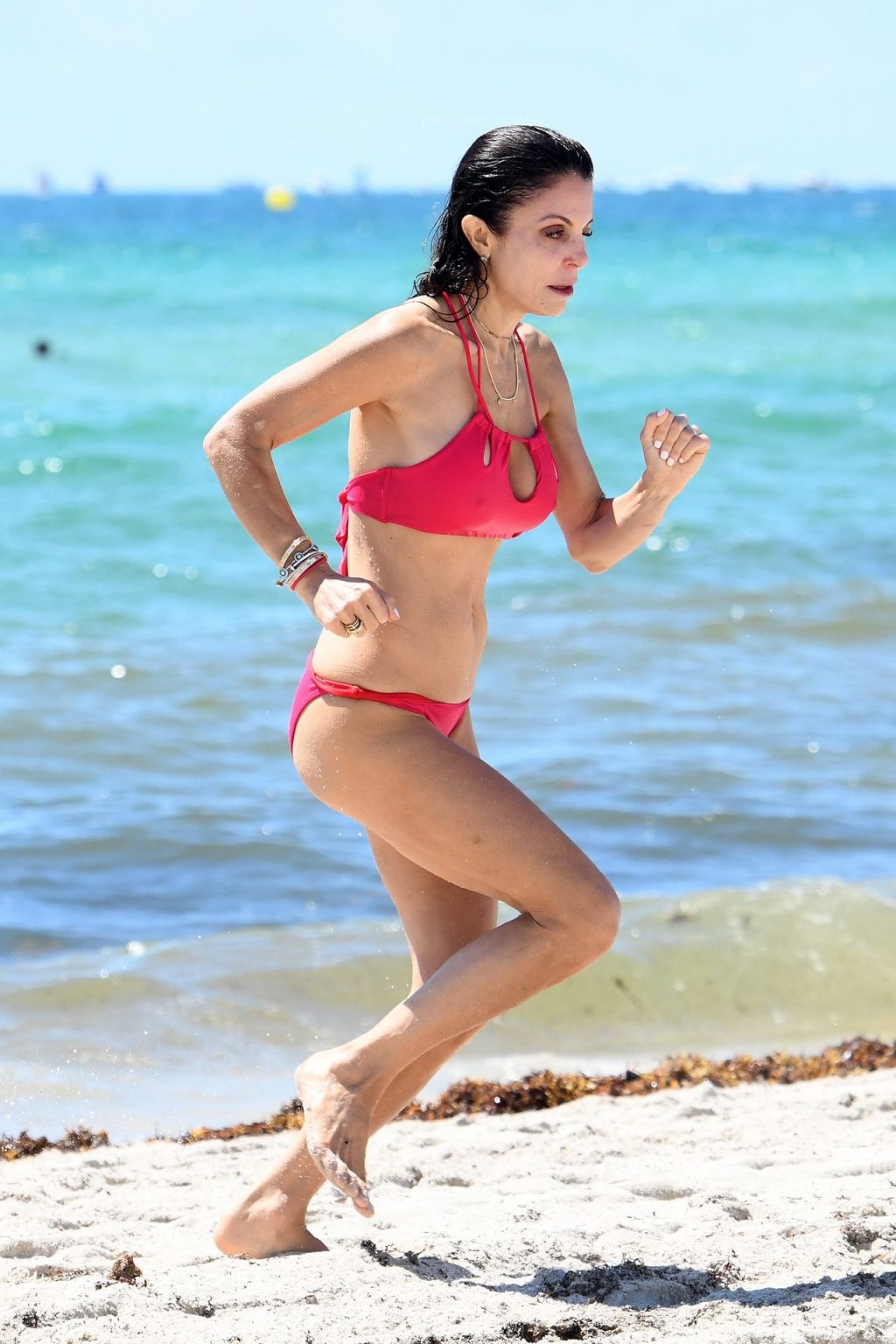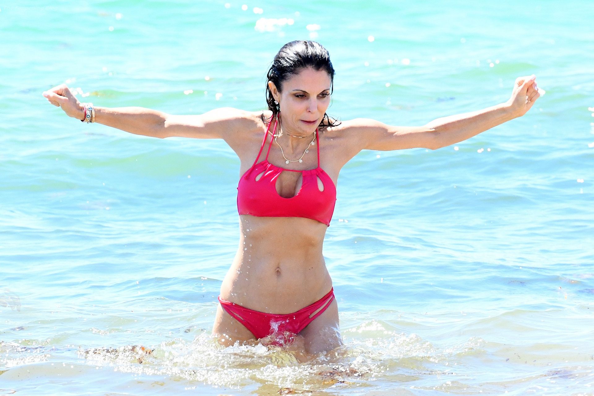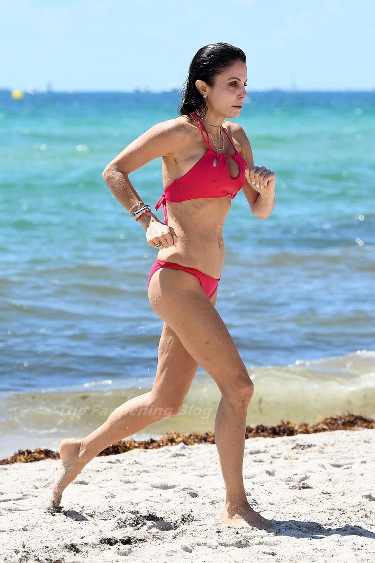 Imprenditrice, scrittrice e star della TV reality Bethenny Frankel indossa un bikini rosa acceso e il suo enorme anello di fidanzamento mentre si gode la spiaggia a Miami, 29/05/2021.
