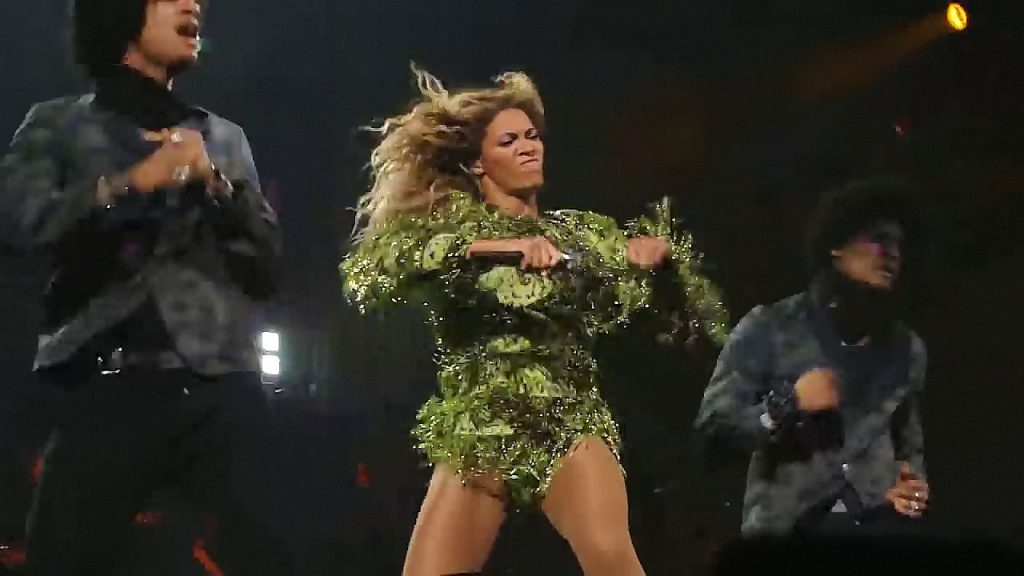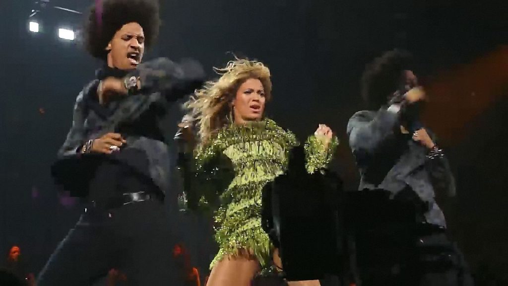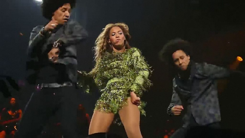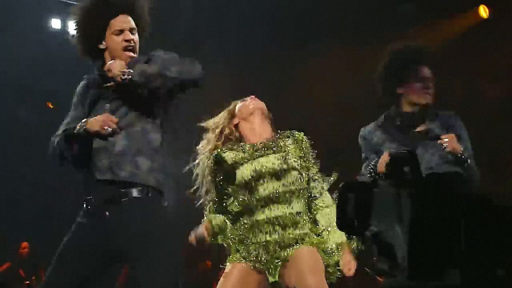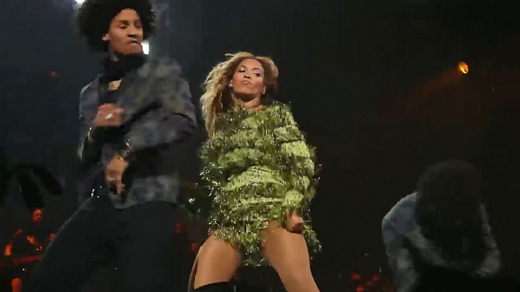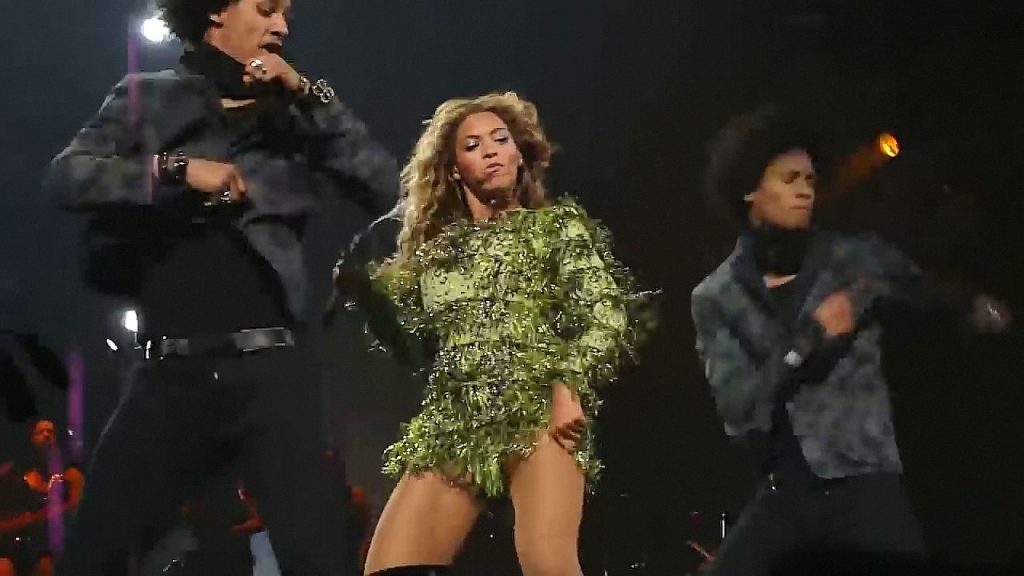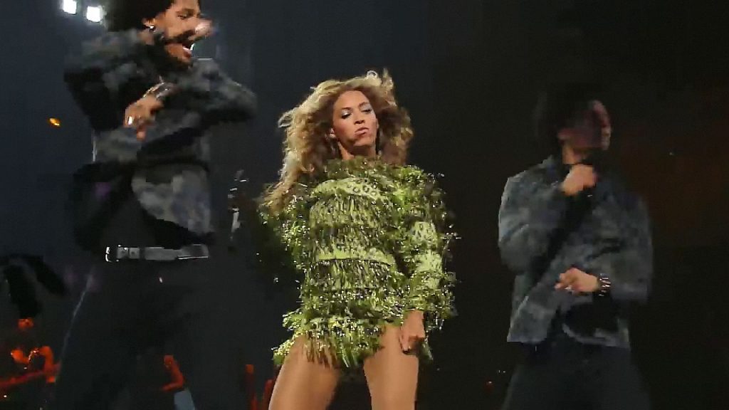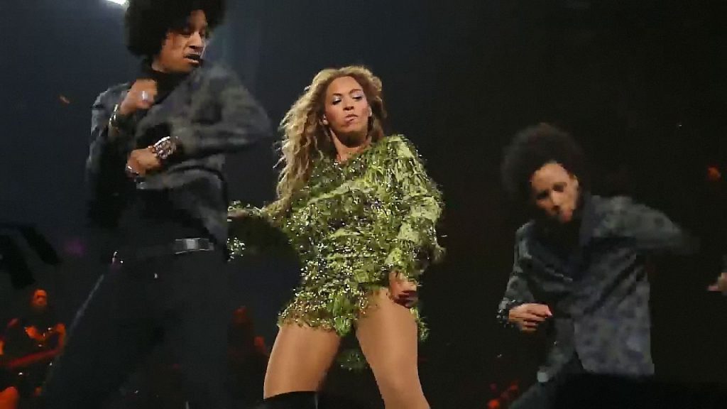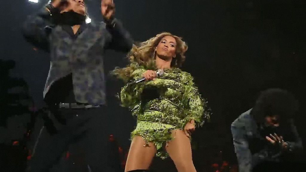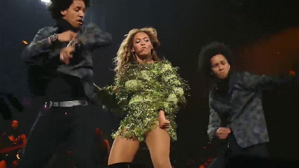 Ecco alcuni screenshot LQ dal video di Beyoncé al Mrs. Carter Show WT a New York, 23/07/2013. Forse hai visto mutandine verdi e le labbra della sua vagina durante la performance.