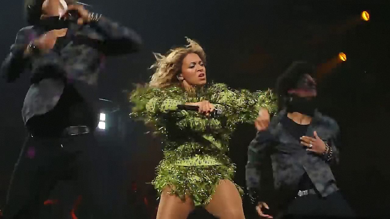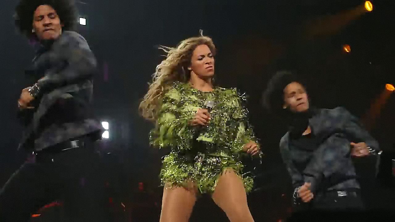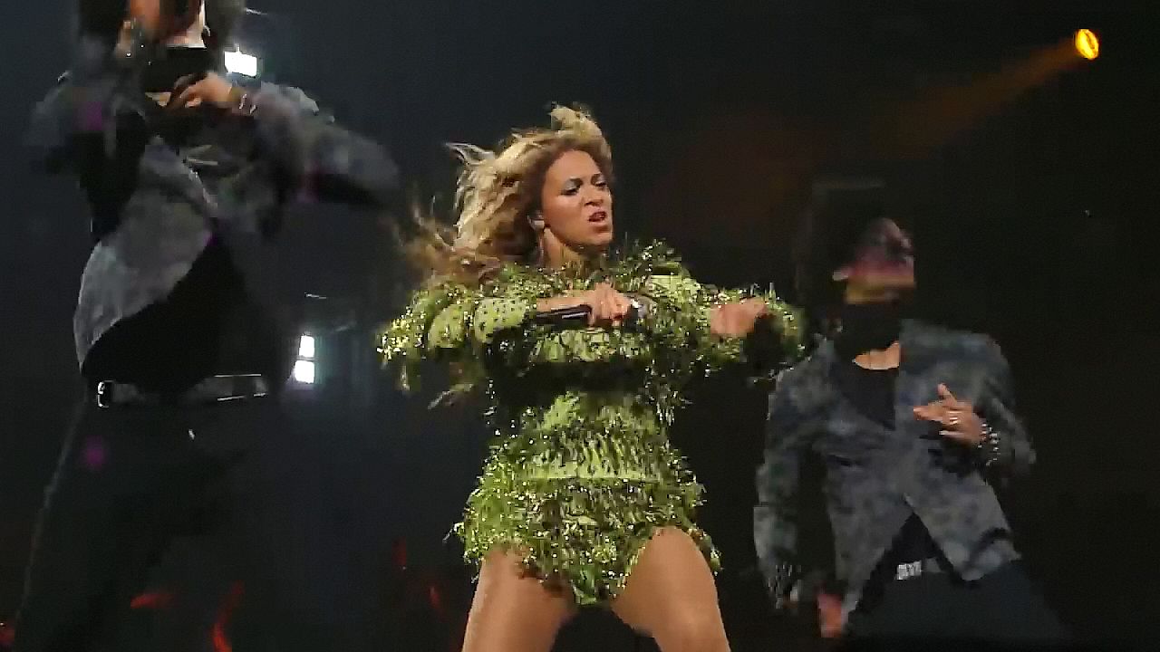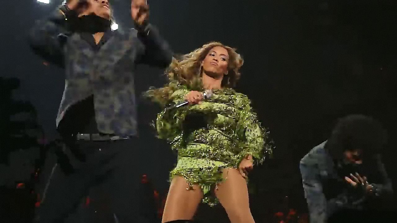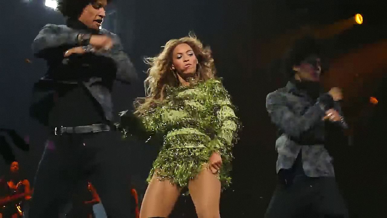 Ecco alcuni screenshot LQ dal video di Beyoncé al Mrs. Carter Show WT a New York, 23/07/2013. Forse hai visto mutandine verdi e le labbra della sua vagina durante la performance.