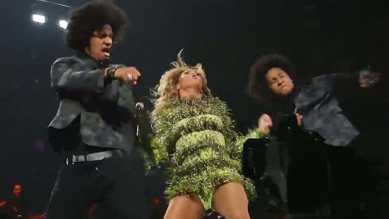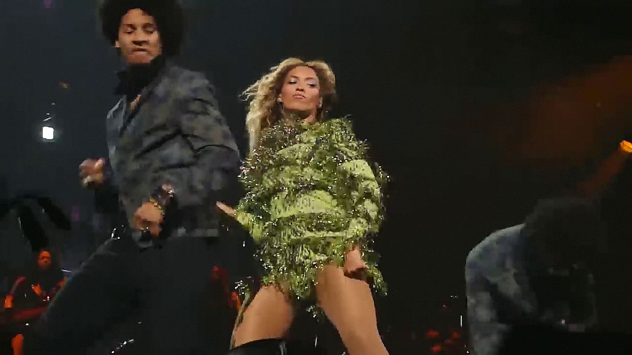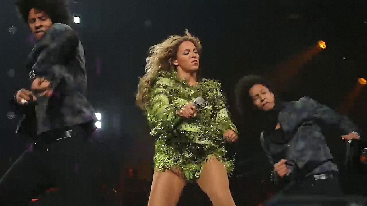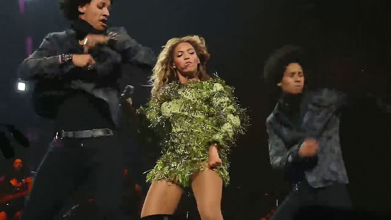 Ecco alcuni screenshot LQ dal video di Beyoncé al Mrs. Carter Show WT a New York, 23/07/2013. Forse hai visto mutandine verdi e le labbra della sua vagina durante la performance.