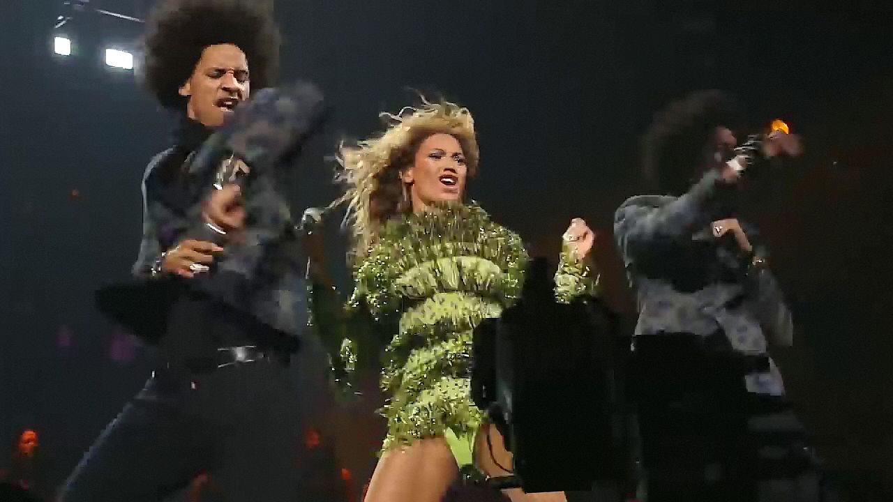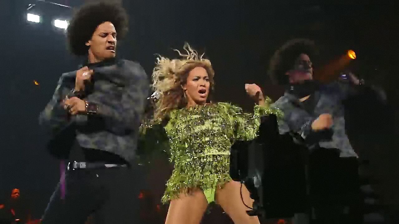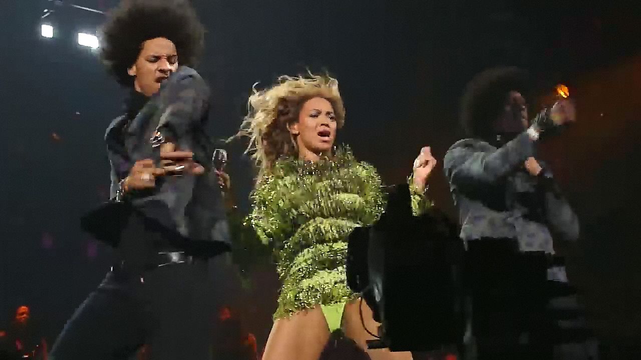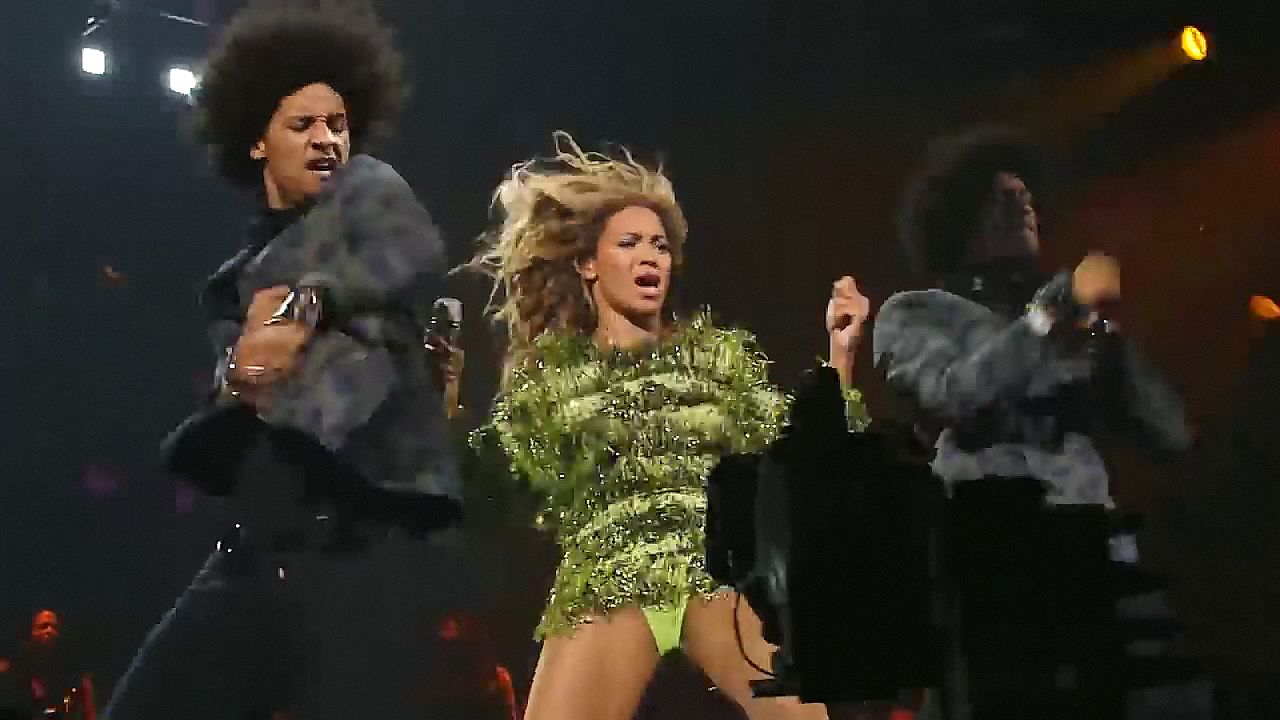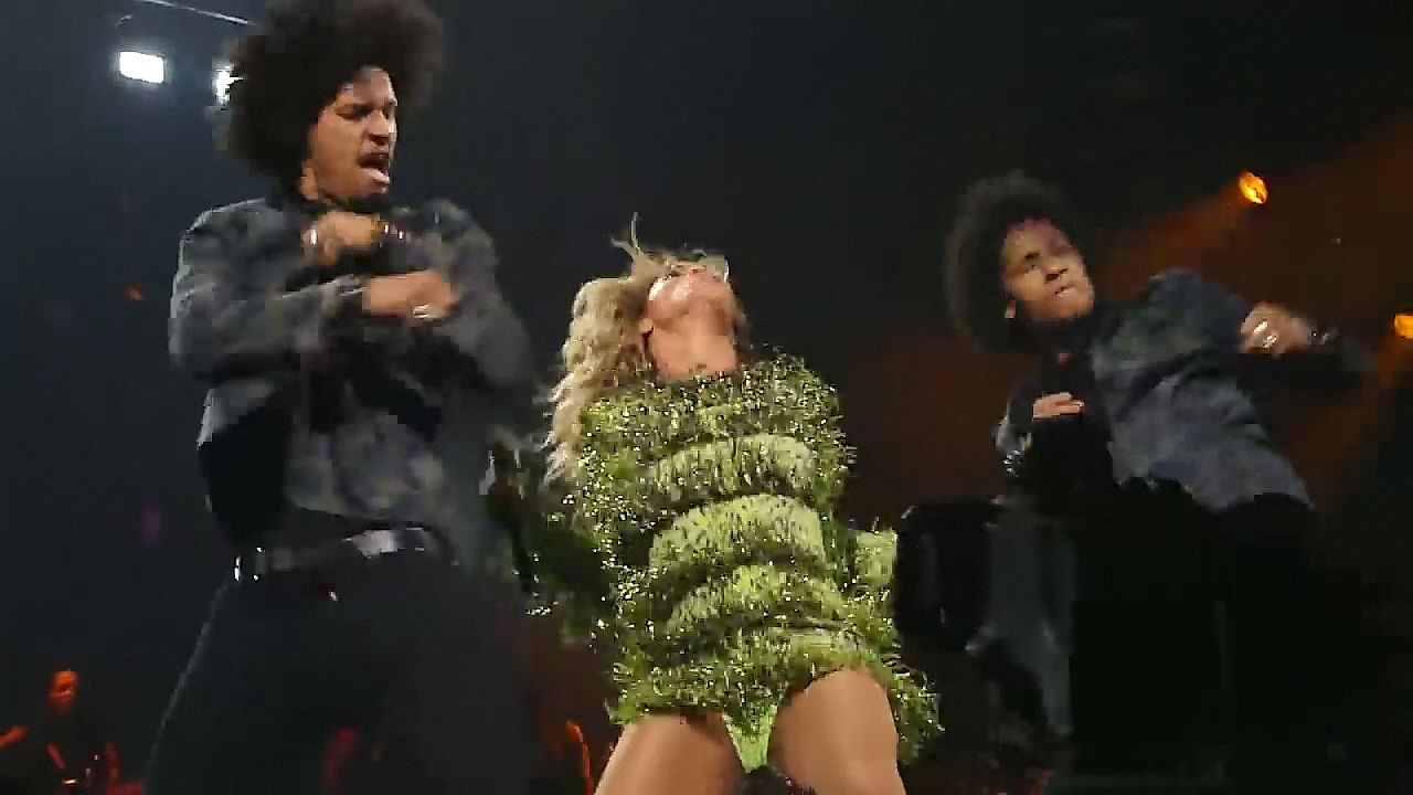 Ecco alcuni screenshot LQ dal video di Beyoncé al Mrs. Carter Show WT a New York, 23/07/2013. Forse hai visto mutandine verdi e le labbra della sua vagina durante la performance.