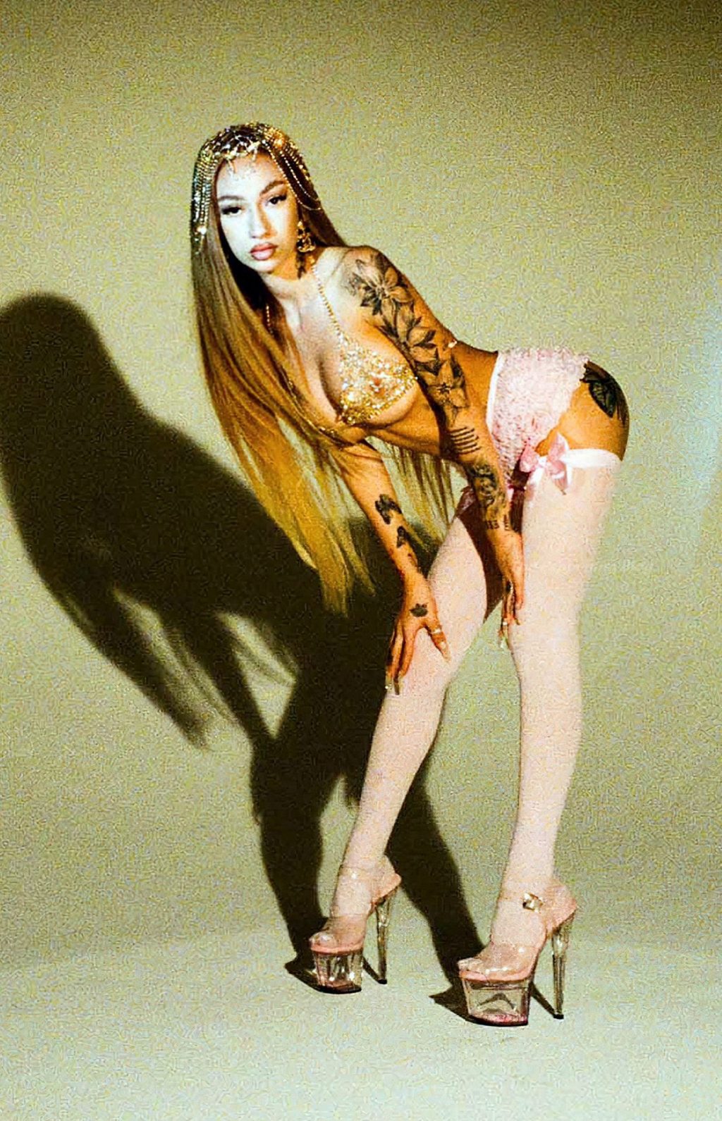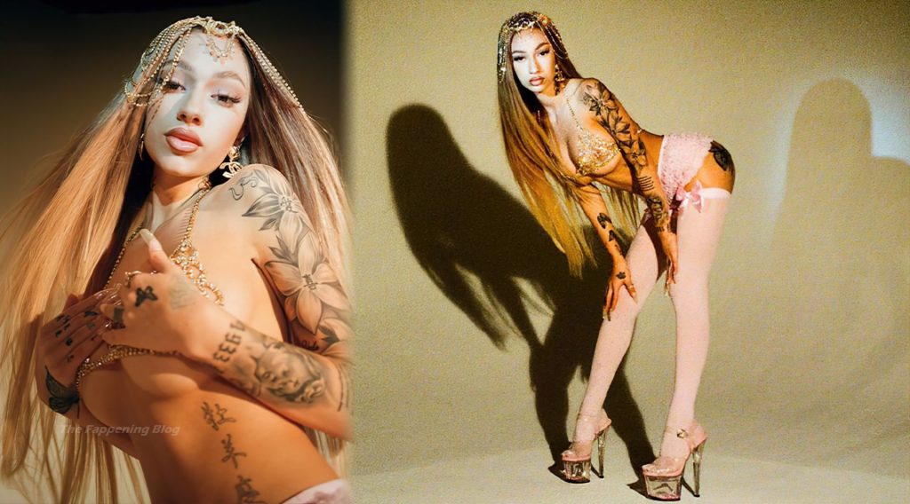 La star di OF Bhad Bhabie mostra il suo giovane corpo tatuato, grandi seni e capezzoli posando in lingerie e quasi nuda in un servizio fotografico di Carlos Darder per la rivista RAIN (agosto 2021).
