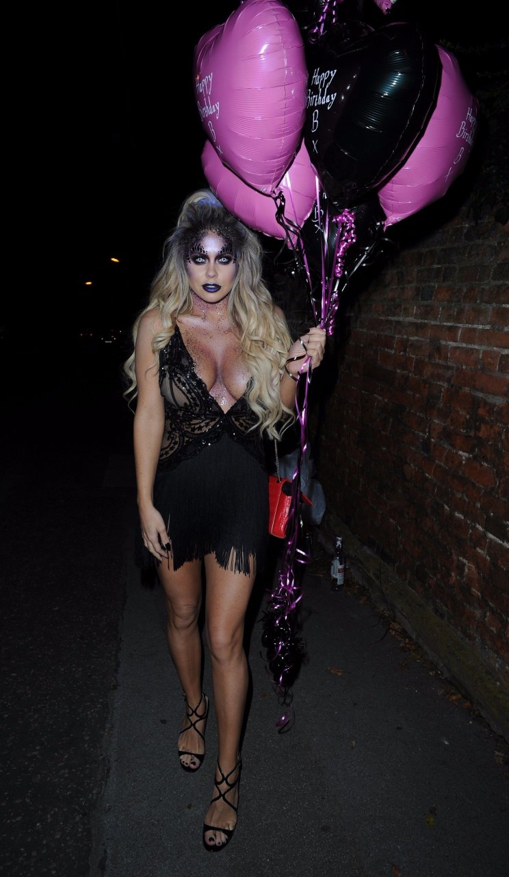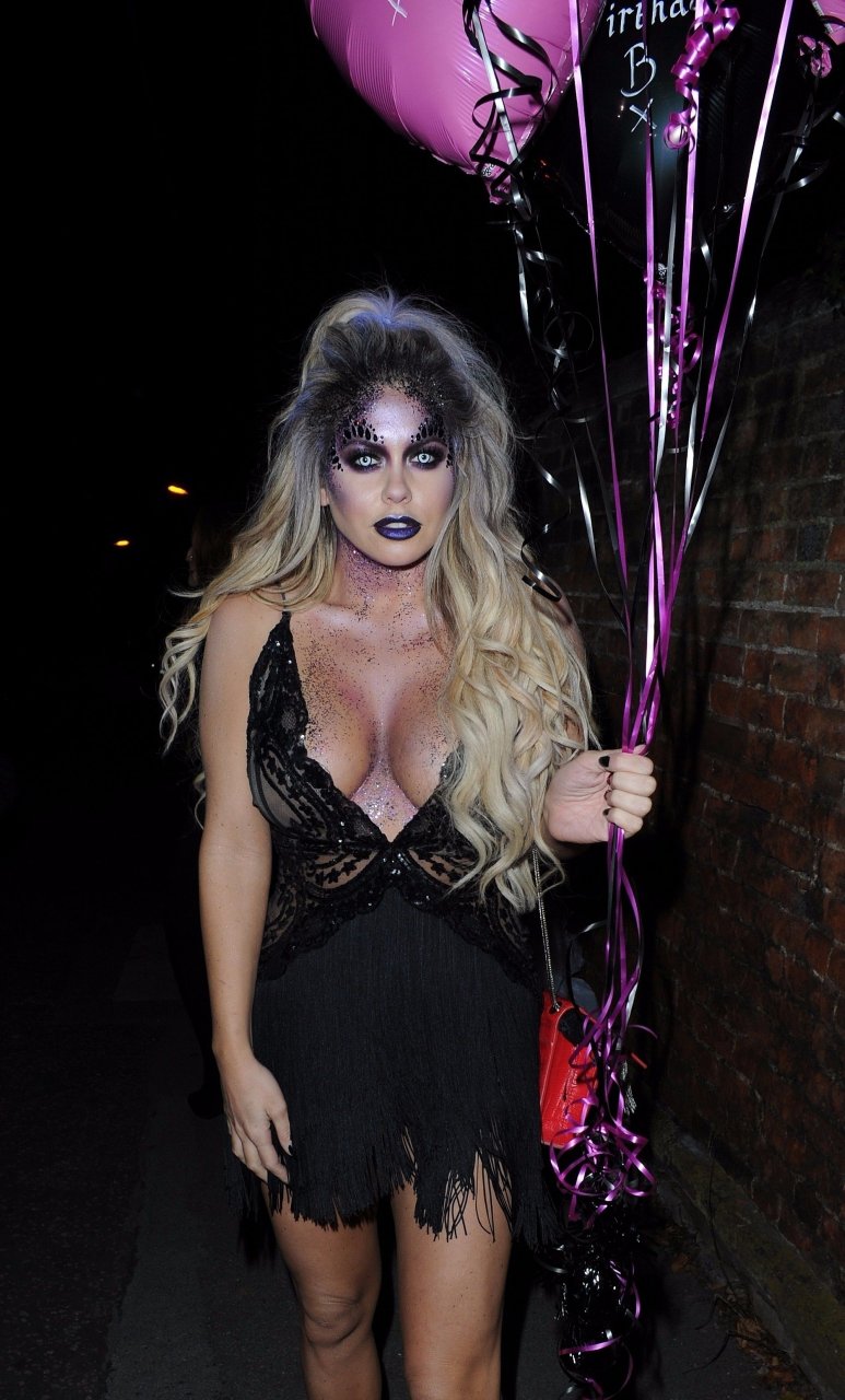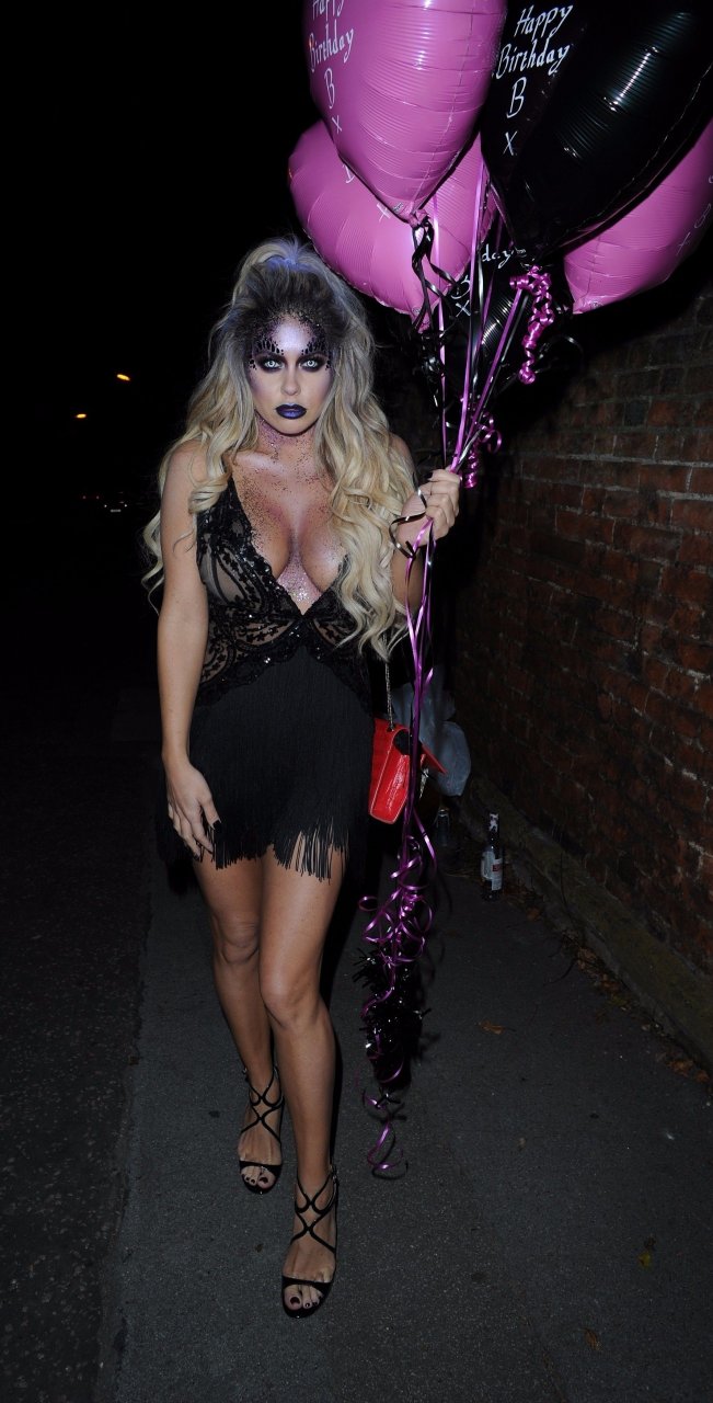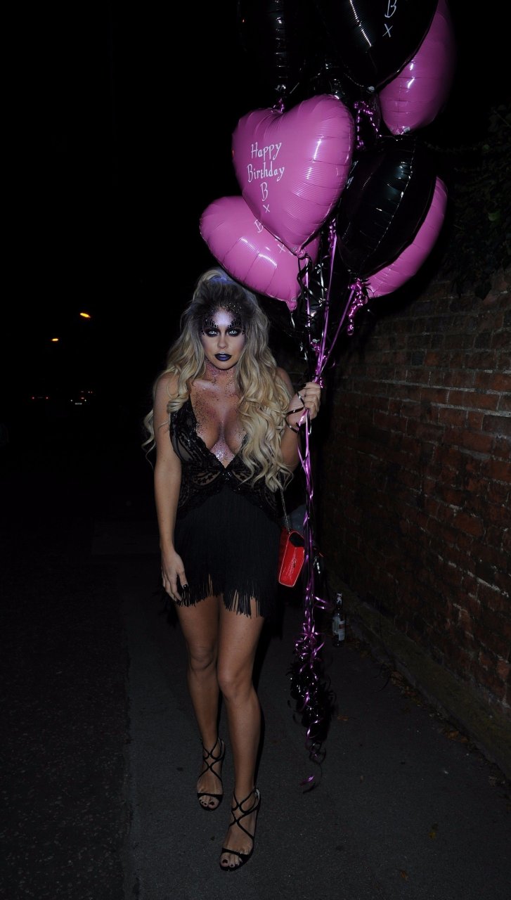 Bianca Gascoigne continua i festeggiamenti per il suo compleanno al ristorante Sheesh in Essex. Prolunga le celebrazioni di Halloween e del compleanno per un’altra notte mentre Sheesh ospita una serata di Halloween, 01/11/2017. Bianca Gascoigne è una modella britannica, star di Big Brother. Età – 31 anni.