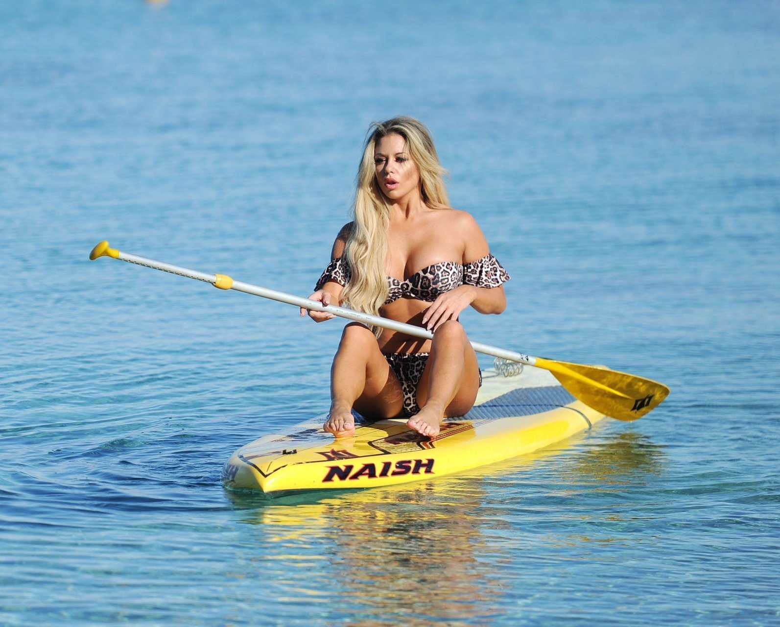 Bianca Gascoigne ritratta mentre mostra il suo corpo sexy in bikini con stampa animalier a Ibiza, 24/05/2017. Bianca Gascoigne è una modella britannica e ex star di Big Brother. Età – 30.