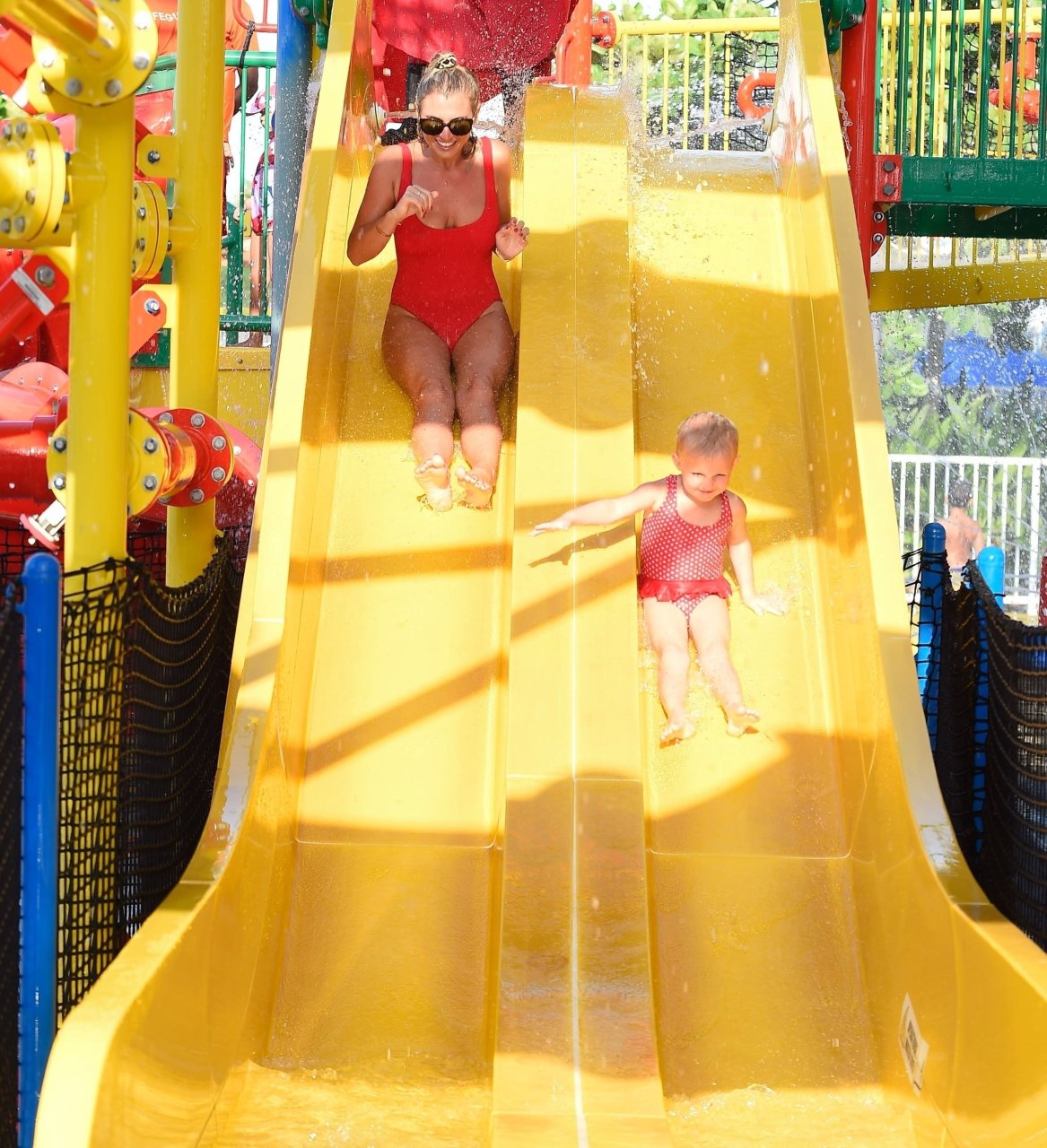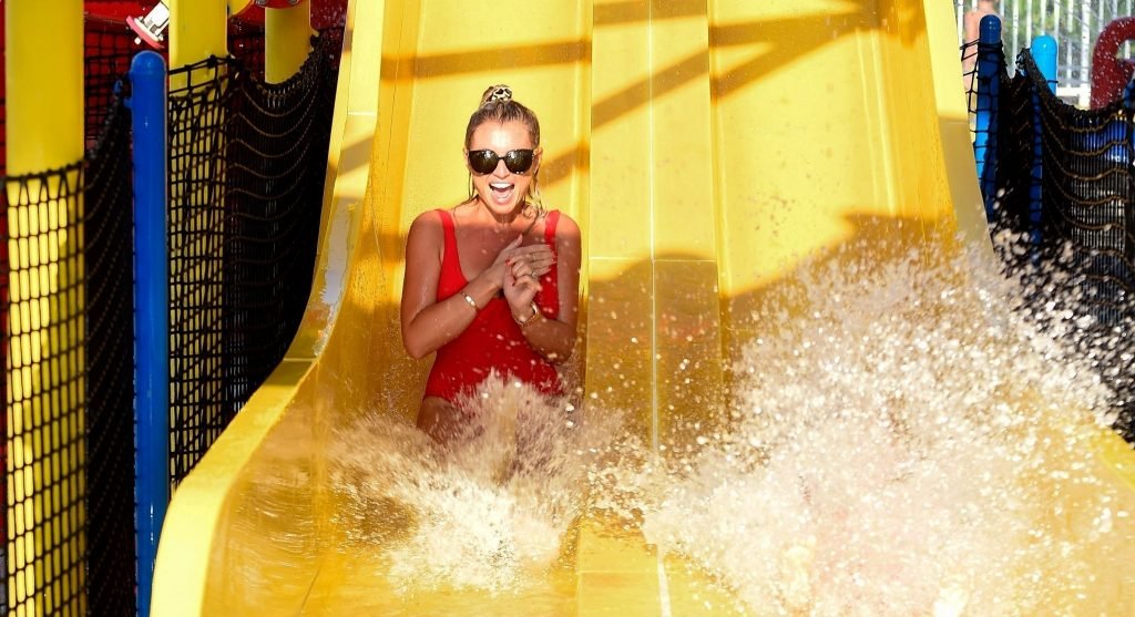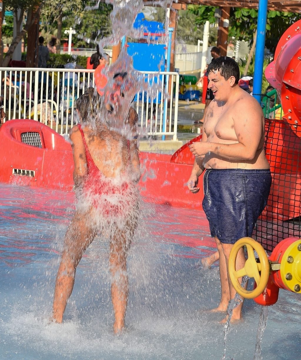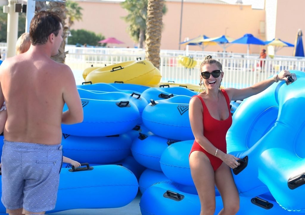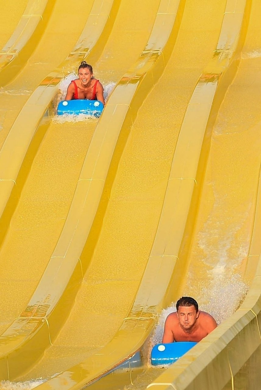 La star di TOWIE Billie Faiers si sta divertendo sotto il sole degli Emirati in un parco acquatico a Dubai con il suo partner Greg Shepherd, 11/02/2018. Billie apparirà nei nostri schermi nella nuova serie TV “The Mummy Diaries” con sua sorella Sam Faiers.