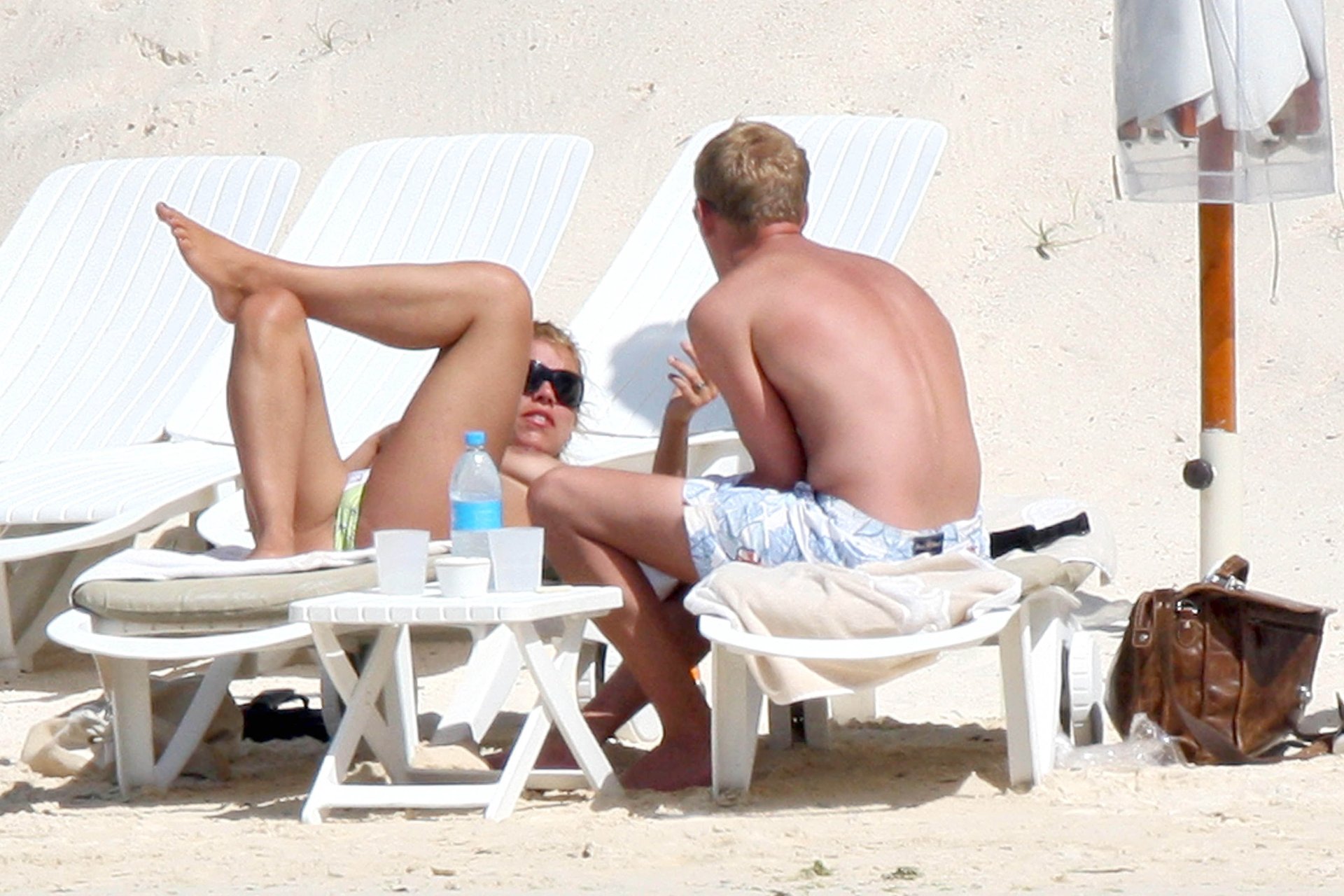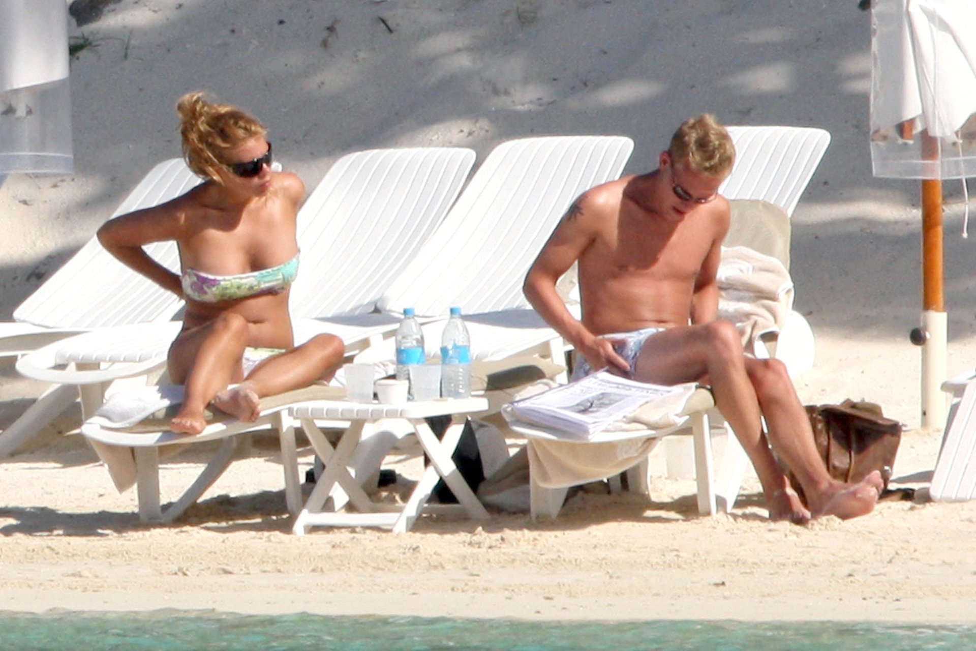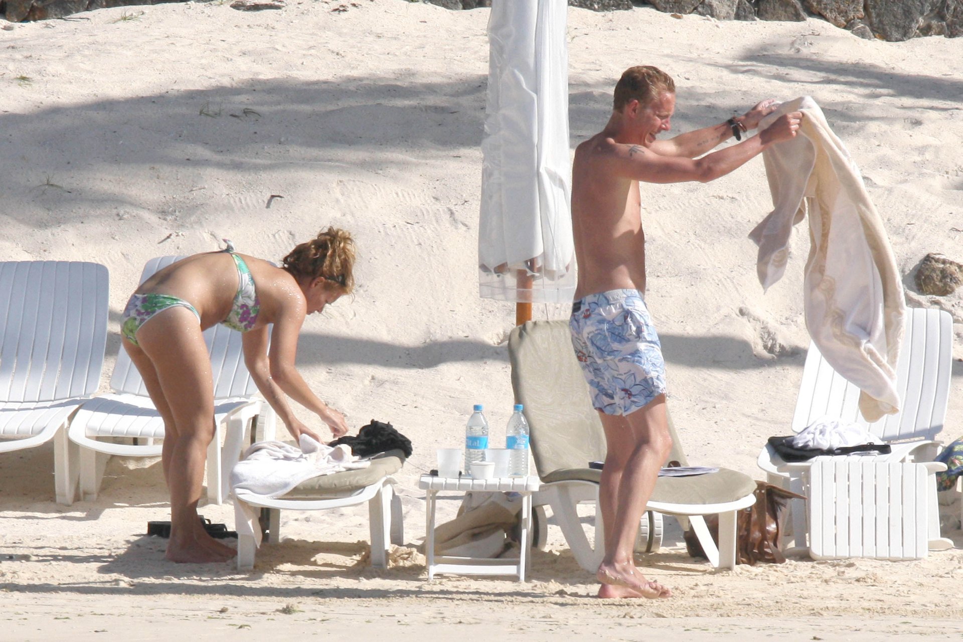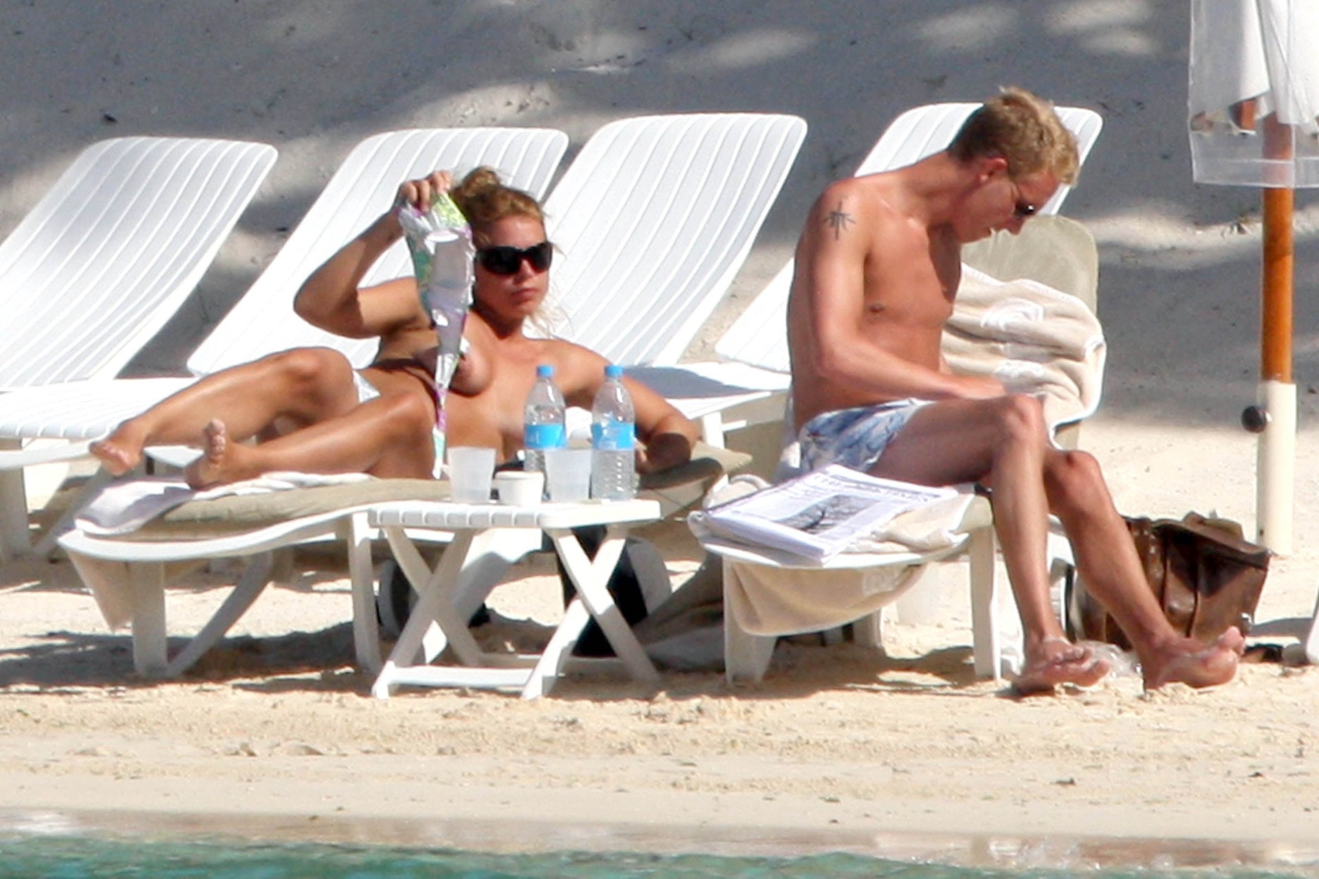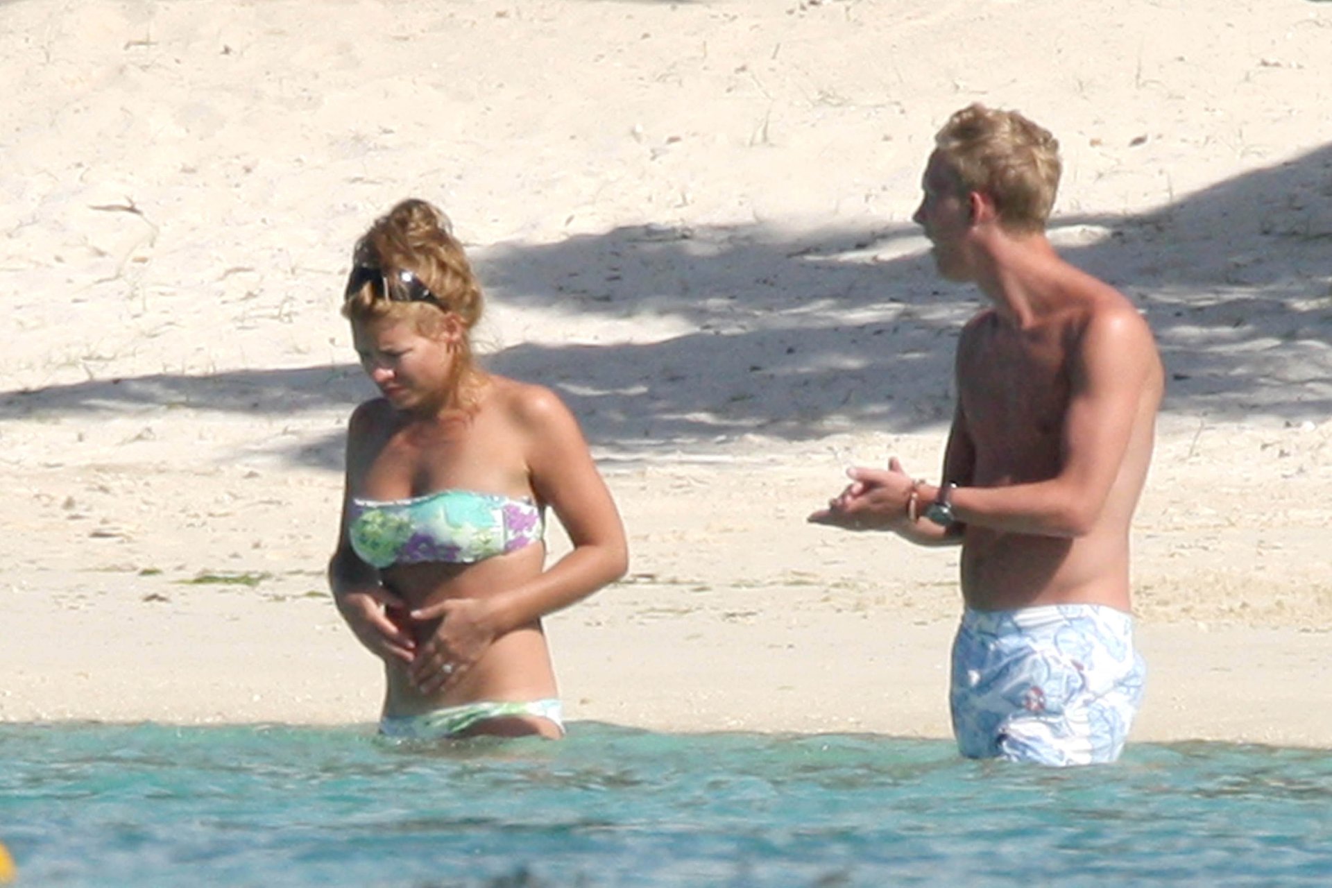 La cantante e attrice Billie Piper ha trascorso dolci momenti con Laurence Fox, 22/04/2008. Gli innamorati, che si sono sposati il 31 dicembre 2007, sembrano essere in luna di miele mentre sono inseparabili durante tutto il loro viaggio a Mauritius. Sulla spiaggia o mentre faceva il bagno, la voluttuosa Billie sembra molto attenta al suo ventre.
