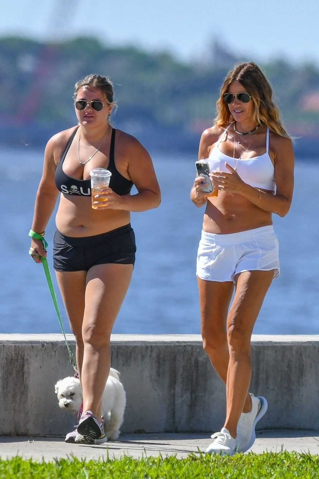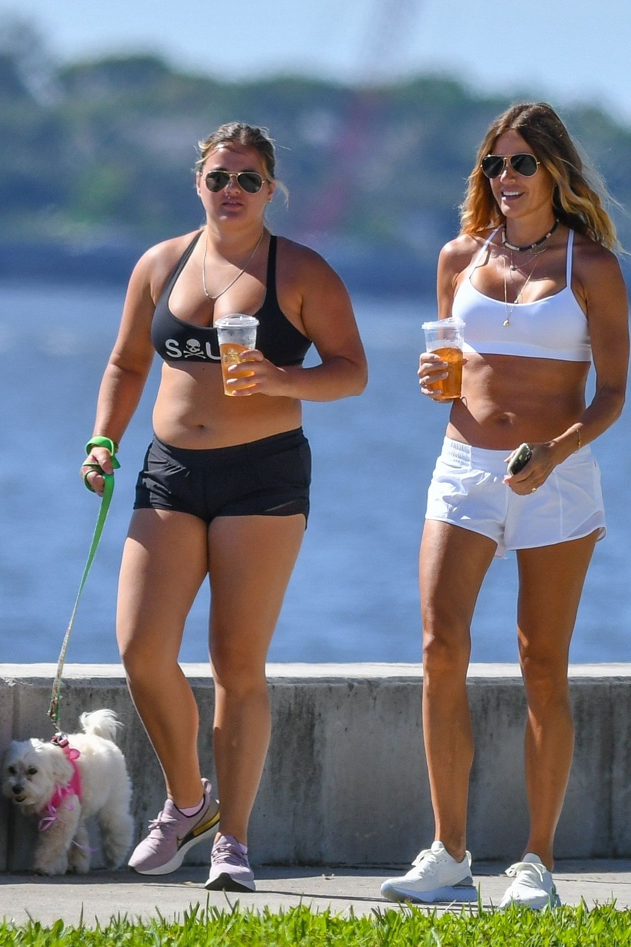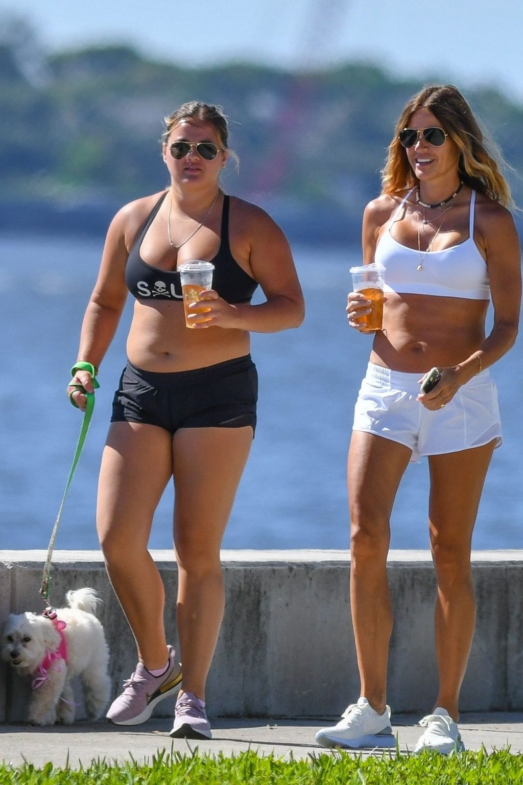 Kelly Bensimon fa una passeggiata in una splendida giornata in Florida con sua figlia durante il lockdown a Palm Beach, 01/05/2020. Oggi compie 52 anni!