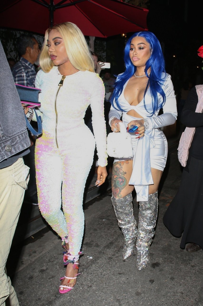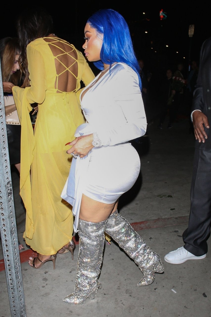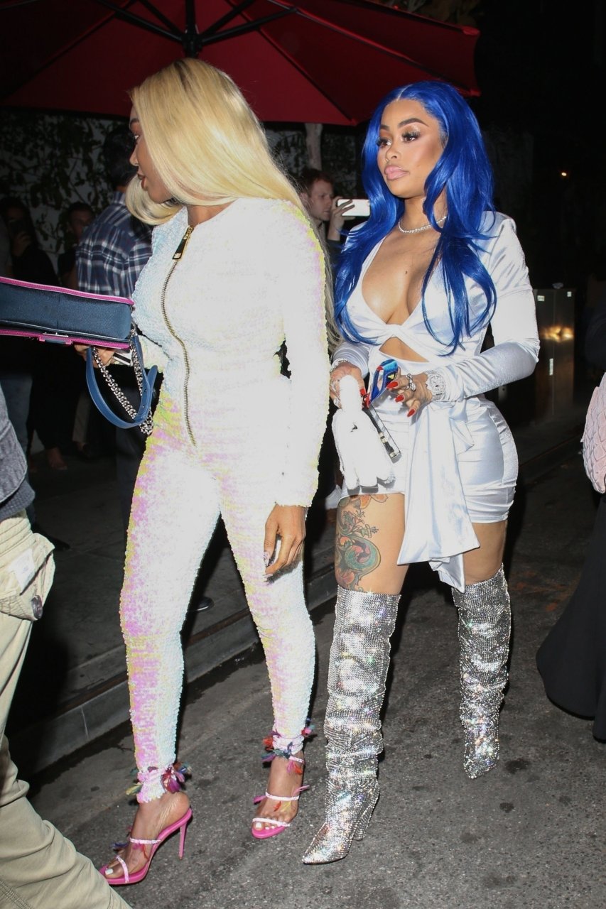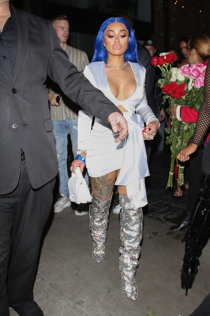 Blac Chyna sfoggia i suoi capelli blu per una serata in città. È difficile non notarla con una tuta lucida e stivali mentre si dirige verso il locale alla moda di Hollywood con un uomo misterioso. La modella di 30 anni mette in mostra le sue curve mentre sale su una Rolls Royce rosa con l’uomo misterioso seduto sul sedile anteriore.