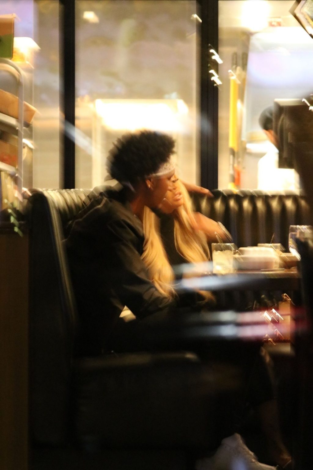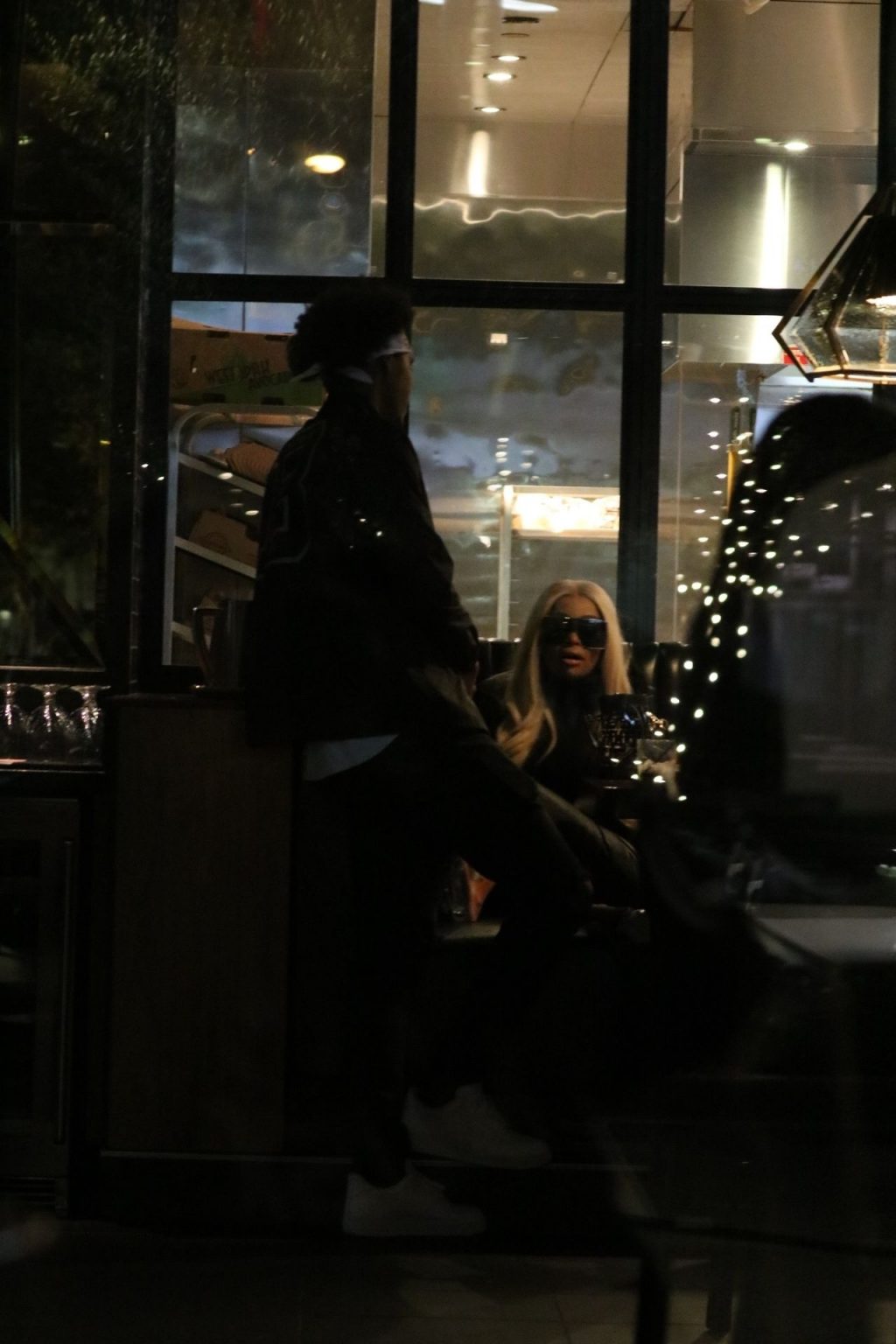 L’accompagnatore di Chyna ha passato ben cinque minuti a coccolare i suoi piedi dopo aver terminato il pasto al ristorante Joeys a Woodland Hills, 23/09/2019. La coppia ha lasciato il ristorante insieme e l’accompagnatore di Chyna si è assicurato di portare la sua “doggy bag” e di aprirle la portiera del passeggero.