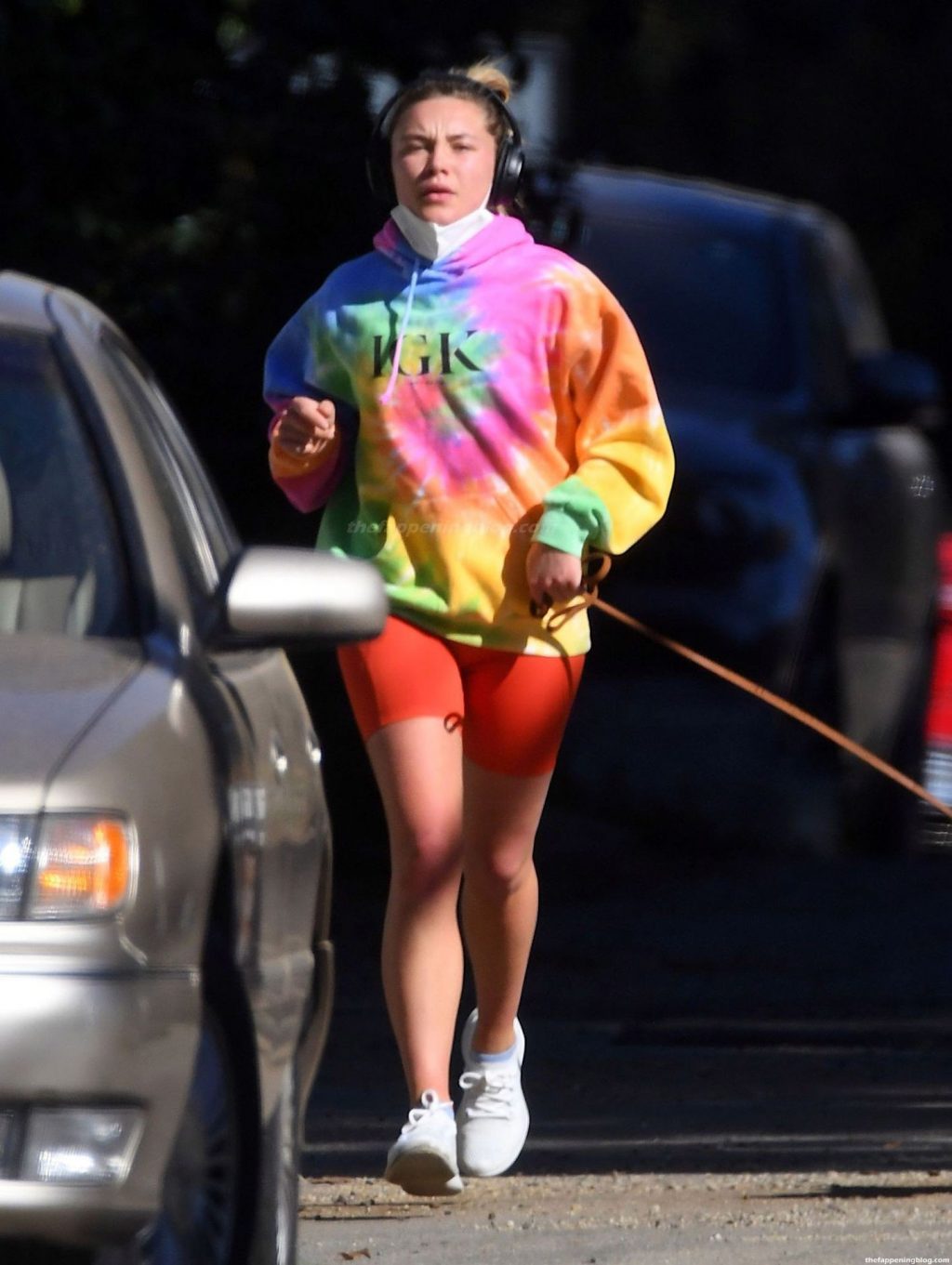 I thought that Florence Pugh, since she is short, had no unique legs! But, as it shows, I was wrong! She has quite a nice pair of legs on her, and I am surprised that I hadn’t seen it earlier! Some paparazzi spotted her in LA on Wednesday as she took a jog with her dog.