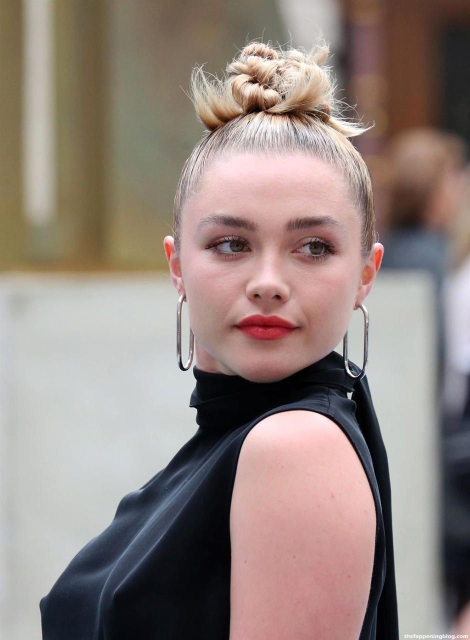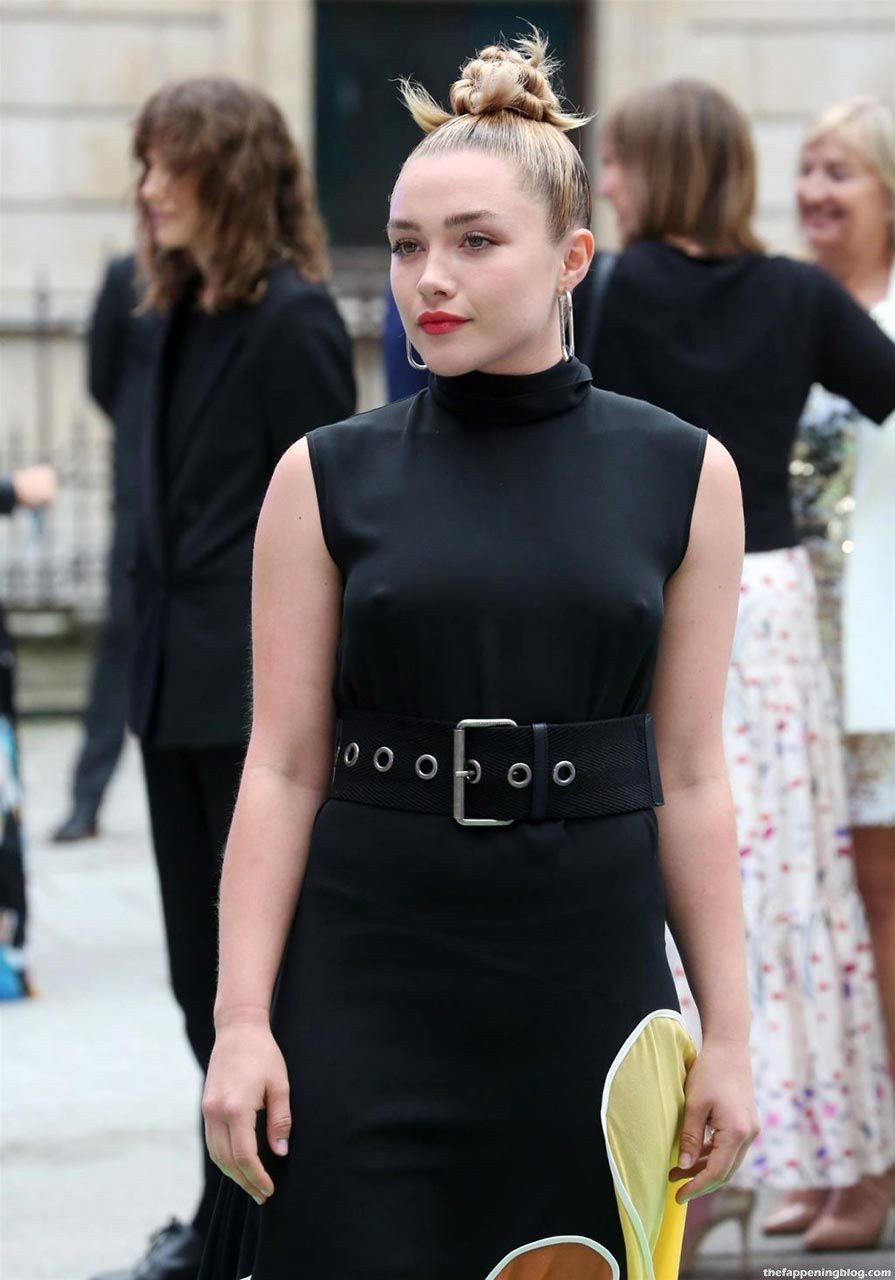 Pugh wore a black dress with a turtle neck. But her too-hard nipples made her one of the sexiest women at the event! Her hair was in a bun, and her rounded face was beautiful. Of course, we care just about Pugh’s no bra appearance, so be free to zoom in on the pictures and jerk for Florence! Then we have many of Pugh’s sexy and braless appearances from the red carpet she made last year. I hope she will have some wardrobe malfunction cause these nipples want to go out!