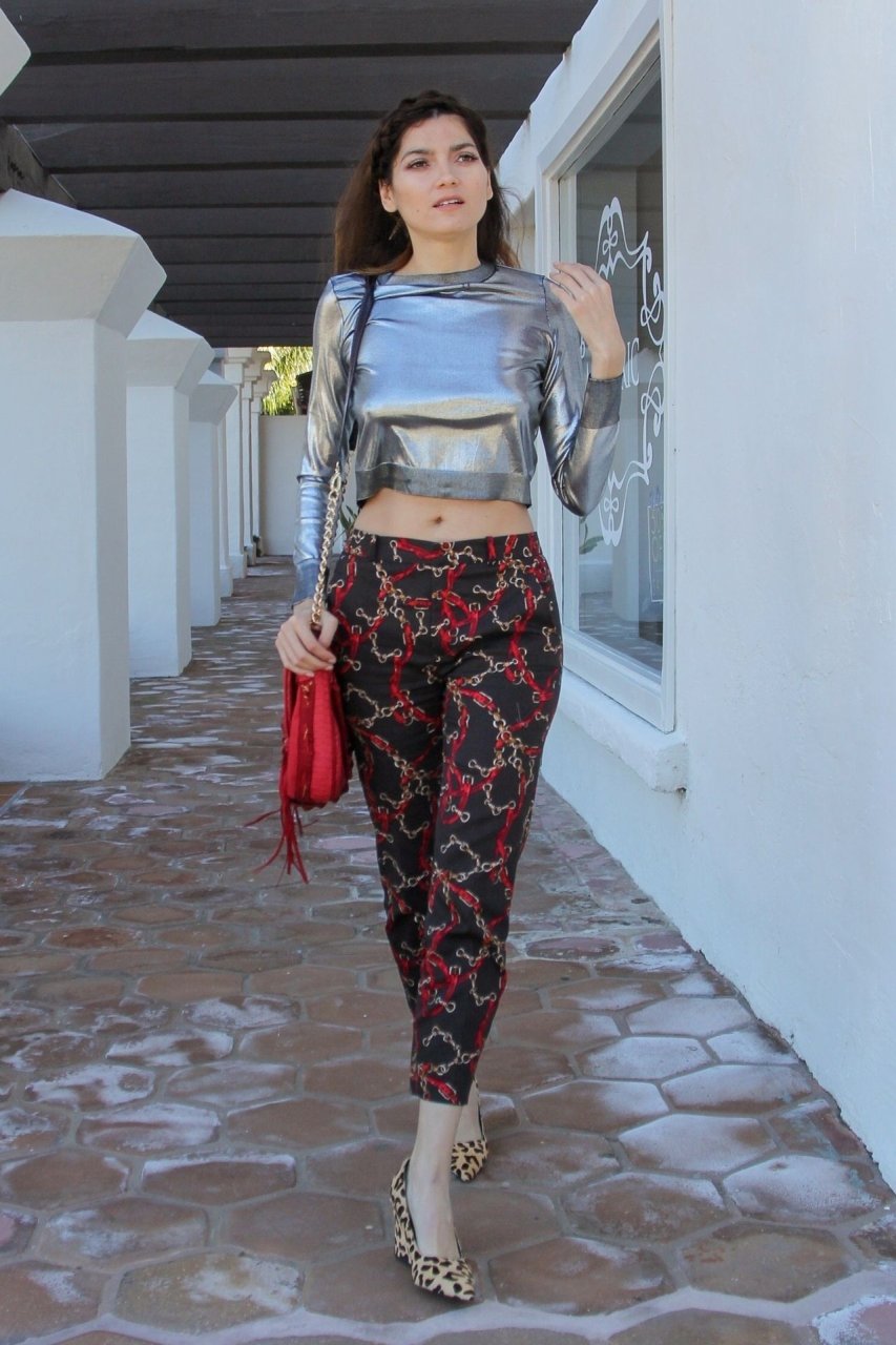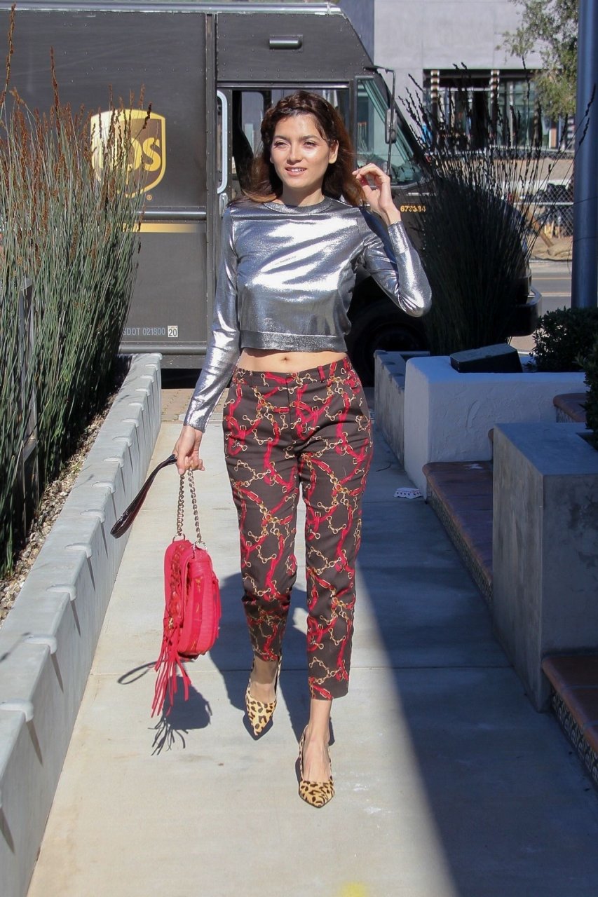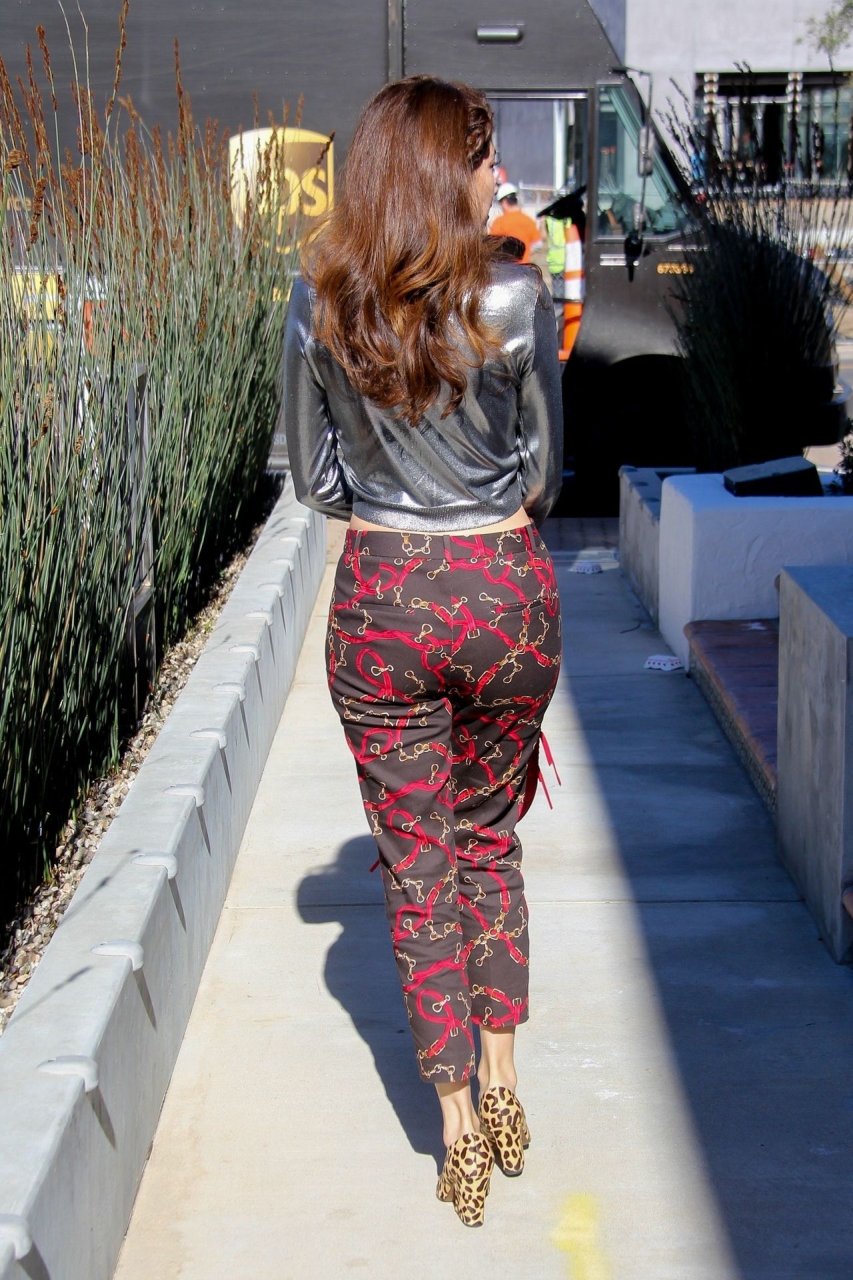 Blanca Blanco senza reggiseno indossa un top corto argento rivelatore durante una passeggiata per vetrine a Malibu, 23/01/2019. L’attrice sfila con tacchi animalier, pantaloni multicolore e un top corto in una giornata fresca a Los Angeles.
