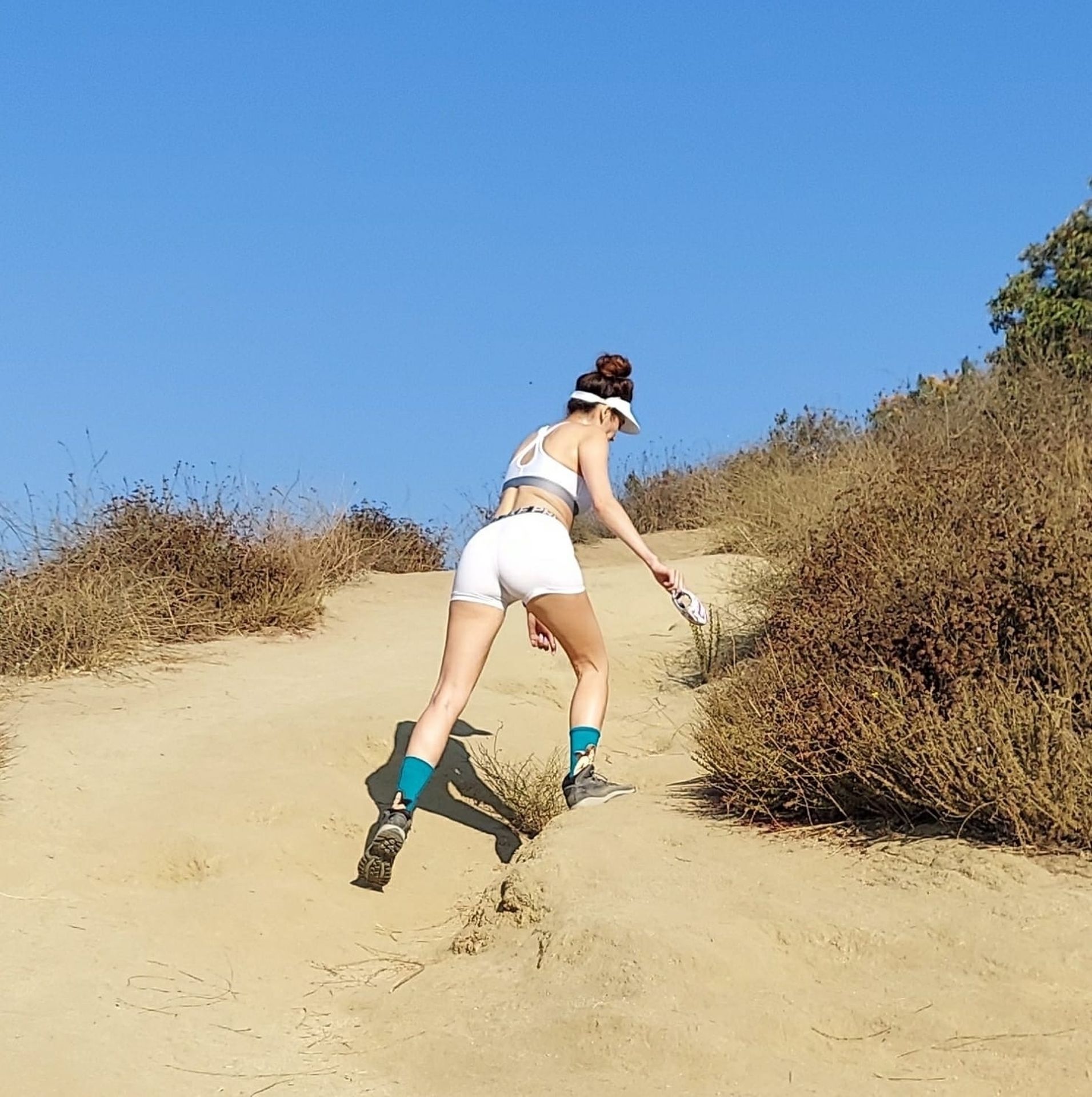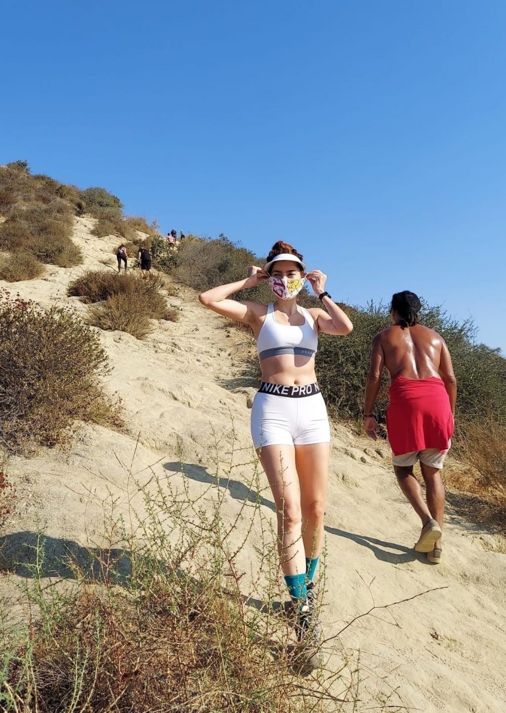 L’attrice Blanca Blanco va a fare escursioni nelle Hollywood Hills indossando un completo athleisure Nike, 25/09/2020.