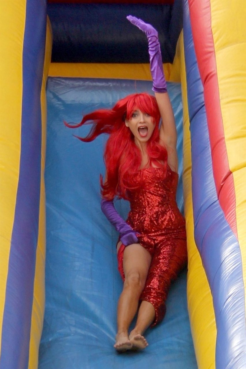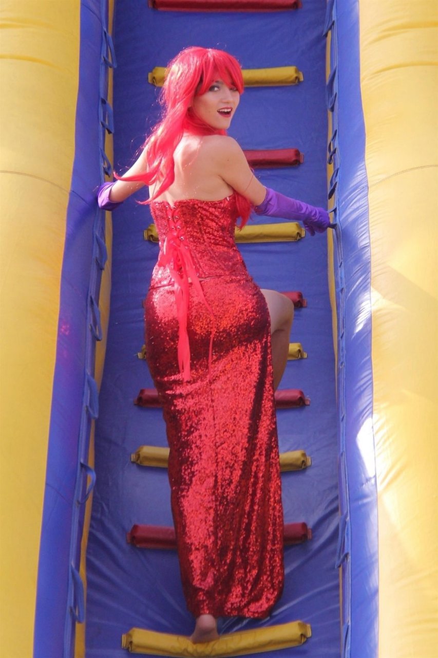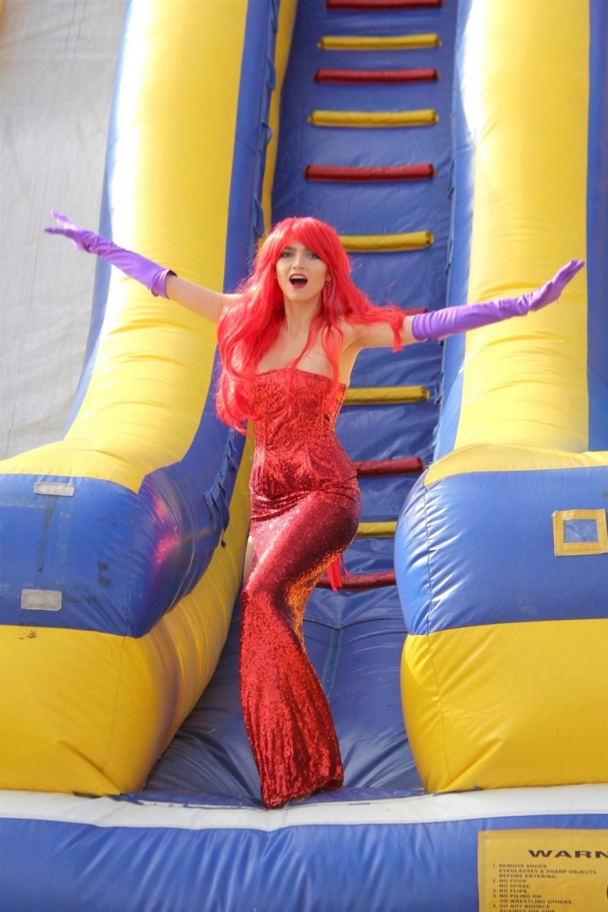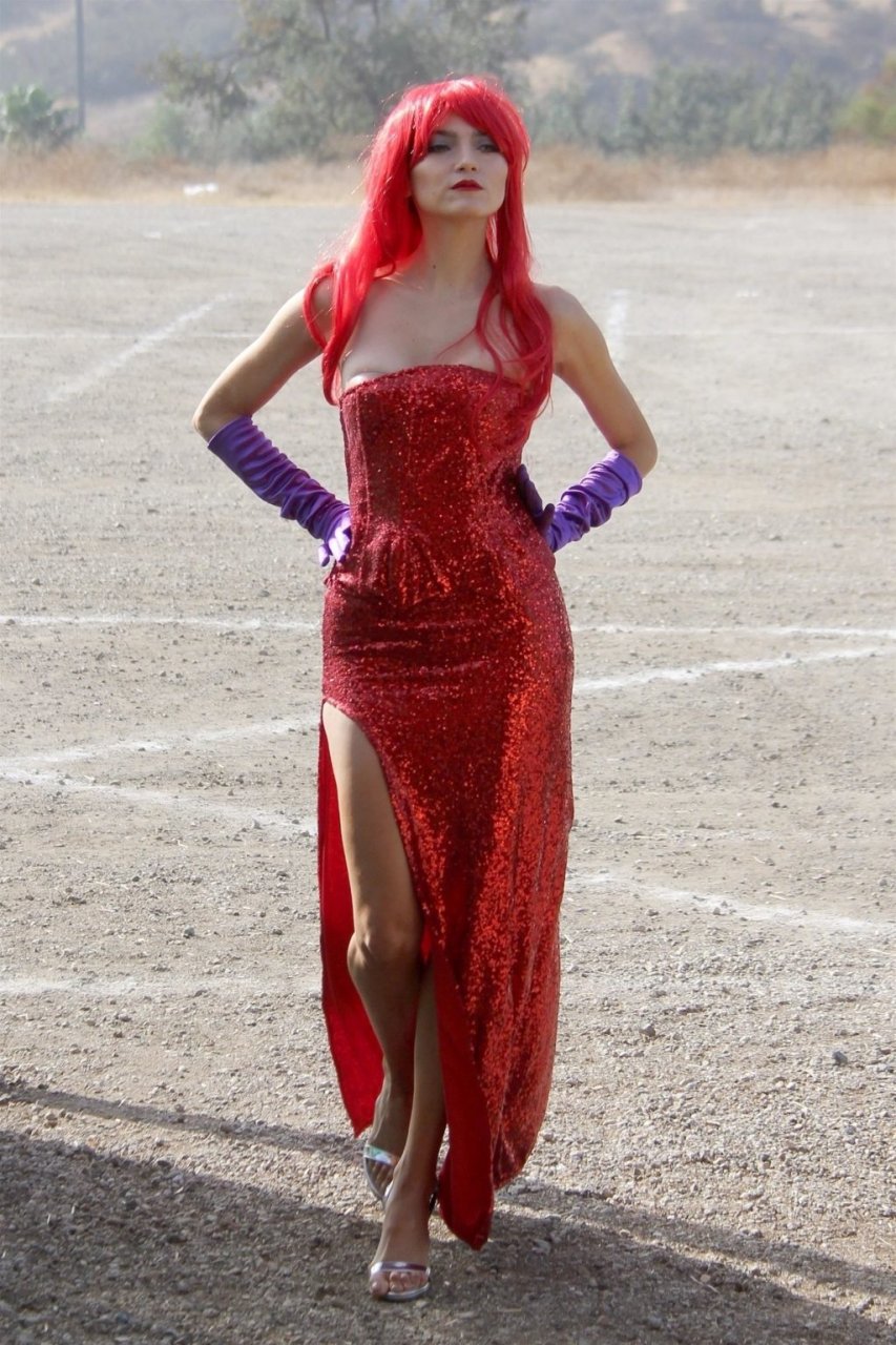 L’attrice Blanca Blanco sfoggia un look sexy dirigendosi verso un campo di zucche a Los Angeles vestita da Jessica Rabbit con un lungo abito rosso e capelli rossi abbinati, 22/10/2018. Blanca si diverte a scegliere una zucca e a godersi un po’ di tempo sullo scivolo elastico.