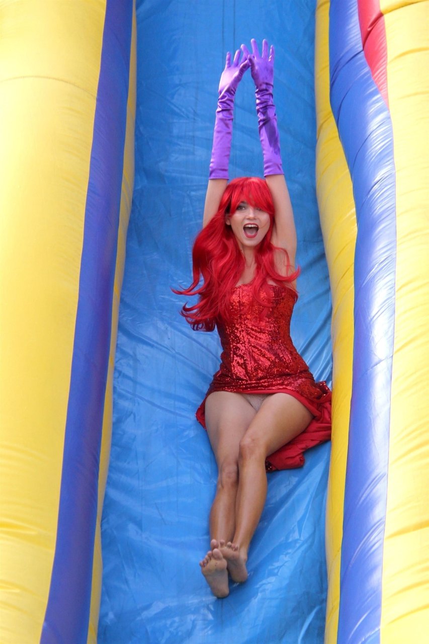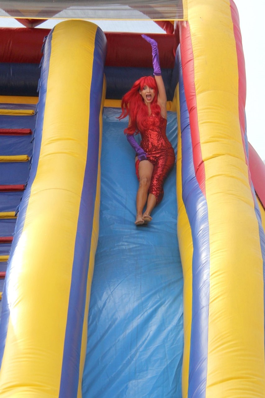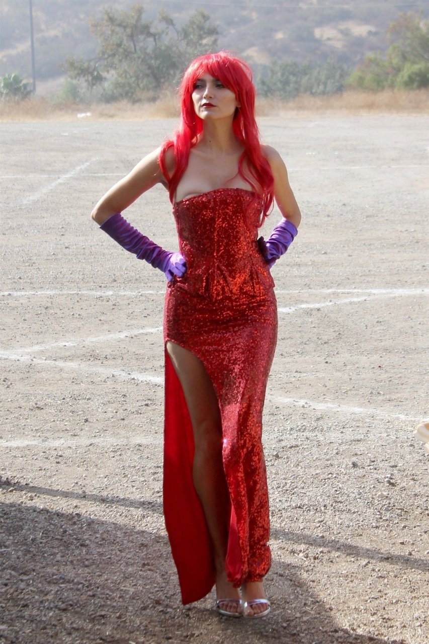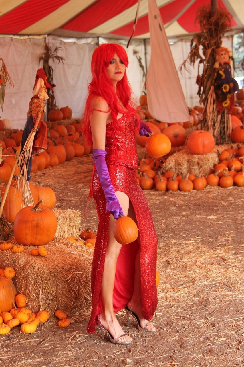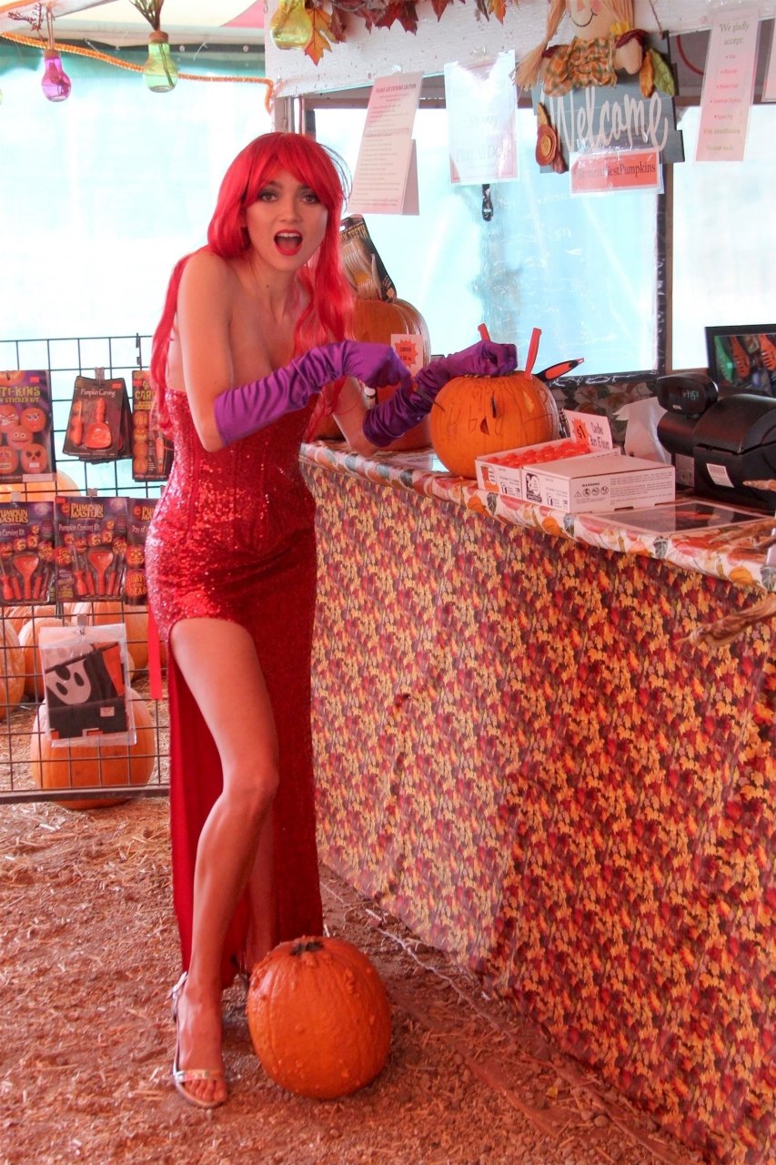 L’attrice Blanca Blanco sfoggia un look sexy dirigendosi verso un campo di zucche a Los Angeles vestita da Jessica Rabbit con un lungo abito rosso e capelli rossi abbinati, 22/10/2018. Blanca si diverte a scegliere una zucca e a godersi un po’ di tempo sullo scivolo elastico.