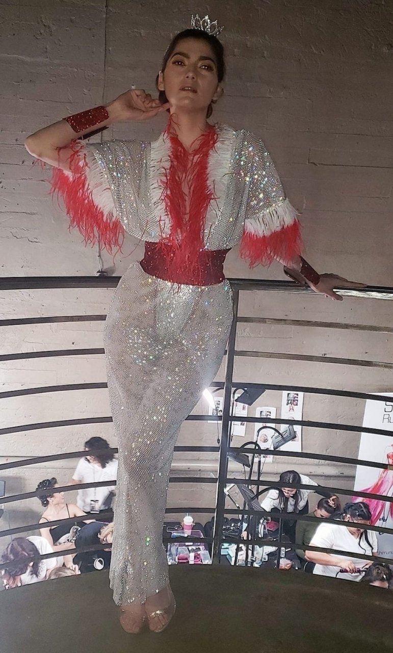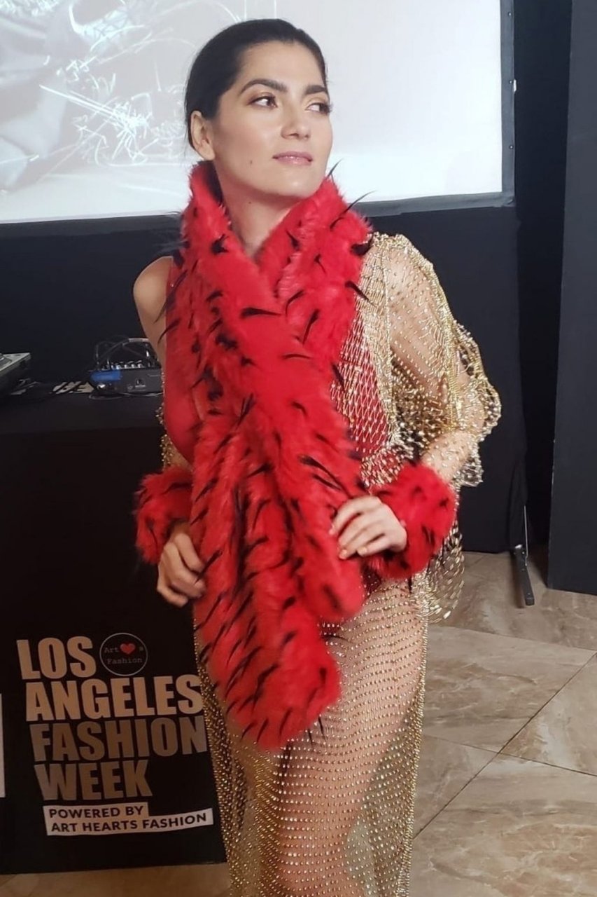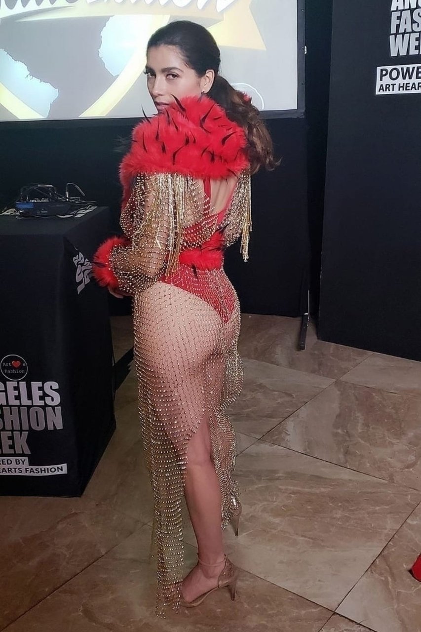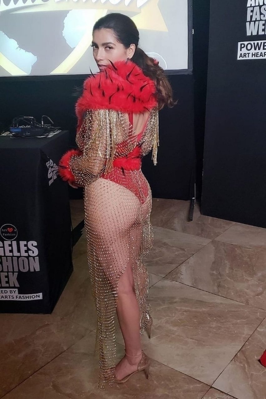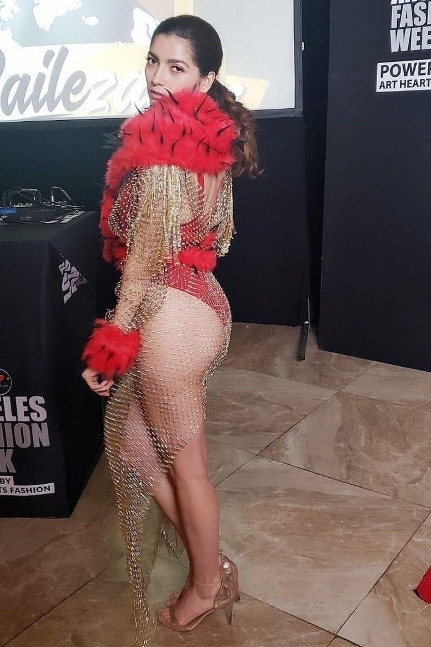 Attrice Blanca Blanco posa in lingerie trasparente alla sfilata di moda di Los Angeles, 24/03/2019.