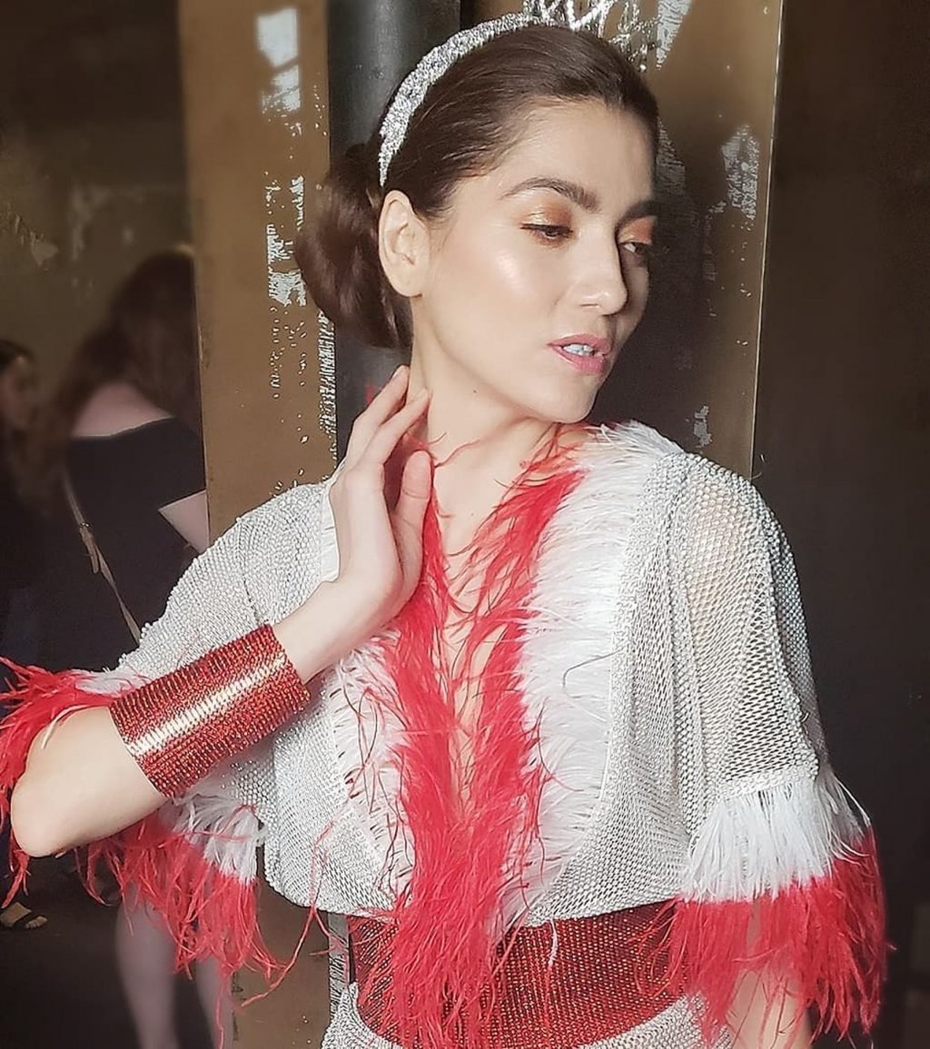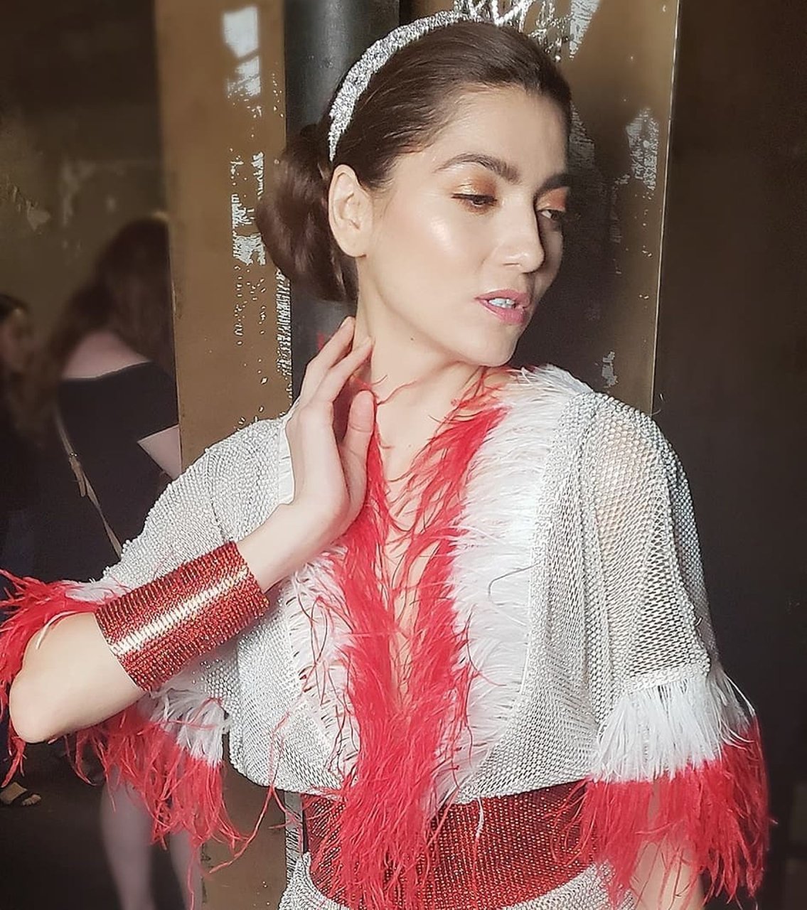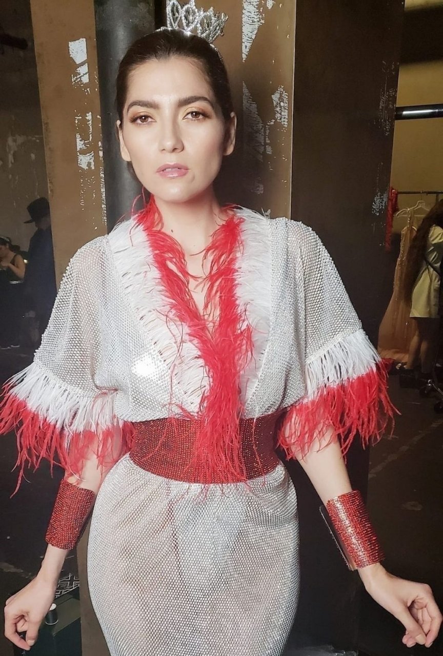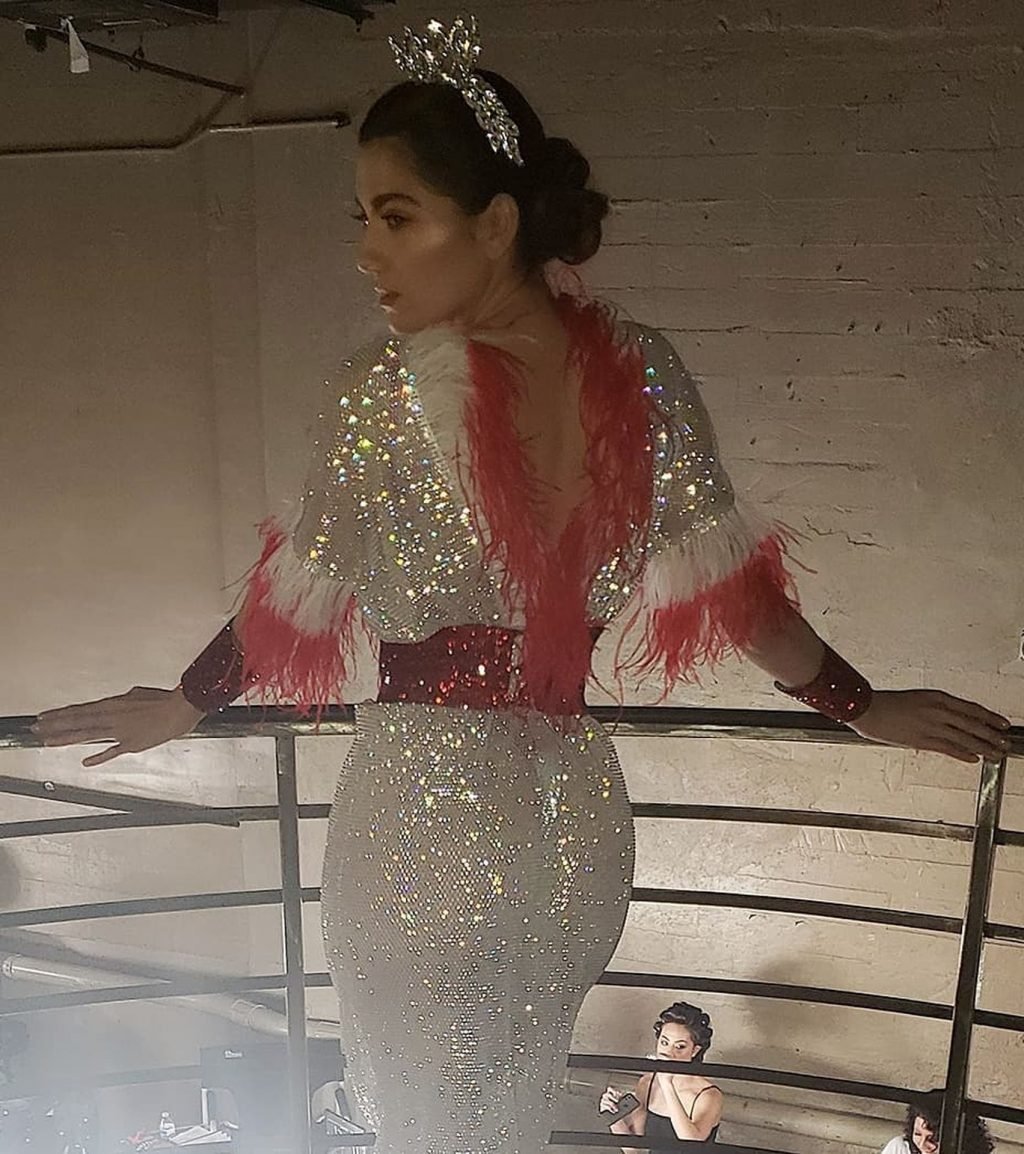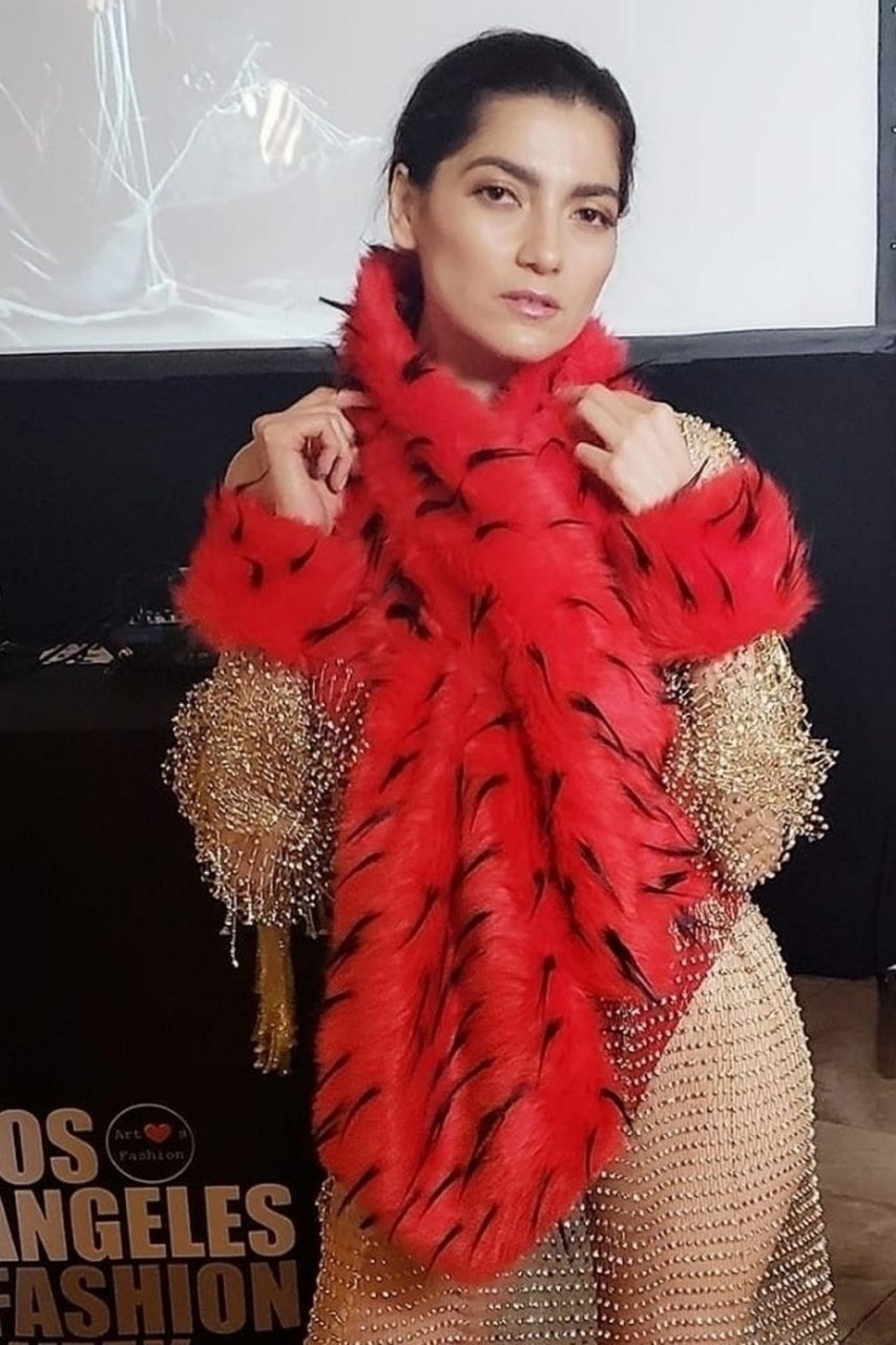 Attrice Blanca Blanco posa in lingerie trasparente alla sfilata di moda di Los Angeles, 24/03/2019.