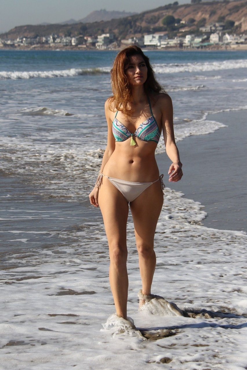 Attrice Blanca Blanco, 36 anni, mostra il suo sexy corpo in bikini sulla spiaggia di Malibu, 29/12/2017.