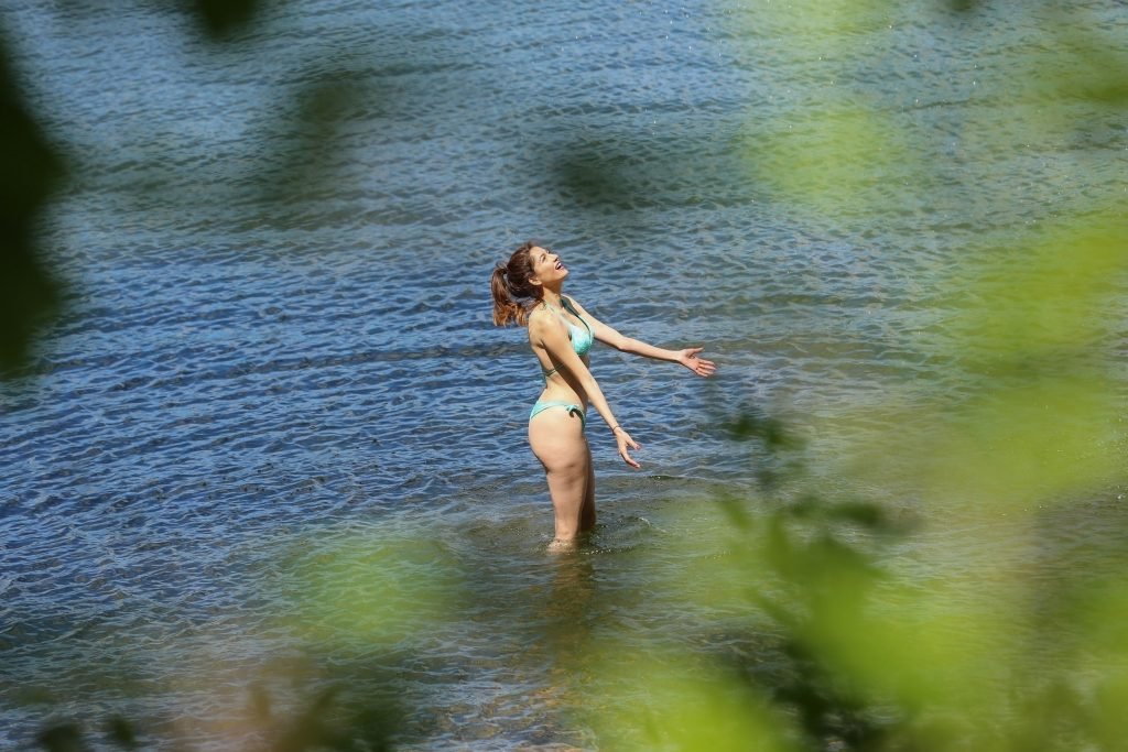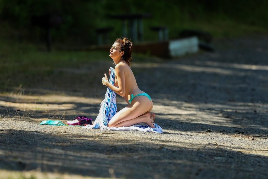 Blanca Blanco mostra un po’ di lato del seno e il capezzolo mentre si gode una giornata al Lago Coeur d’Alene, Idaho, 13/06/2018. La bellissima attrice è stata vista giocare nel lago e godersi un po’ di sole sulla spiaggia del lago con un bikini azzurro.