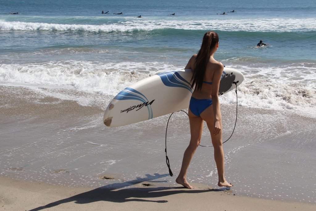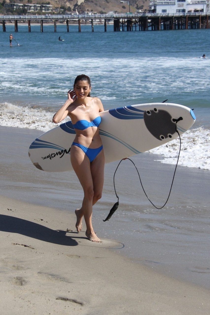 Blanca Blanco (37) cerca di godersi gli ultimi giorni caldi dell’autunno sulla spiaggia di Malibu, 15/10/2018. Blanca è vista uscire con la sua tavola da surf mentre mostra il suo fisico tonico in un carino bikini blu brillante.