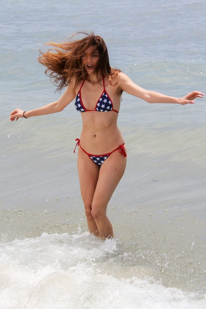 L’attrice Blanca Blanco celebra il Giorno dell’Indipendenza a Malibu, indossando un bikini con stelle e strisce mentre si diverte sulle rive dell’oceano, 07/04/2018.