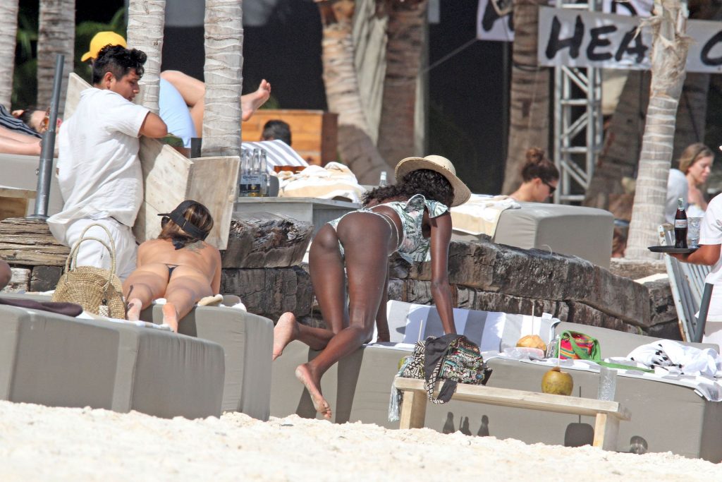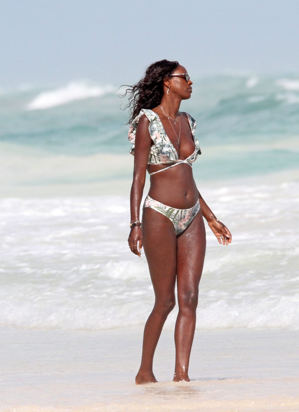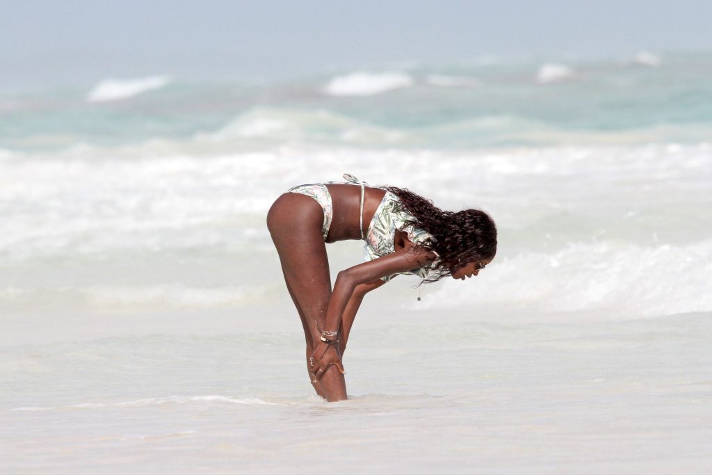 La presunta fidanzata di Boris Becker, Layla Powell, mostra il suo incredibile fisico da modella in un bikini a due pezzi mentre si gode il sole sulla spiaggia di Tulum, Messico, 12/02/2020.