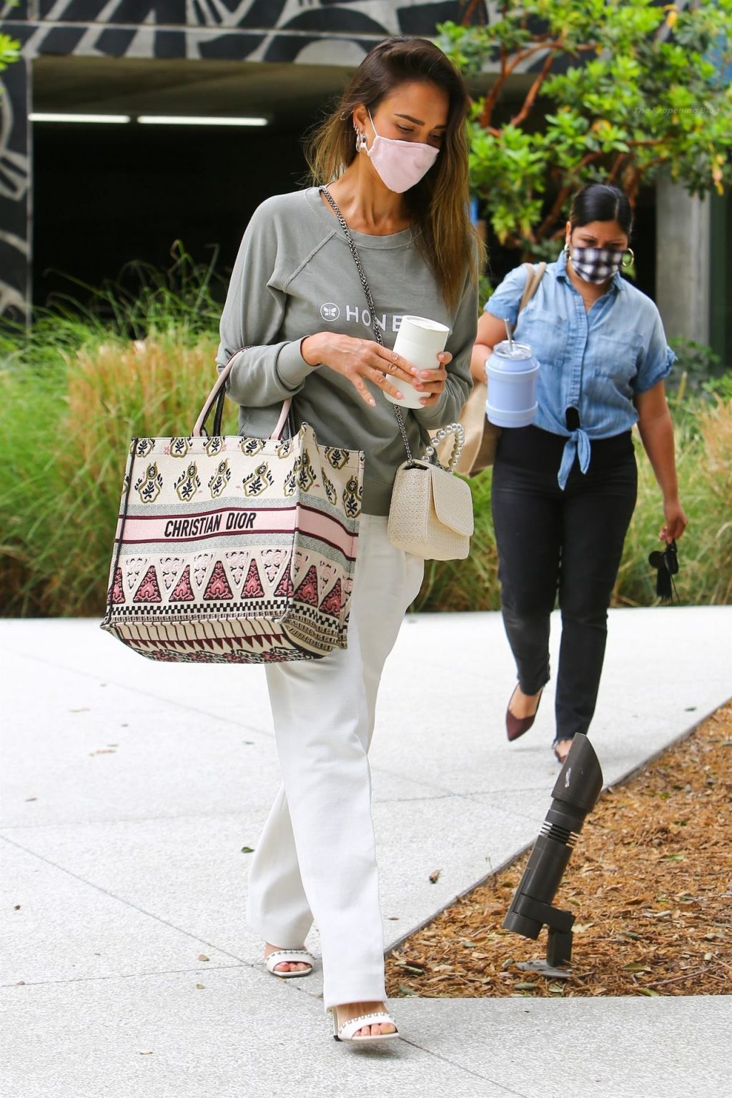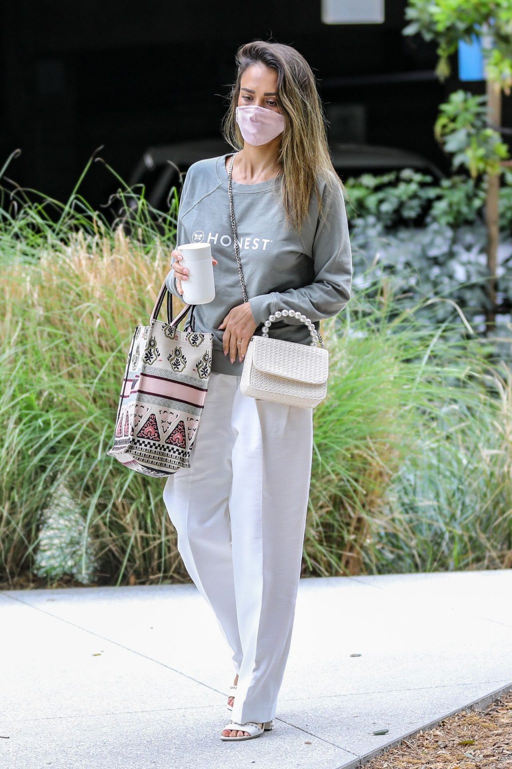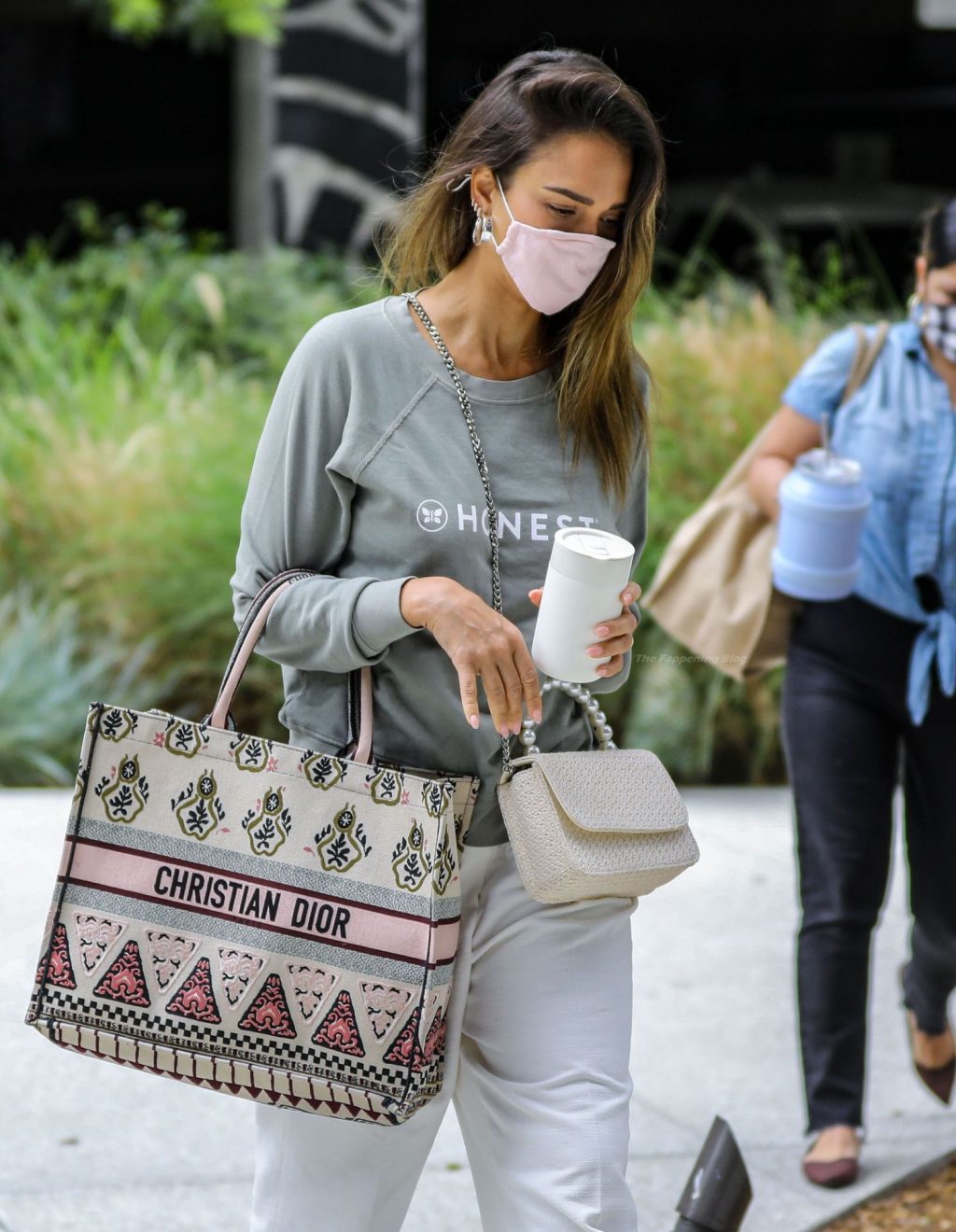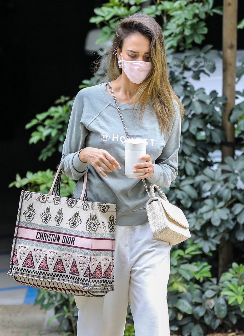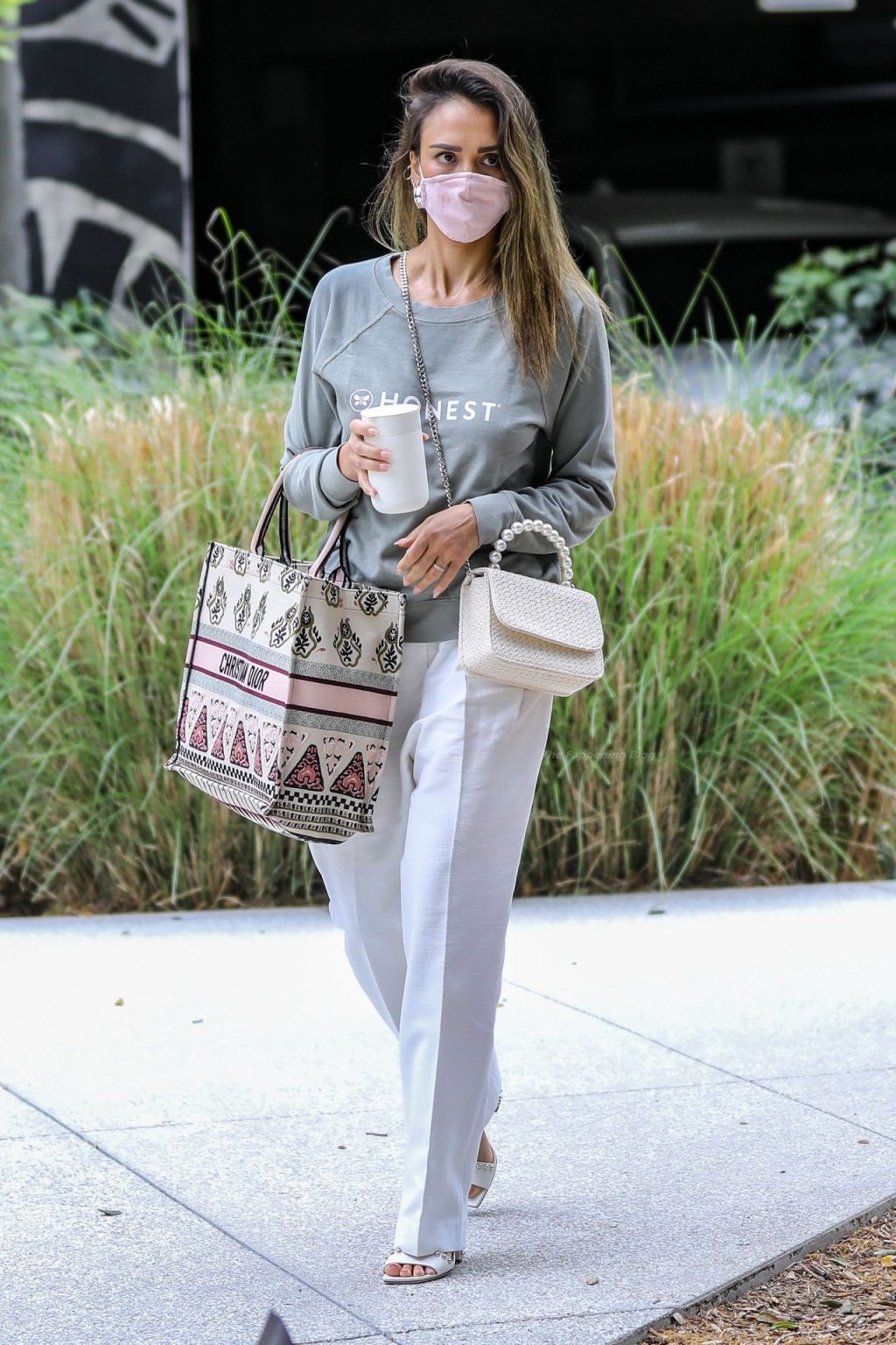 L’attrice Jessica Alba arriva al suo ufficio indossando una felpa Honest un giorno dopo che il titolo della società è sceso sotto il prezzo IPO di 16$ – Playa Vista, 12/05/2021.