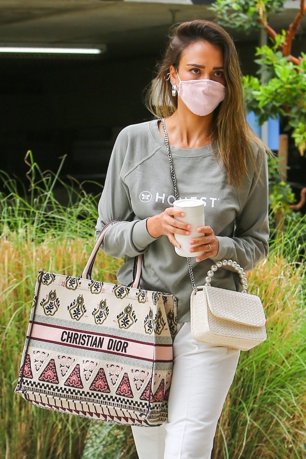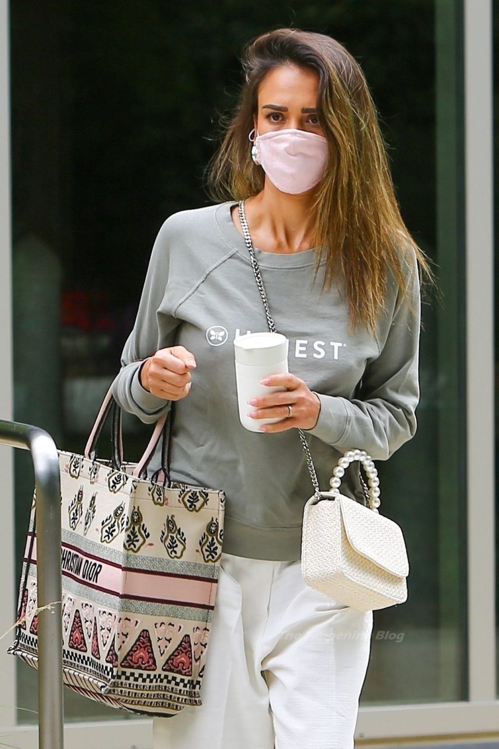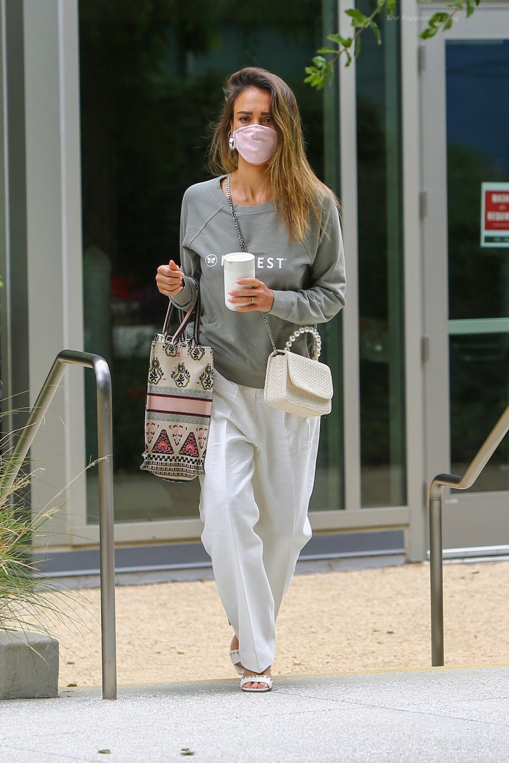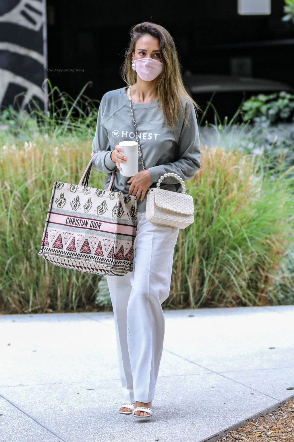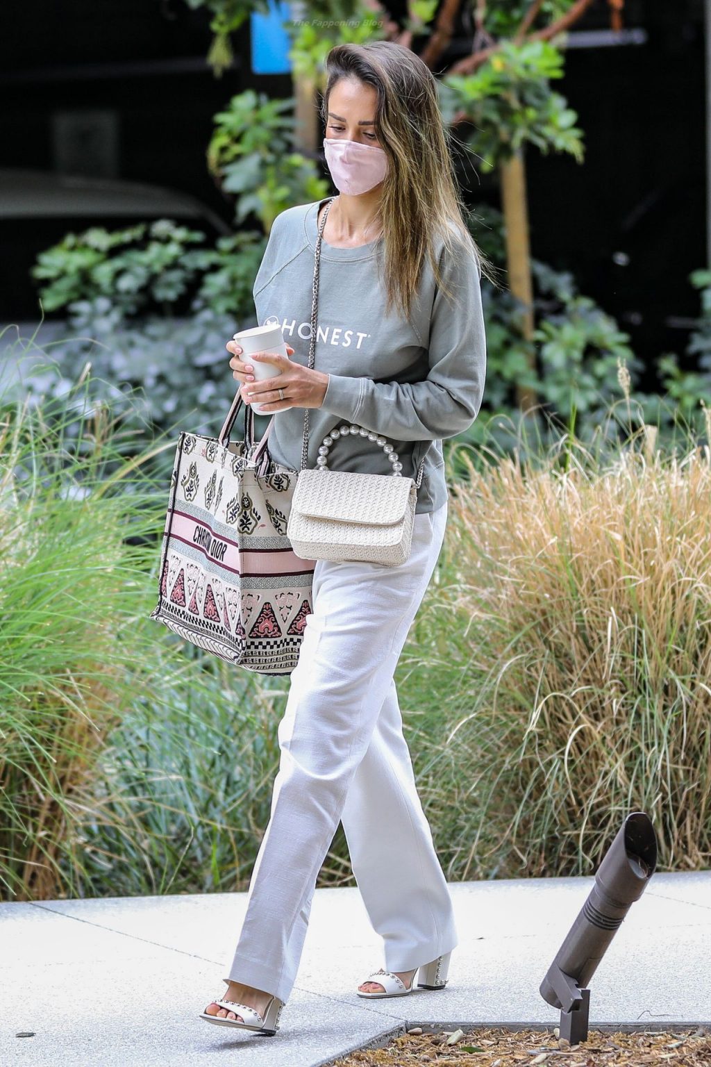 L’attrice Jessica Alba arriva al suo ufficio indossando una felpa Honest un giorno dopo che il titolo della società è sceso sotto il prezzo IPO di 16$ – Playa Vista, 12/05/2021.
