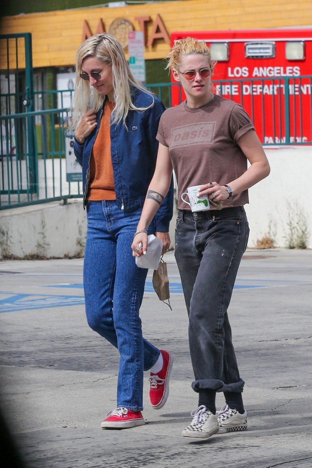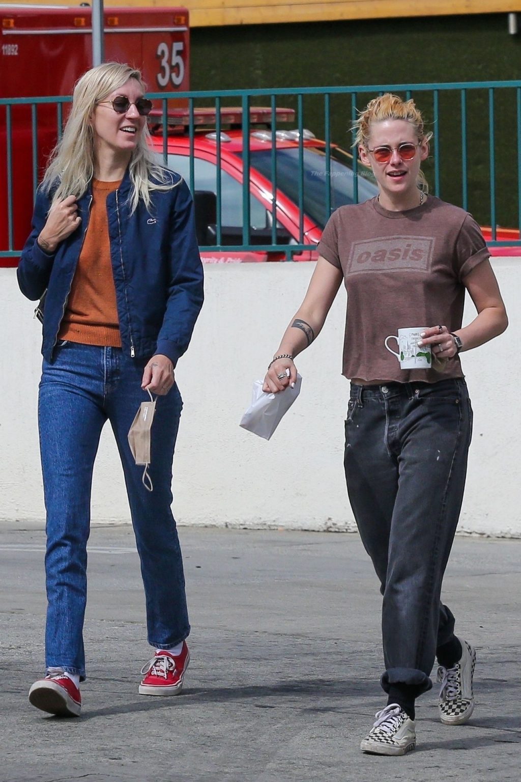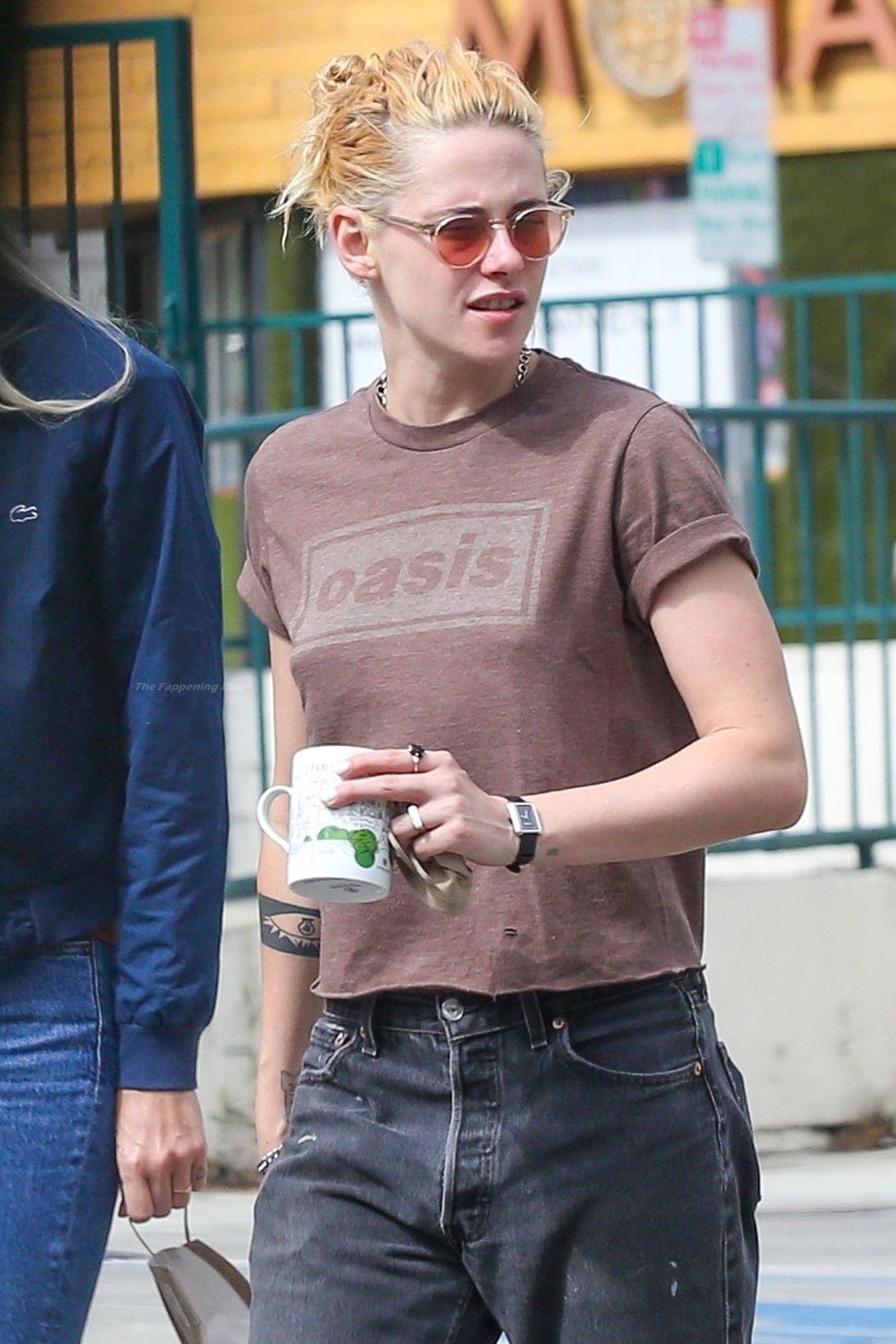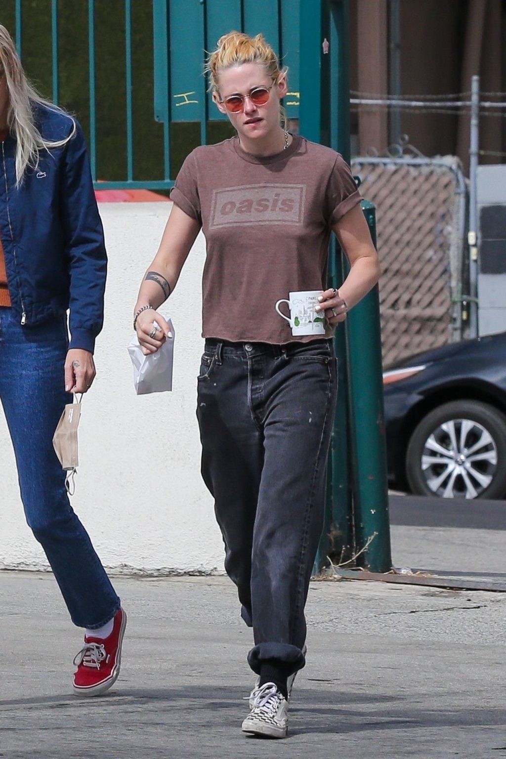 La star di The Fappening Kristen Stewart e Dylan Meyer fanno tappa da MOTA – Medicine Of The Angels, 18/09/2021. K-Stew indossava una maglietta cool della band Oasis con jeans scuri e sneakers bianche.